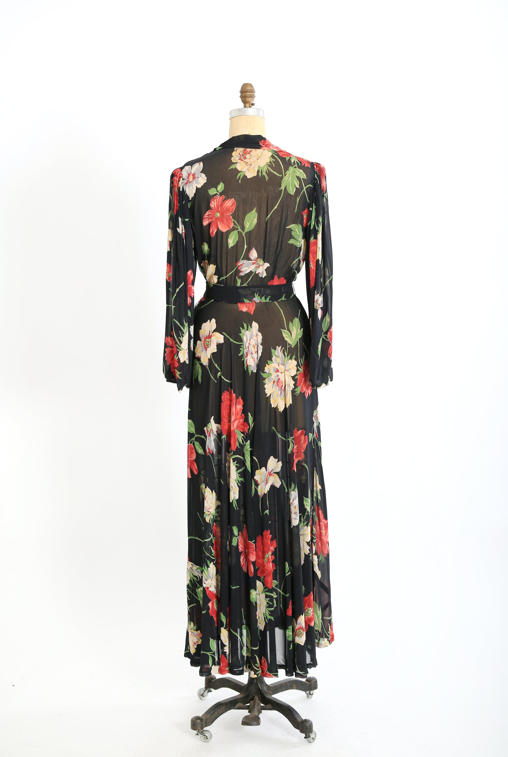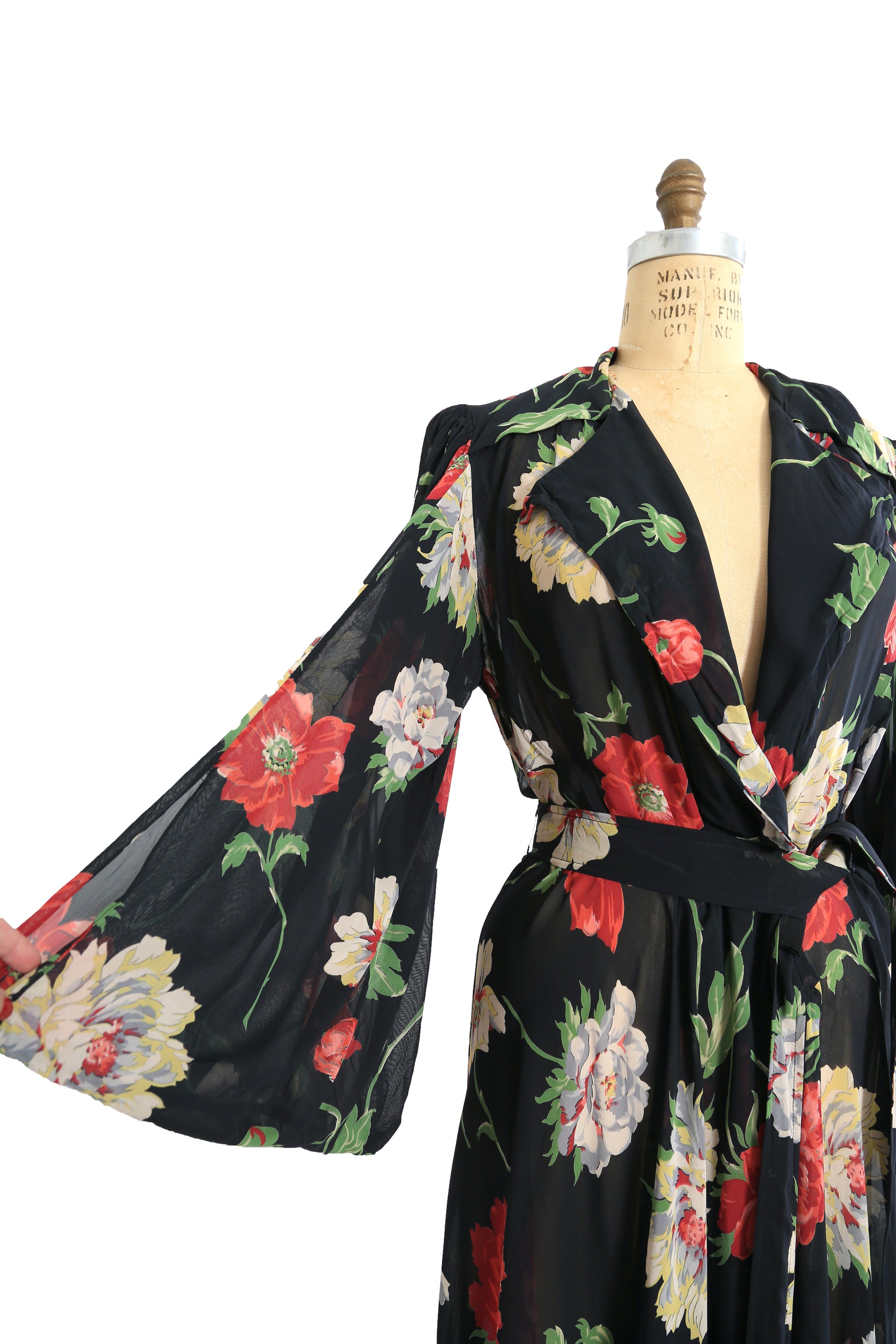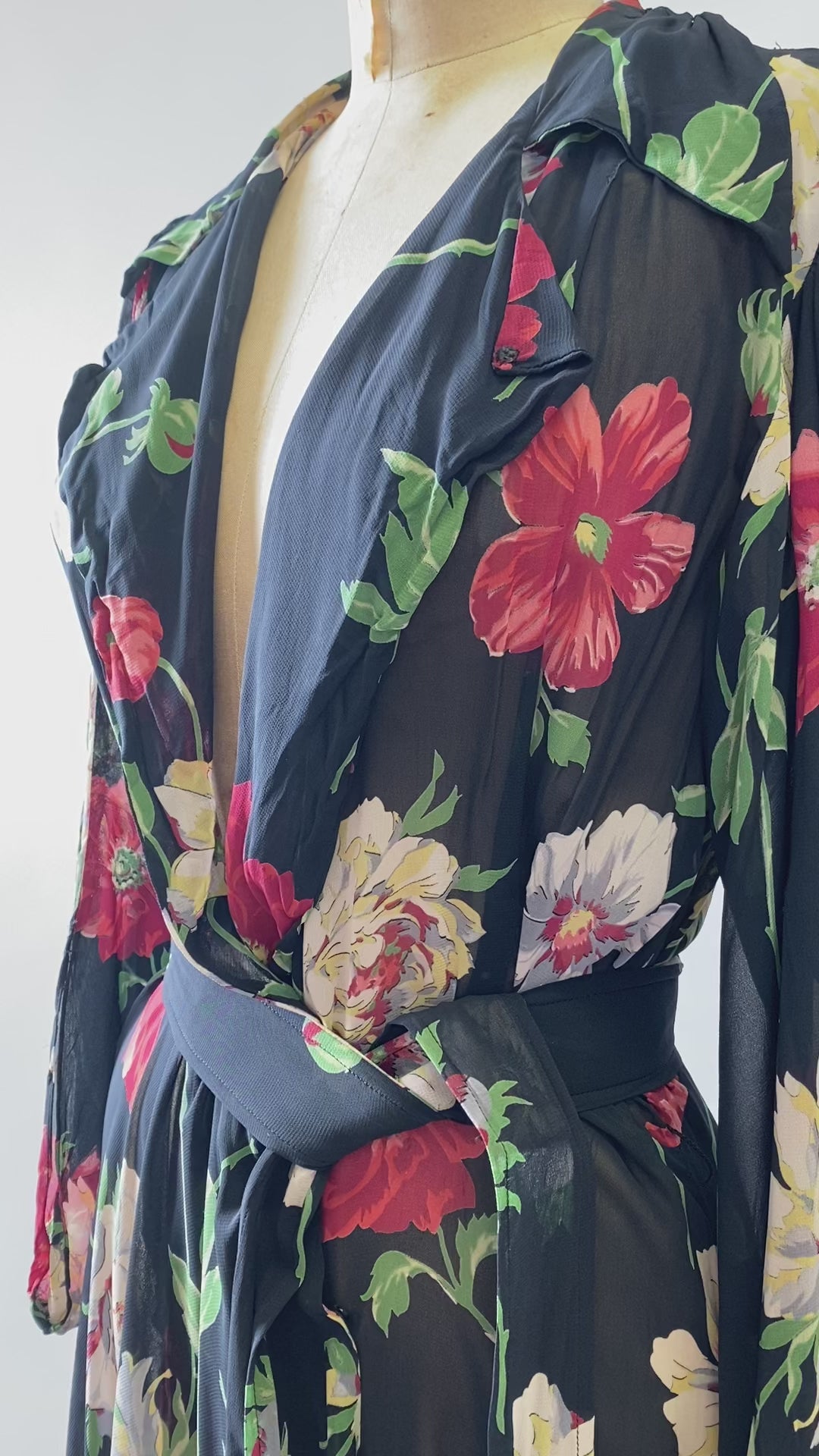 Stunning rare Antique Vintage 1940s black large floral wrap dress