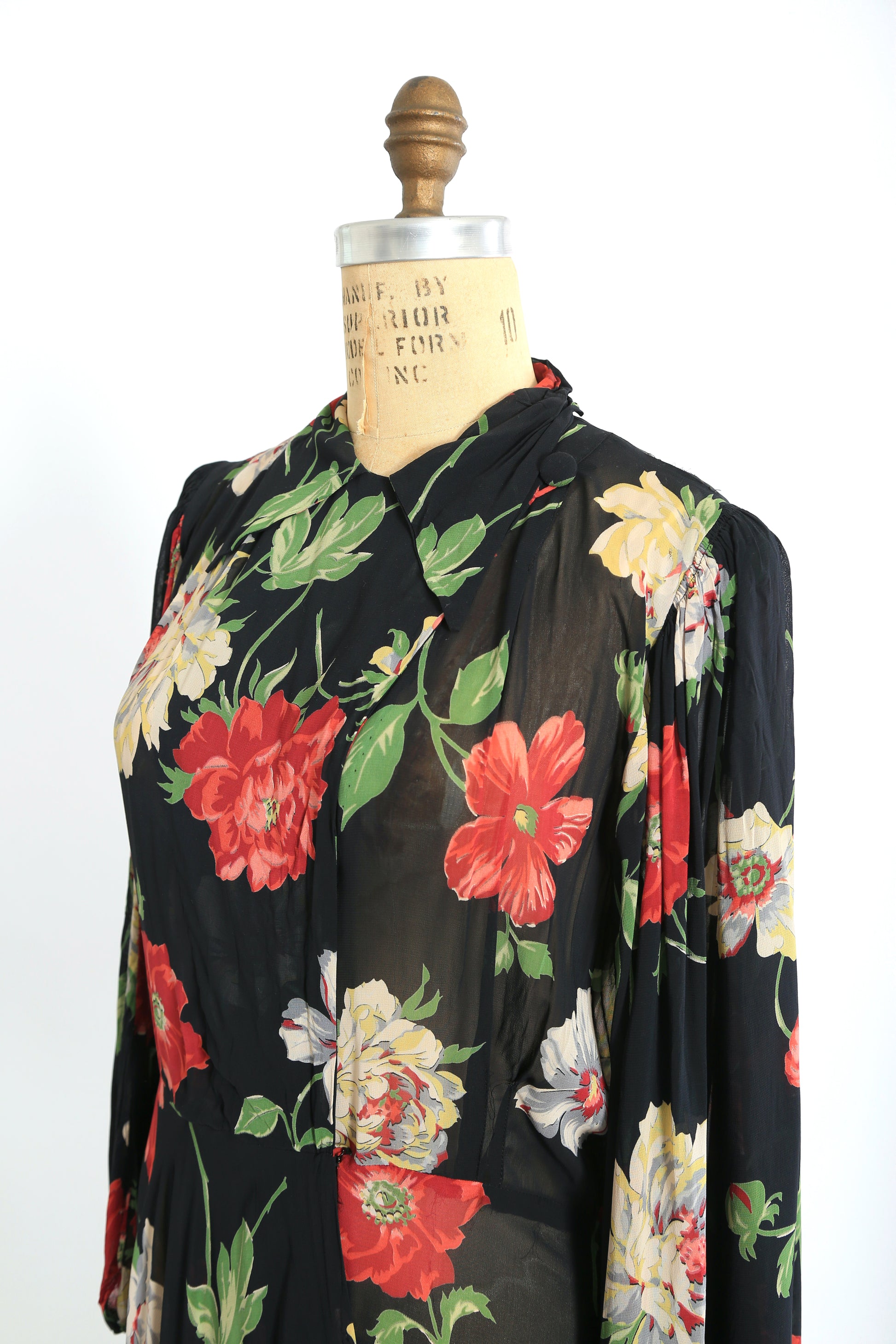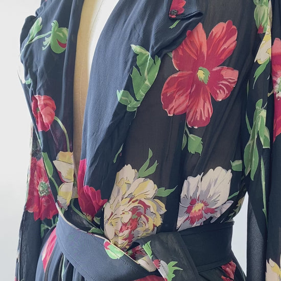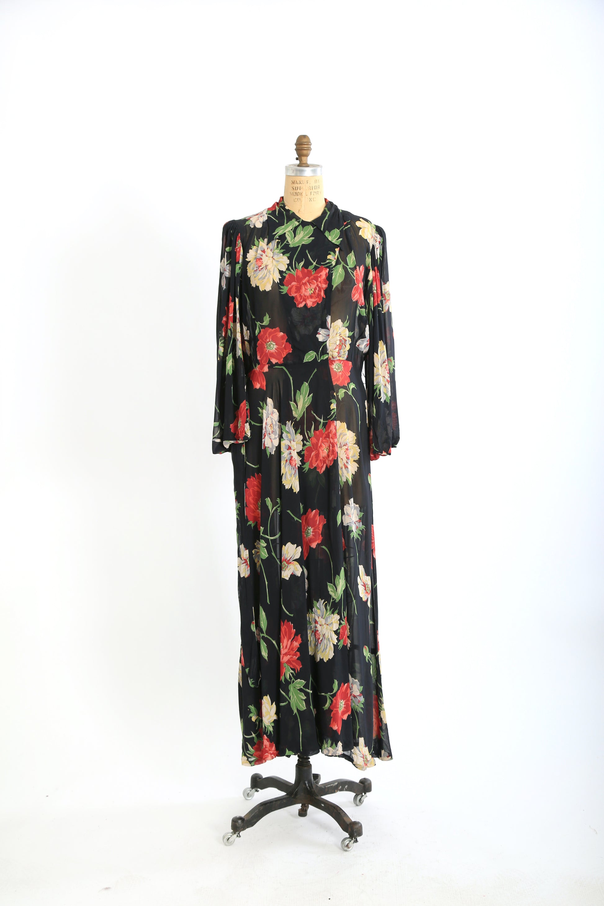 Stunning rare Antique Vintage 1940s black large floral wrap dress