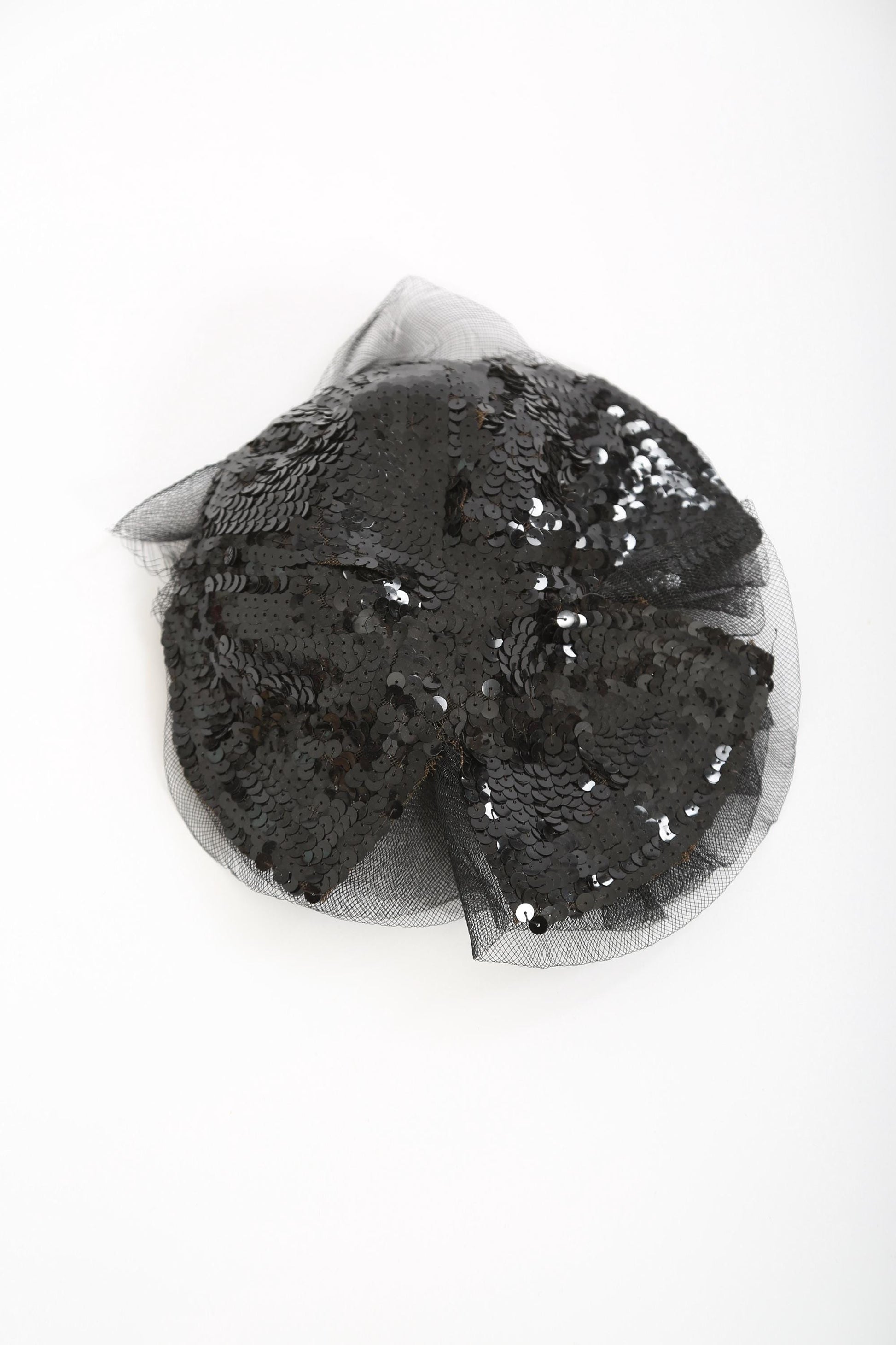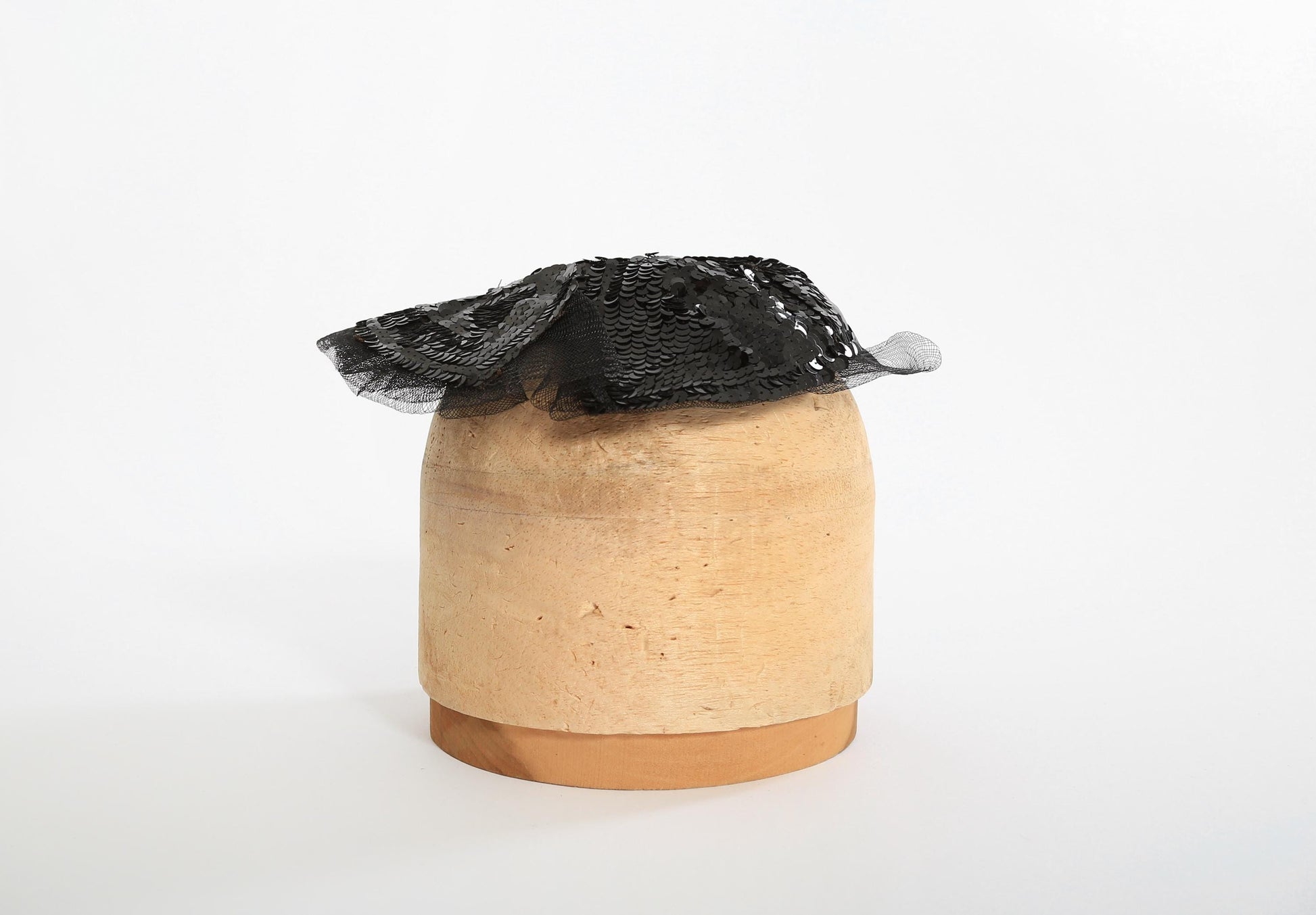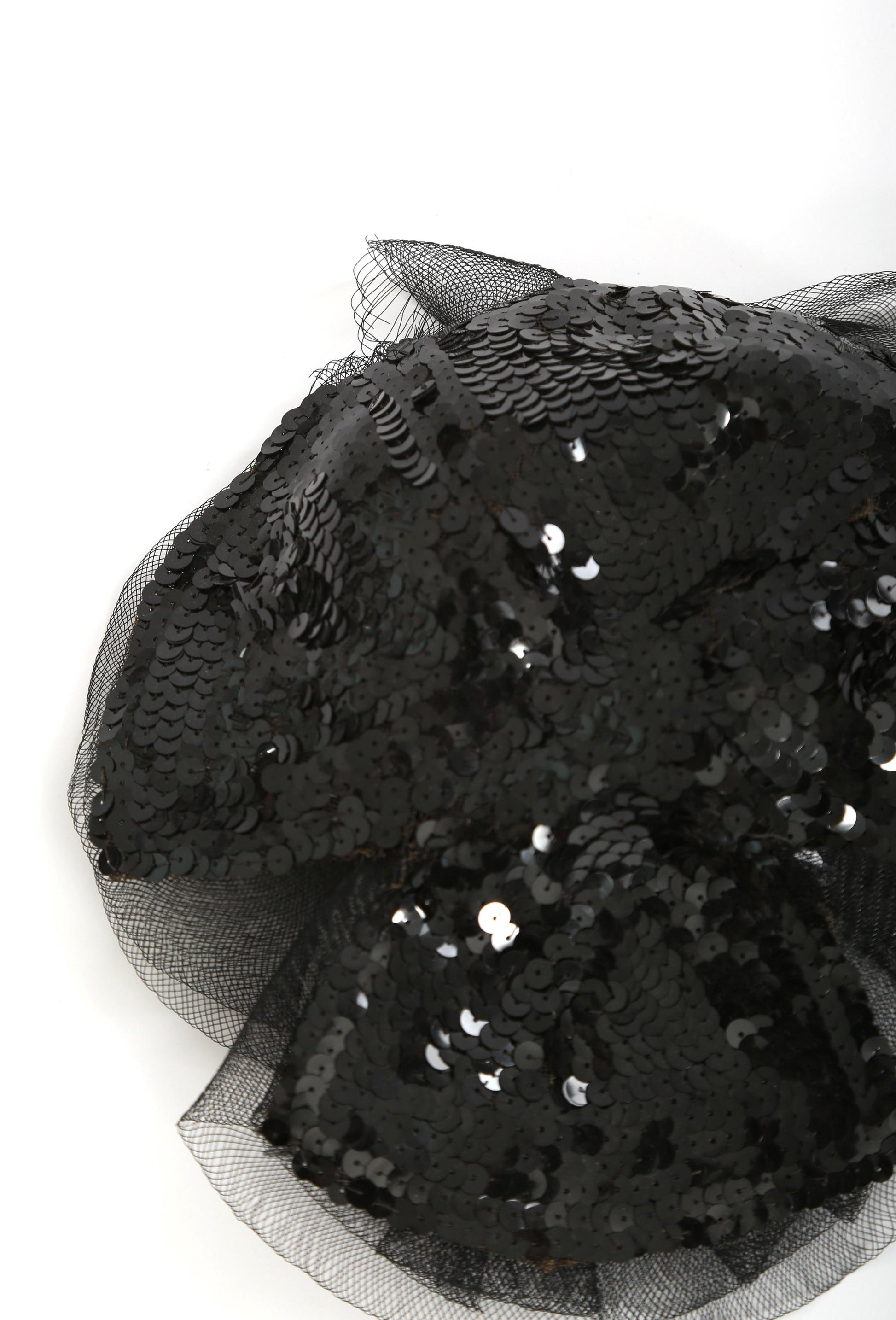 Vintage 1920s Dahlia model San Francisco black tulle sequin hat
