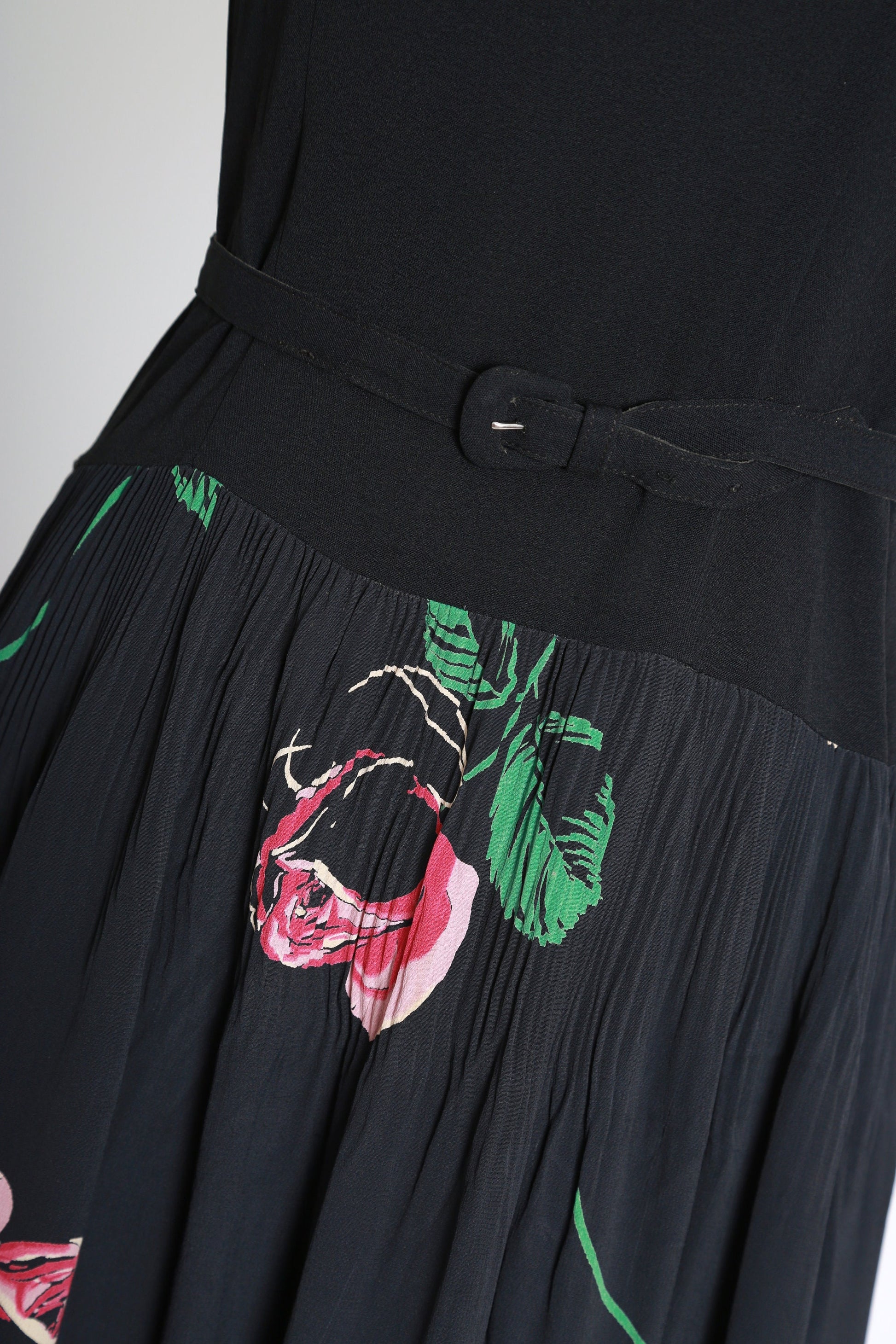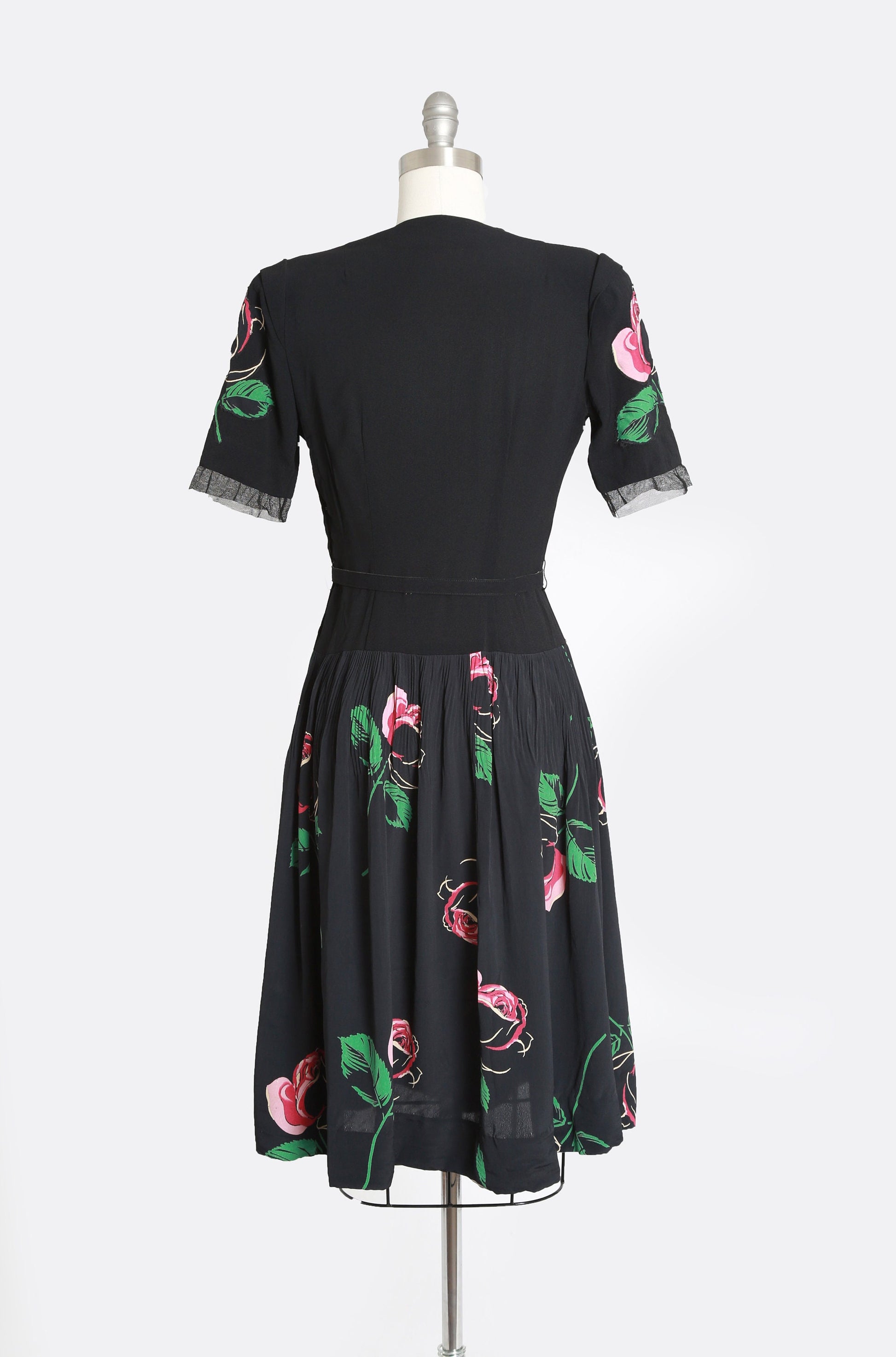 40s rose dress | Vintage 40s black floral Appliqué rose midi dress