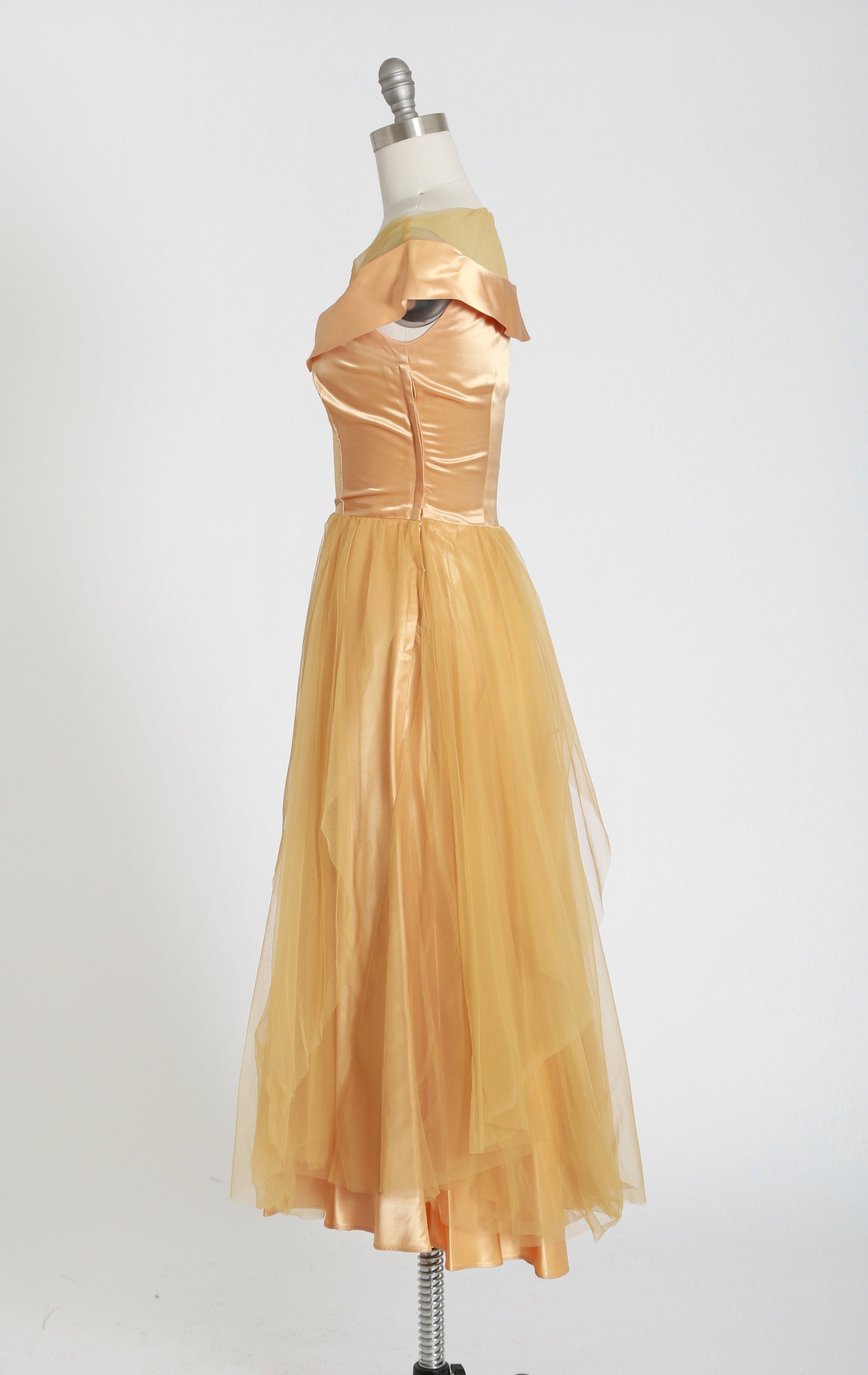 50s gold satin dress | vintage 1950s satin chiffon dress