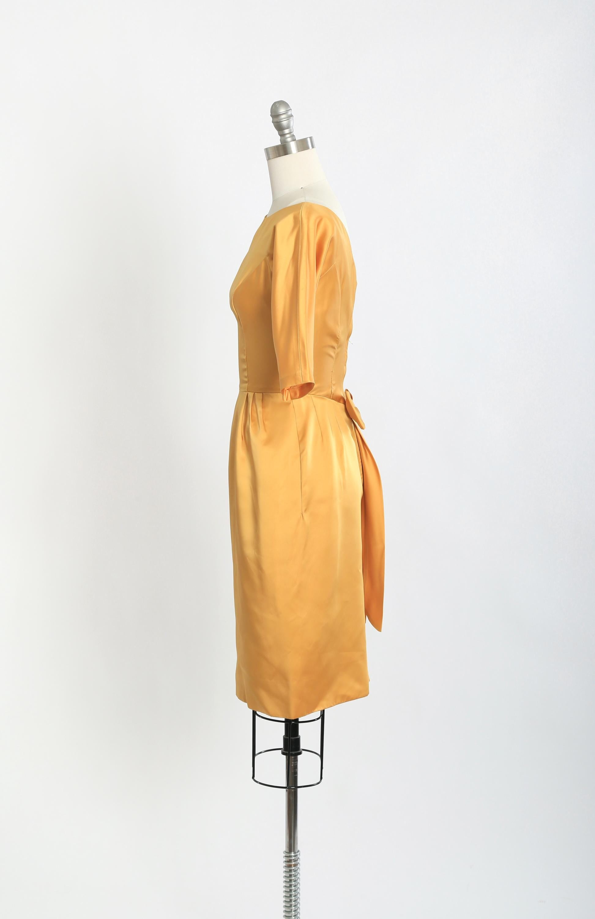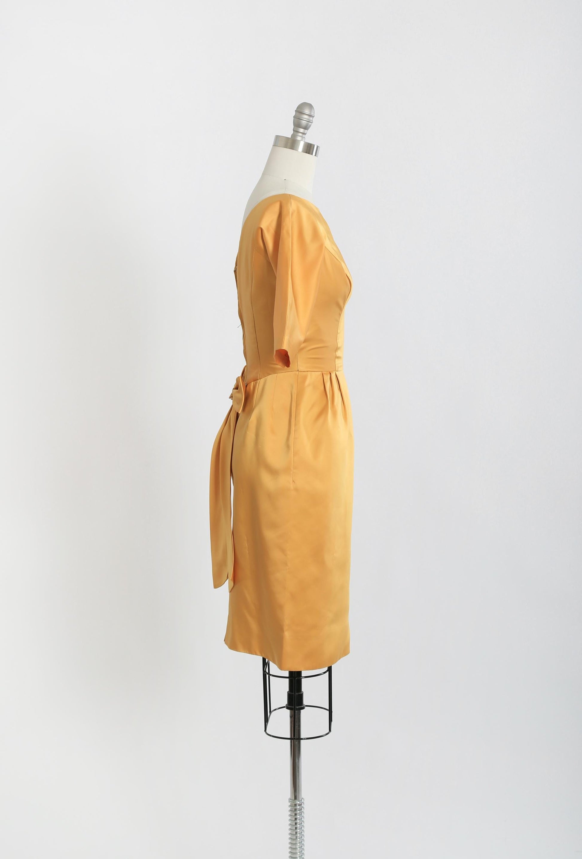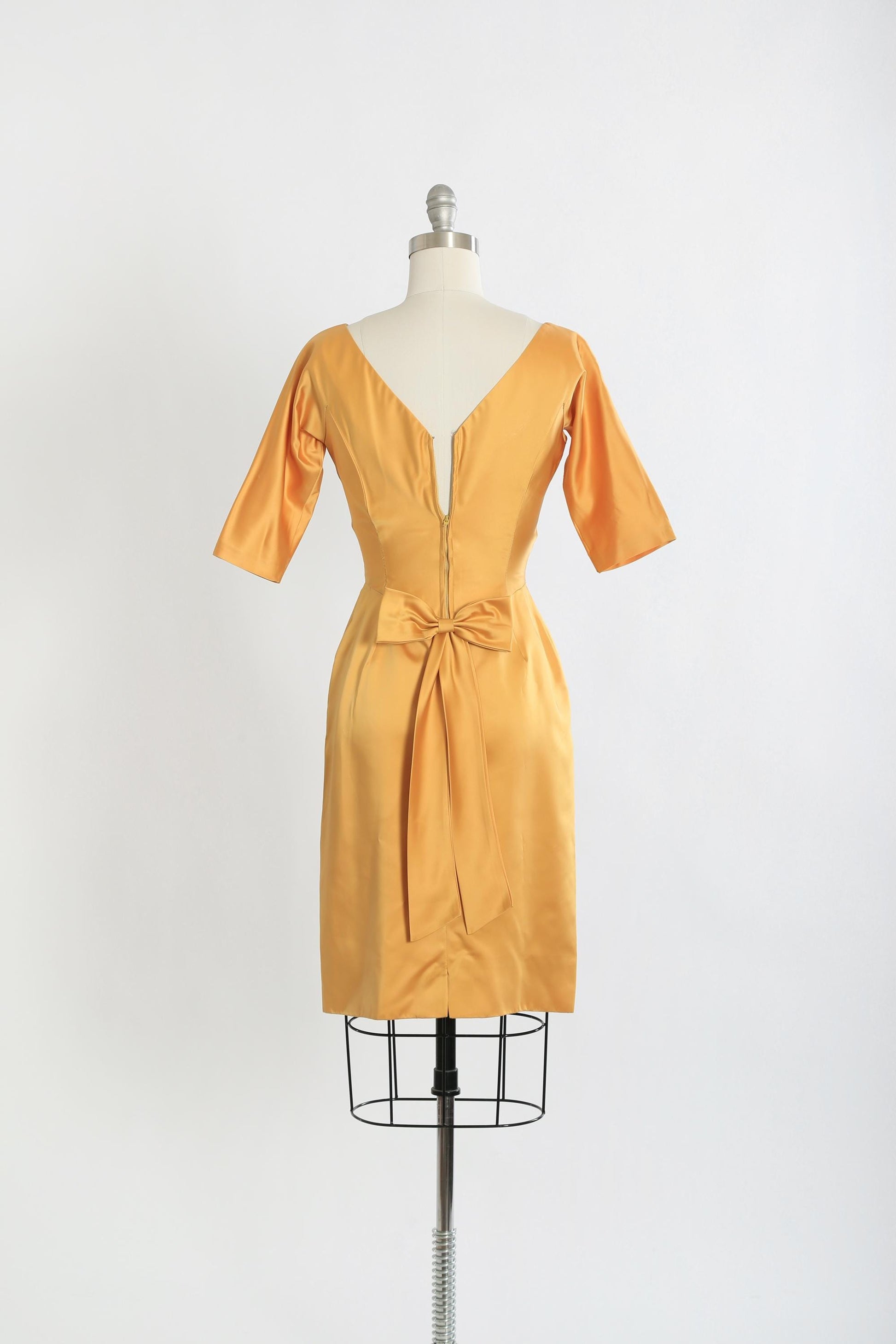 Stunning 1950s early 1960s Smith & Lang gold satin evening dress