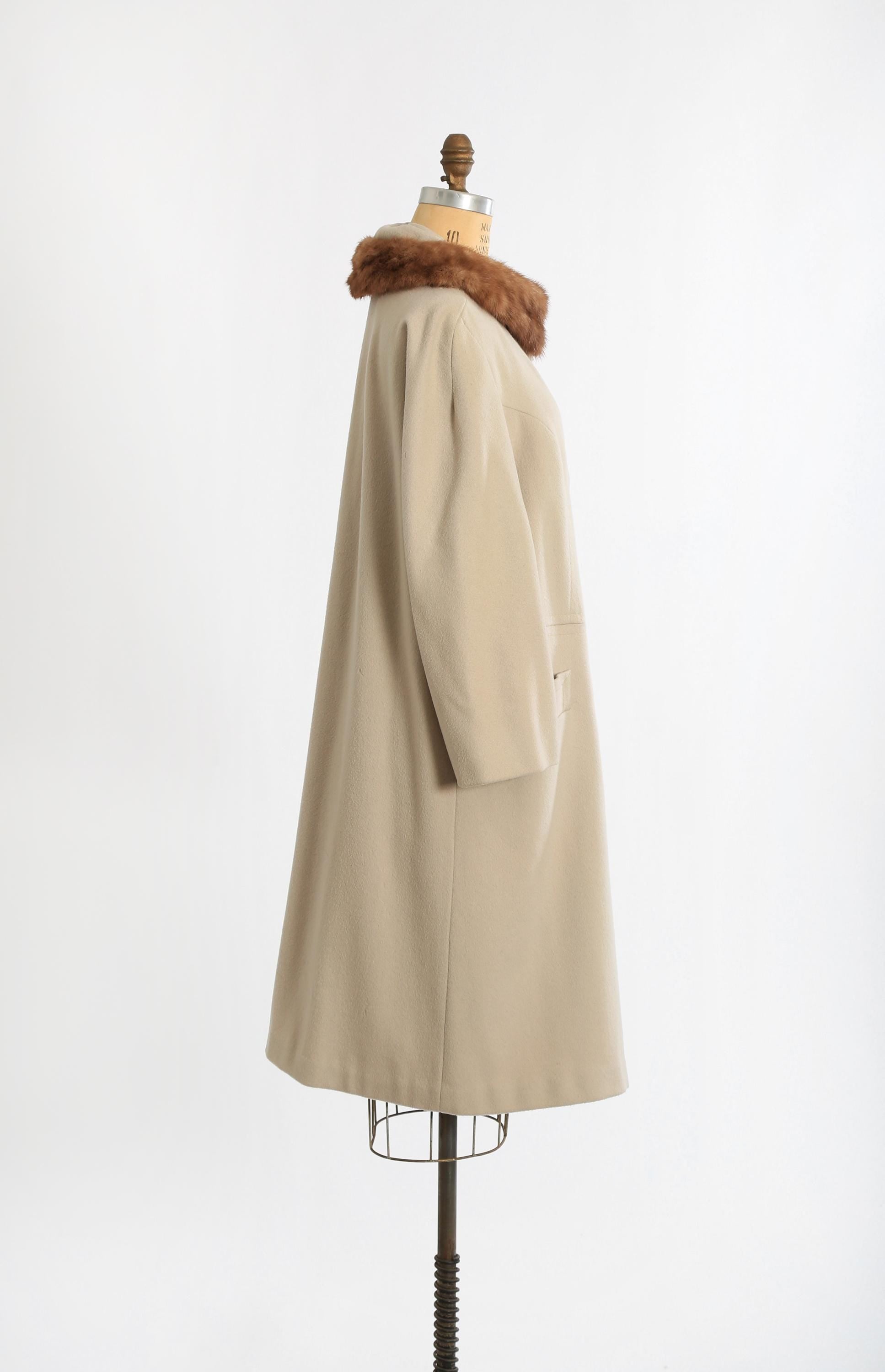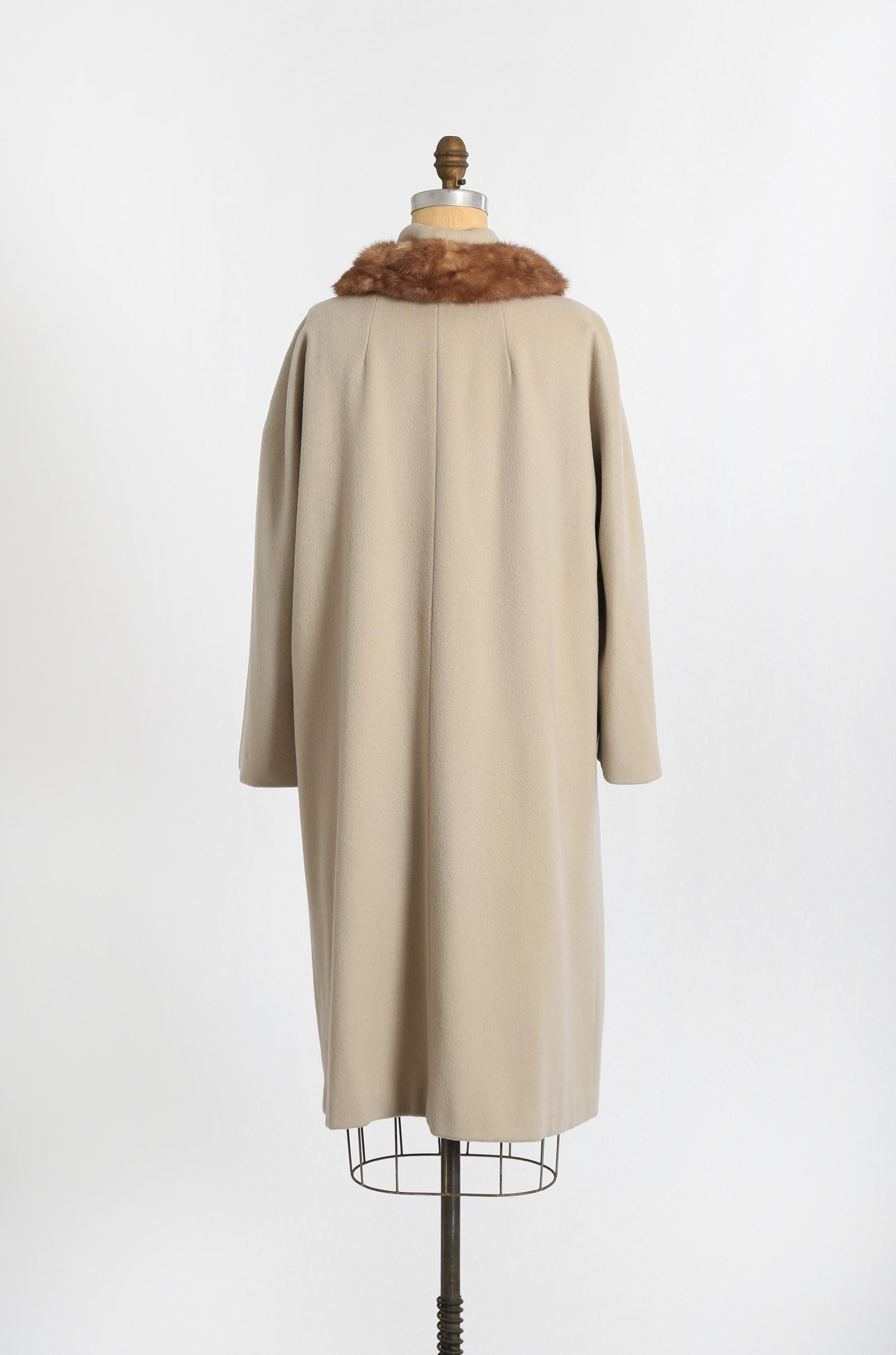 50s grey beige wool mink collar fur coat | Vintage 1950s BOND'S Fifth Avenue coat