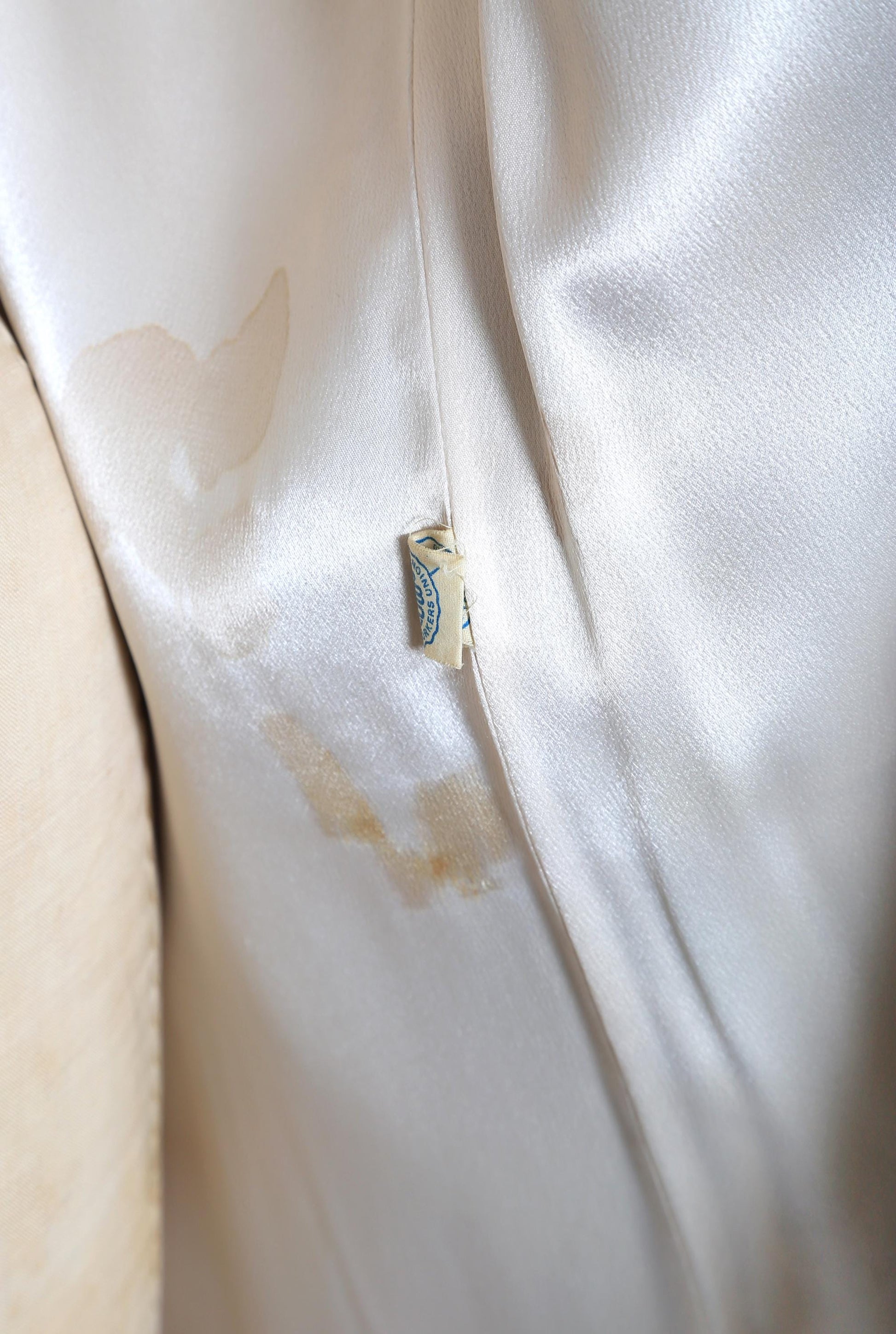 Lined in a ivory champagne silky satin (discoloration spots on lining, see photos)