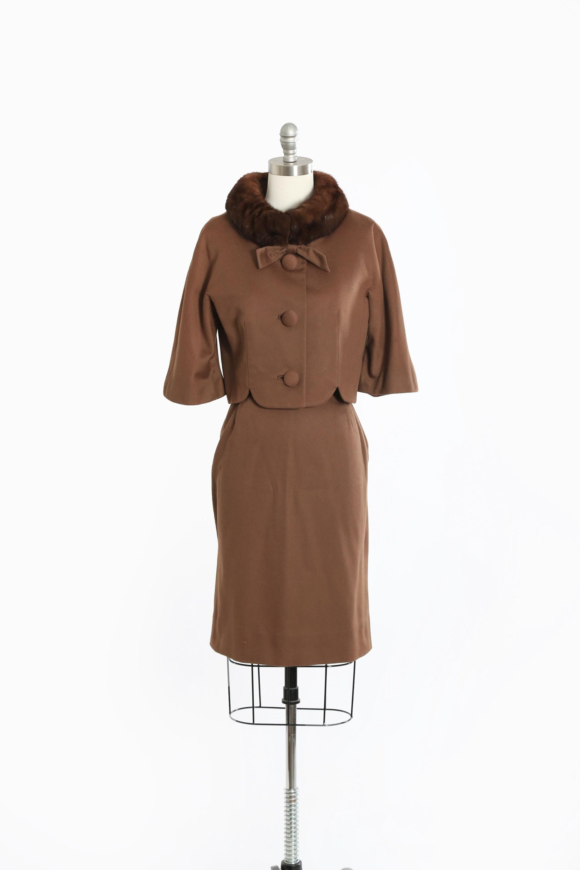 50s Lilli Ann suit | Vintage 1950s Lilli Ann brown wool Mink fur 2pc set