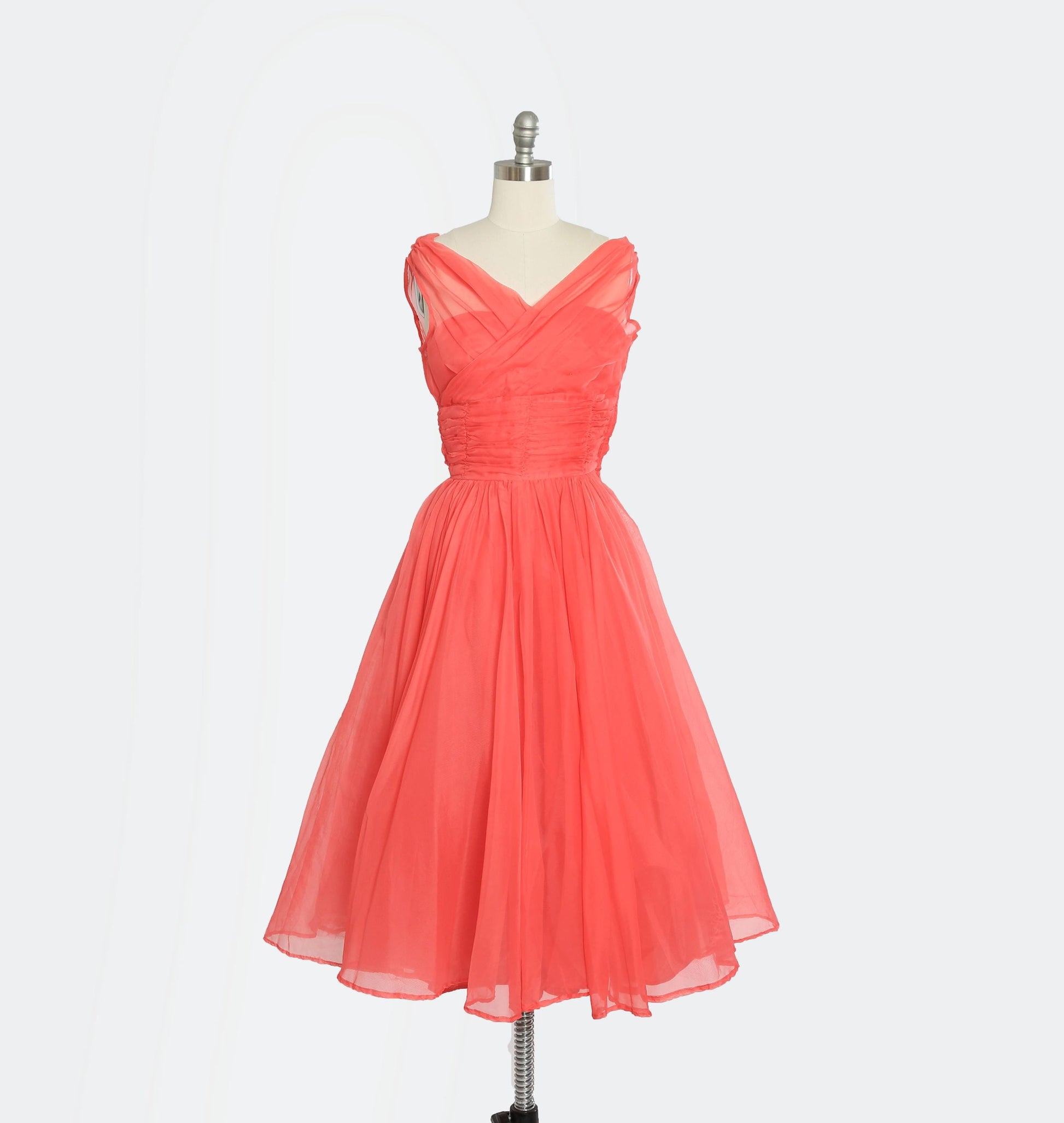 Beautiful vintage 1950s pink chiffon prom / party dress