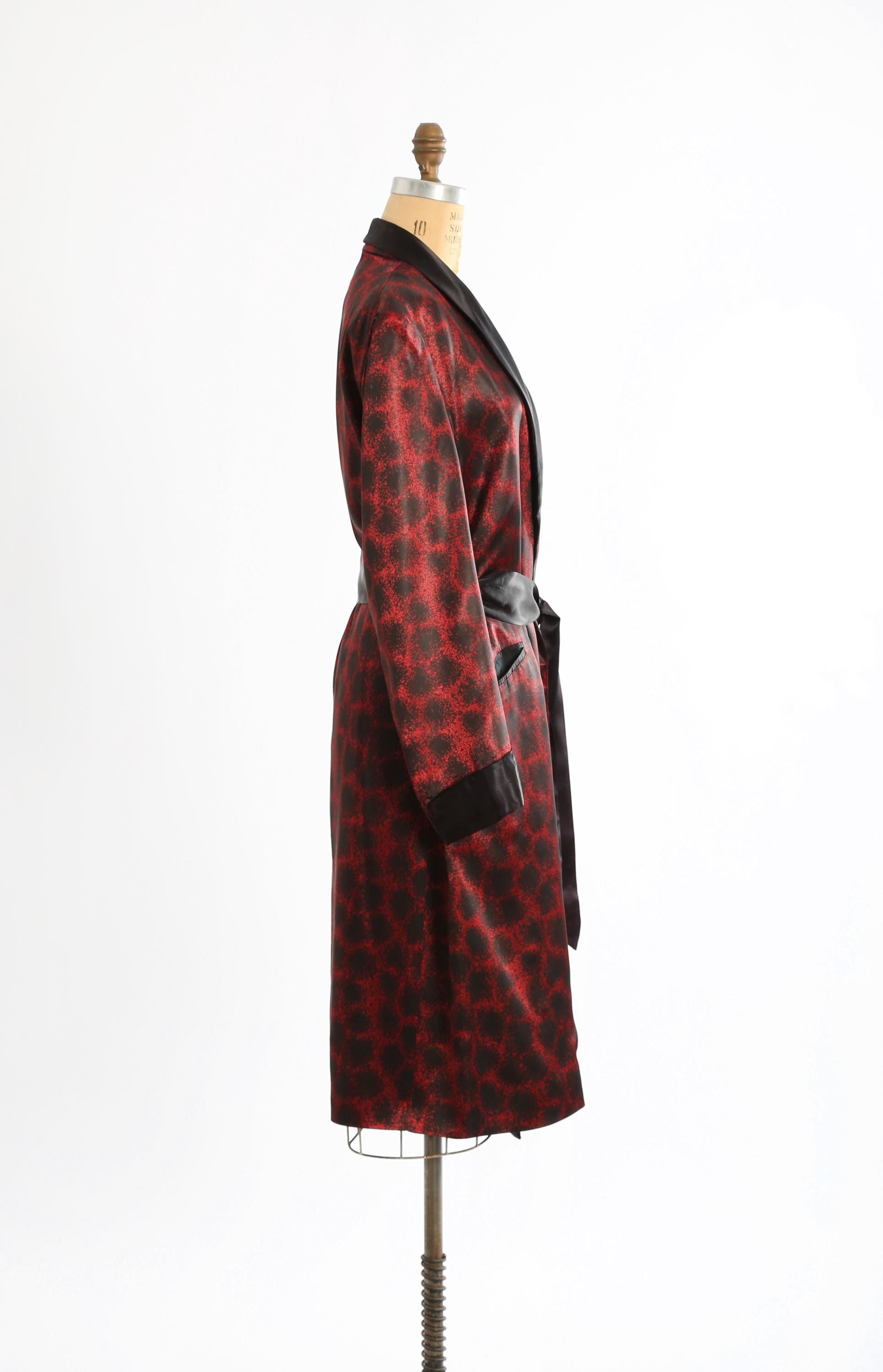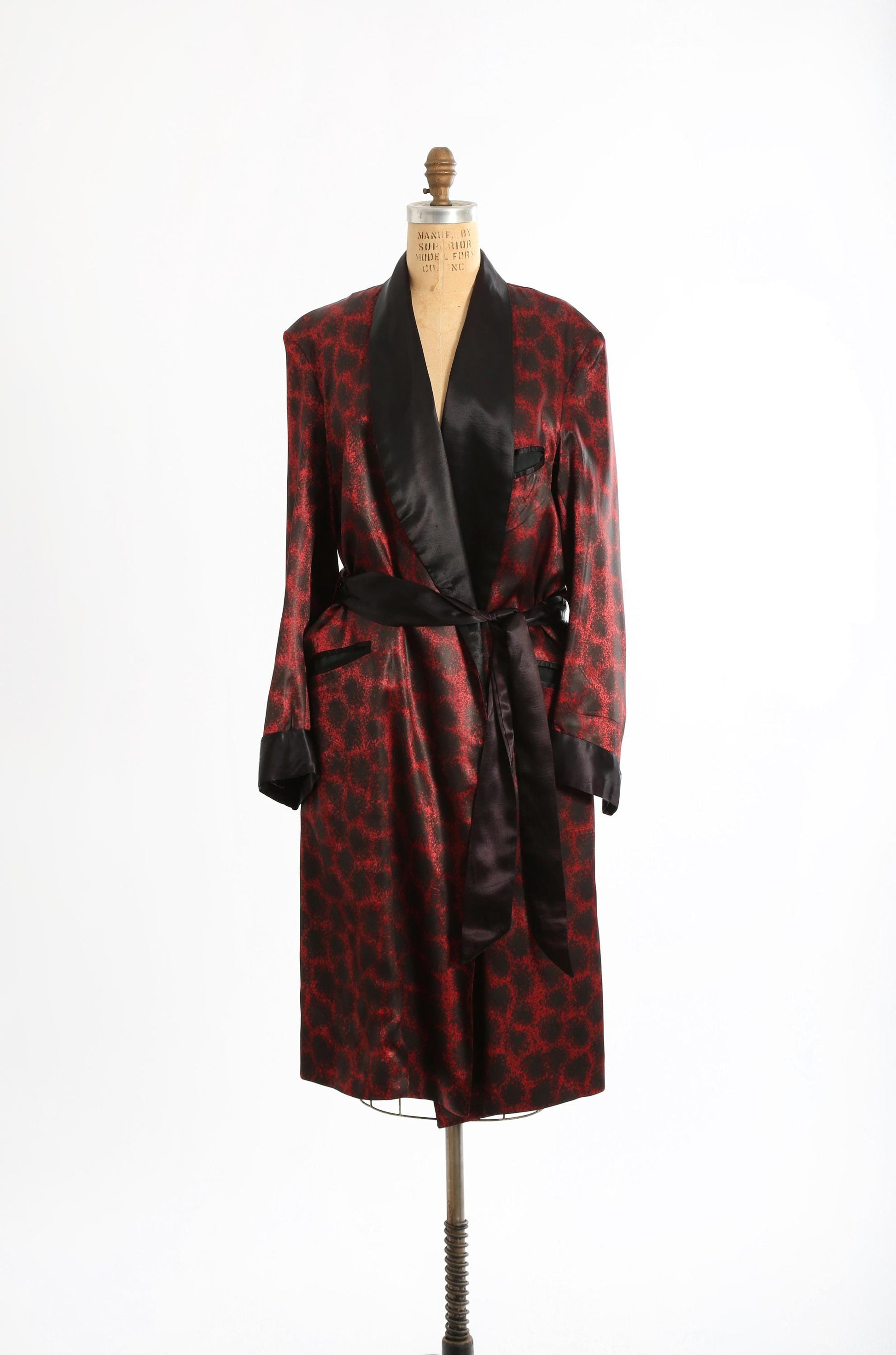 50s satin smoking robe | Vintage 1950s red satin Smoking Jacket robe