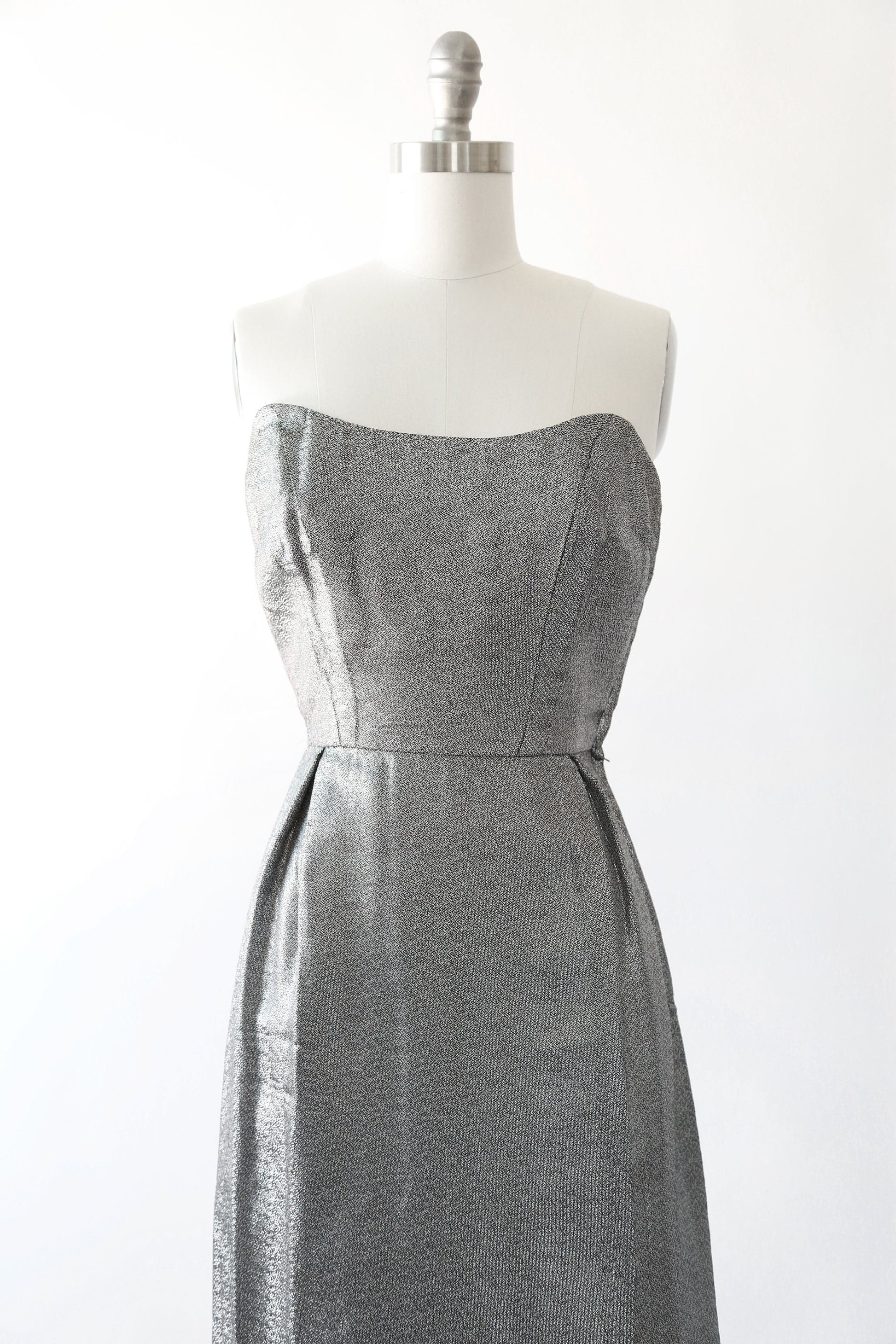 50s silver Lame bombshell dress | Vintage 1950s metal lame wiggle dress