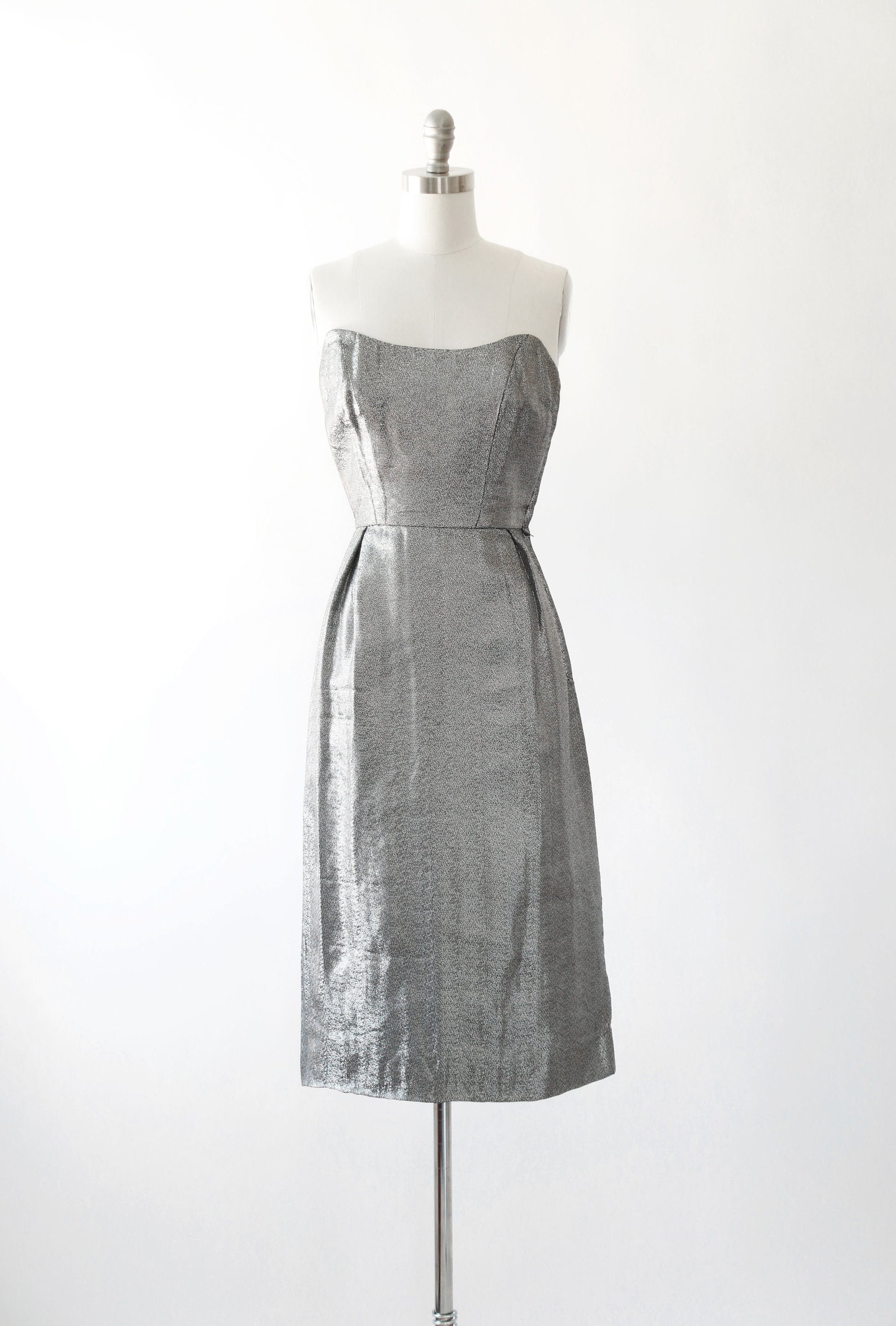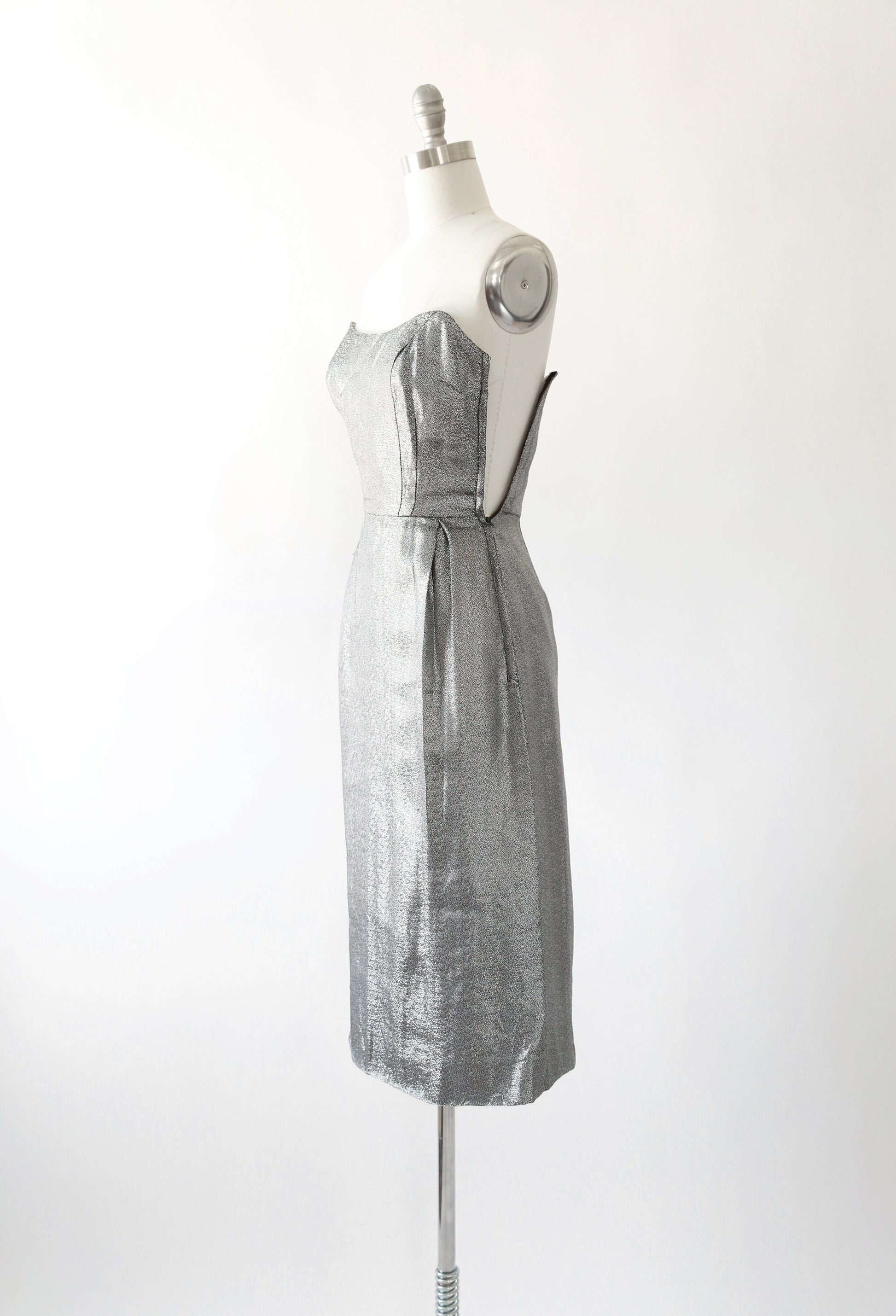 Stunning rare vintage 1950s silver metal lame bombshell dress