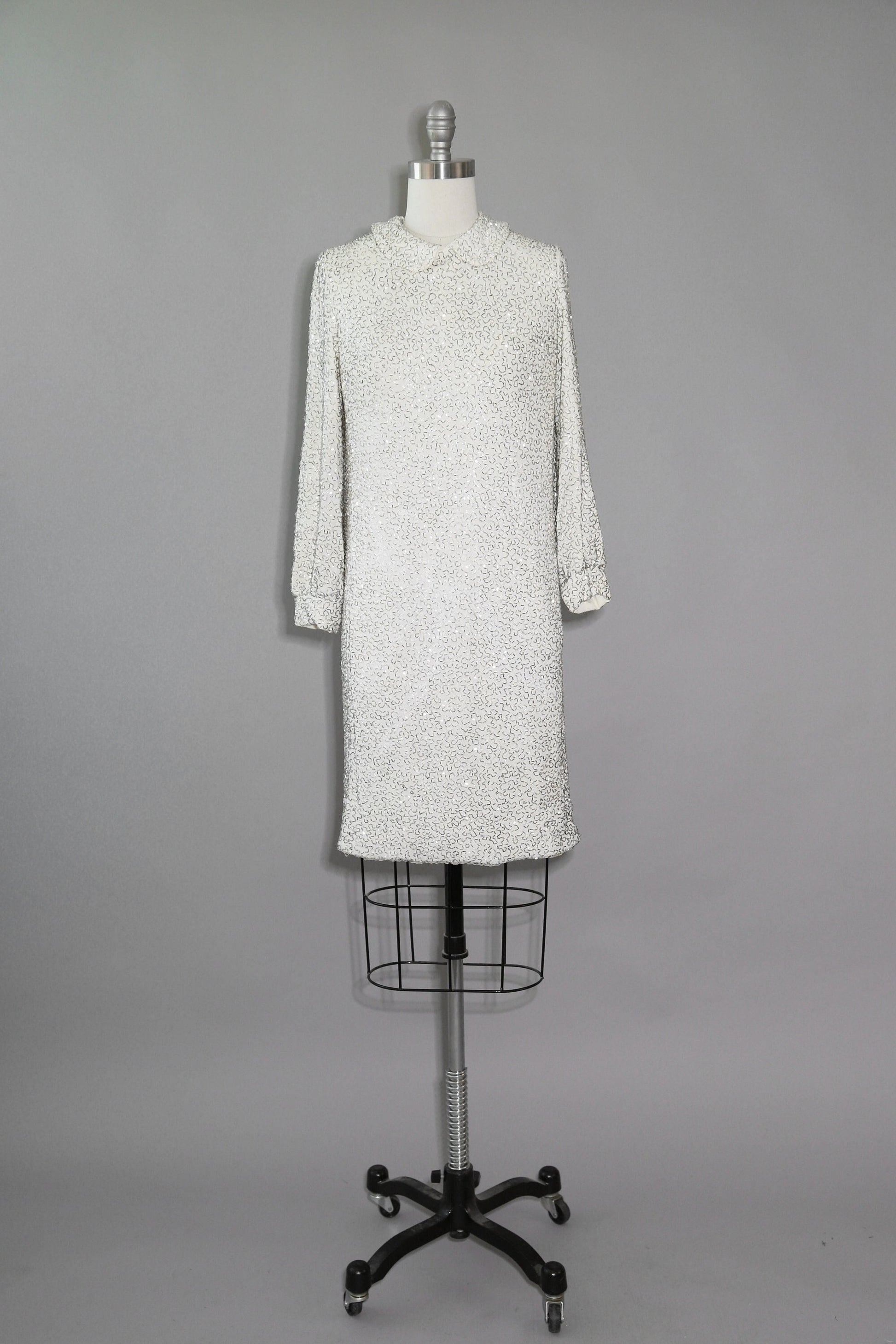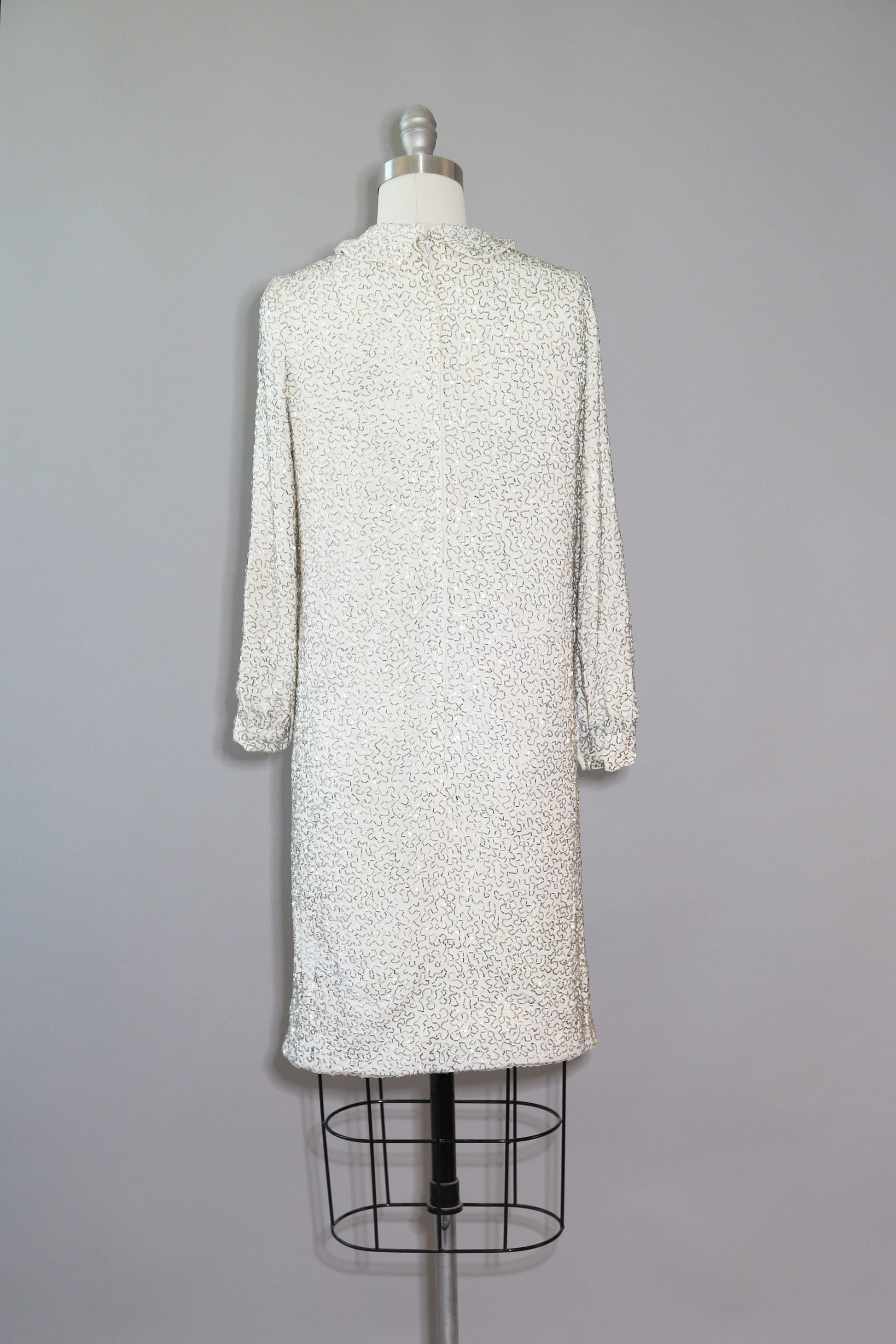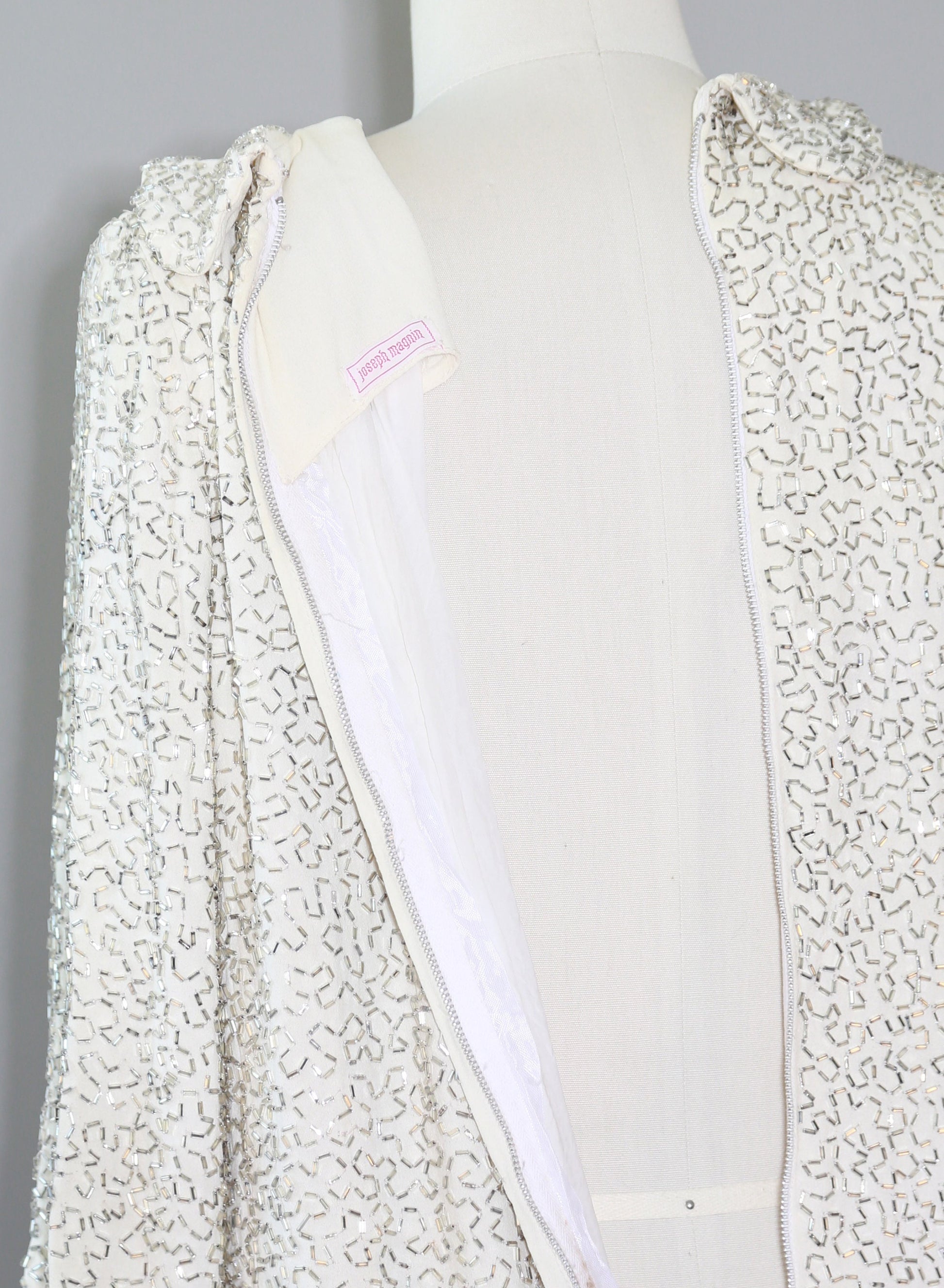 60s Couture beaded dress | Vintage 1960s Glam Heavily silver Beaded white Mod Couture Dress