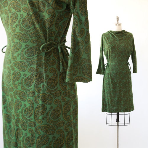 60s Green paisley dress | Vintage 1960s McKettrick green paisley wiggle dress
