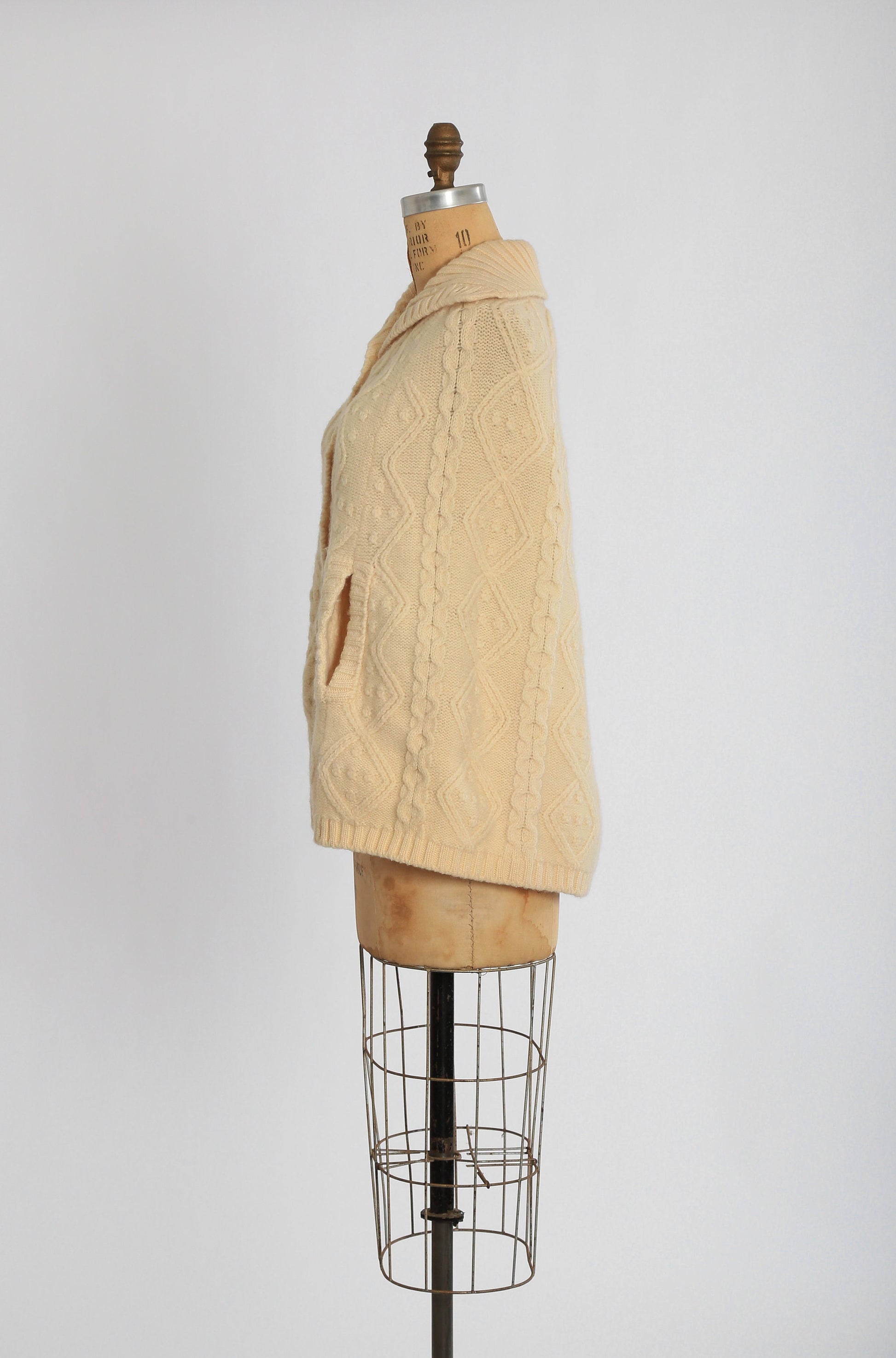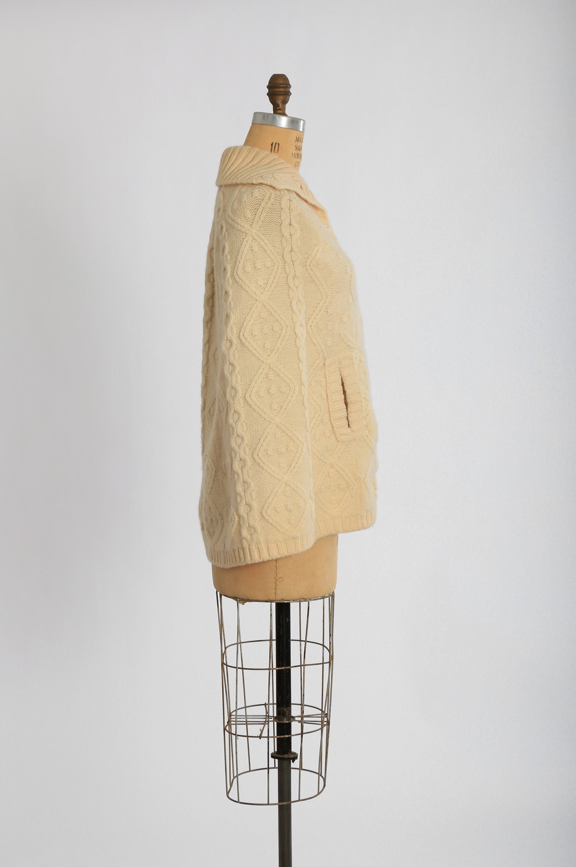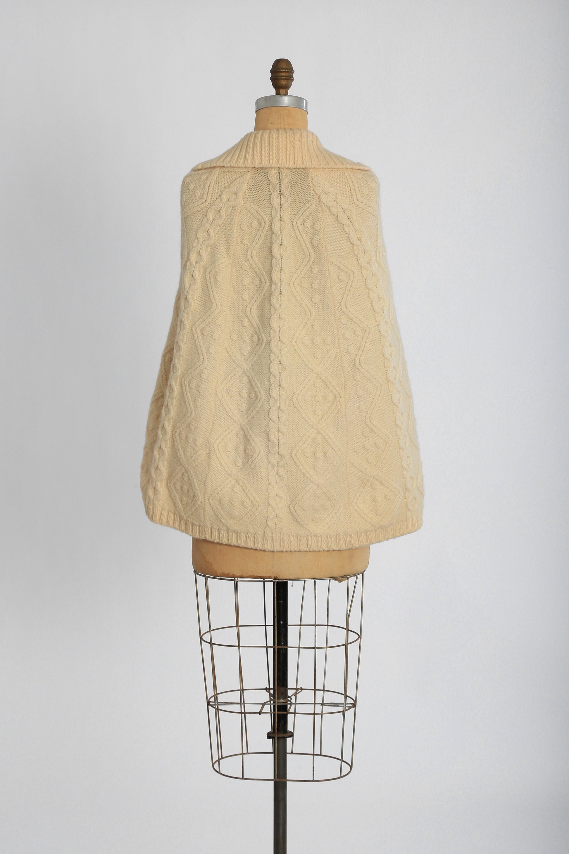 60s knit wool cape sweater | Vintage 60s hand loomed cable knit wool cape