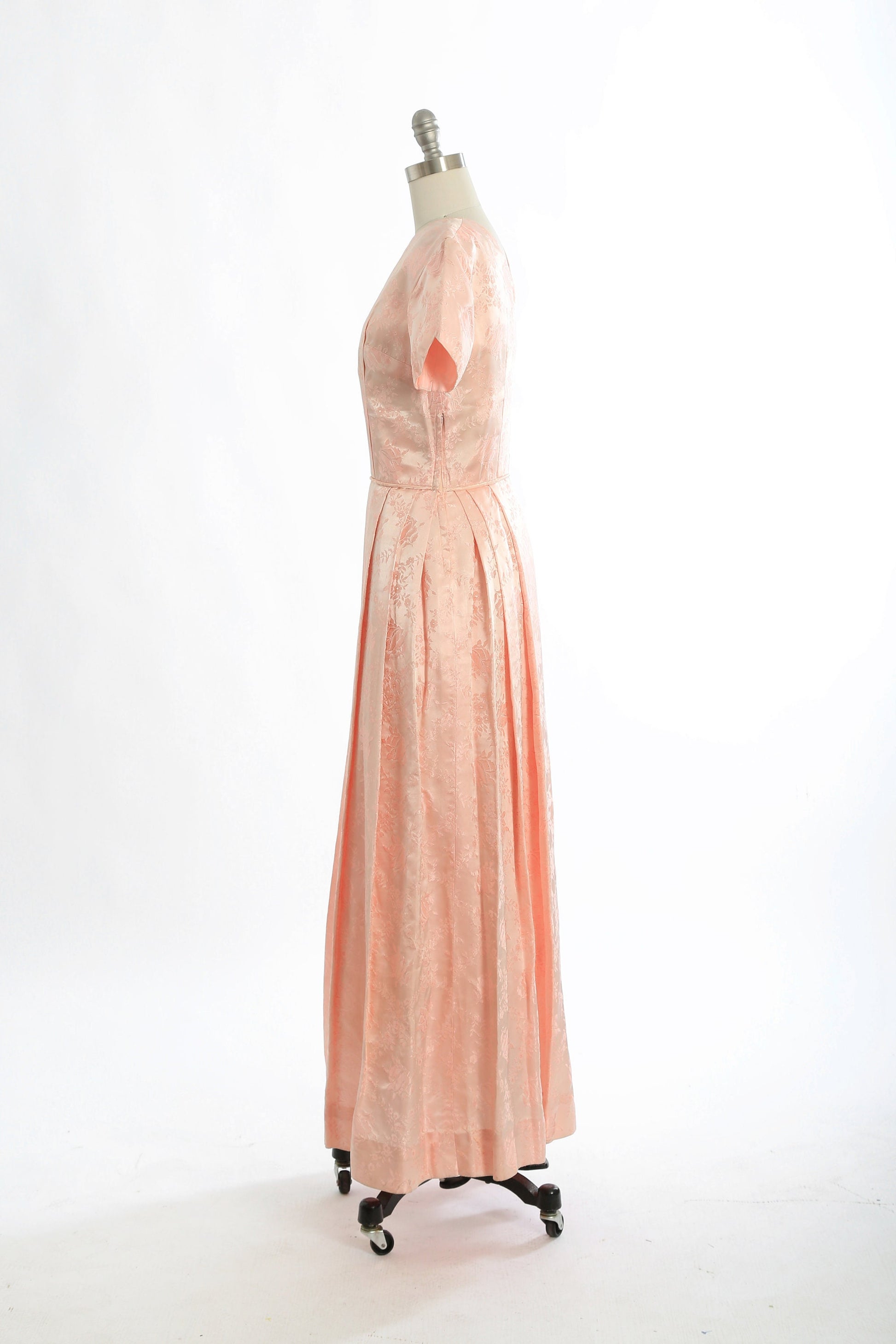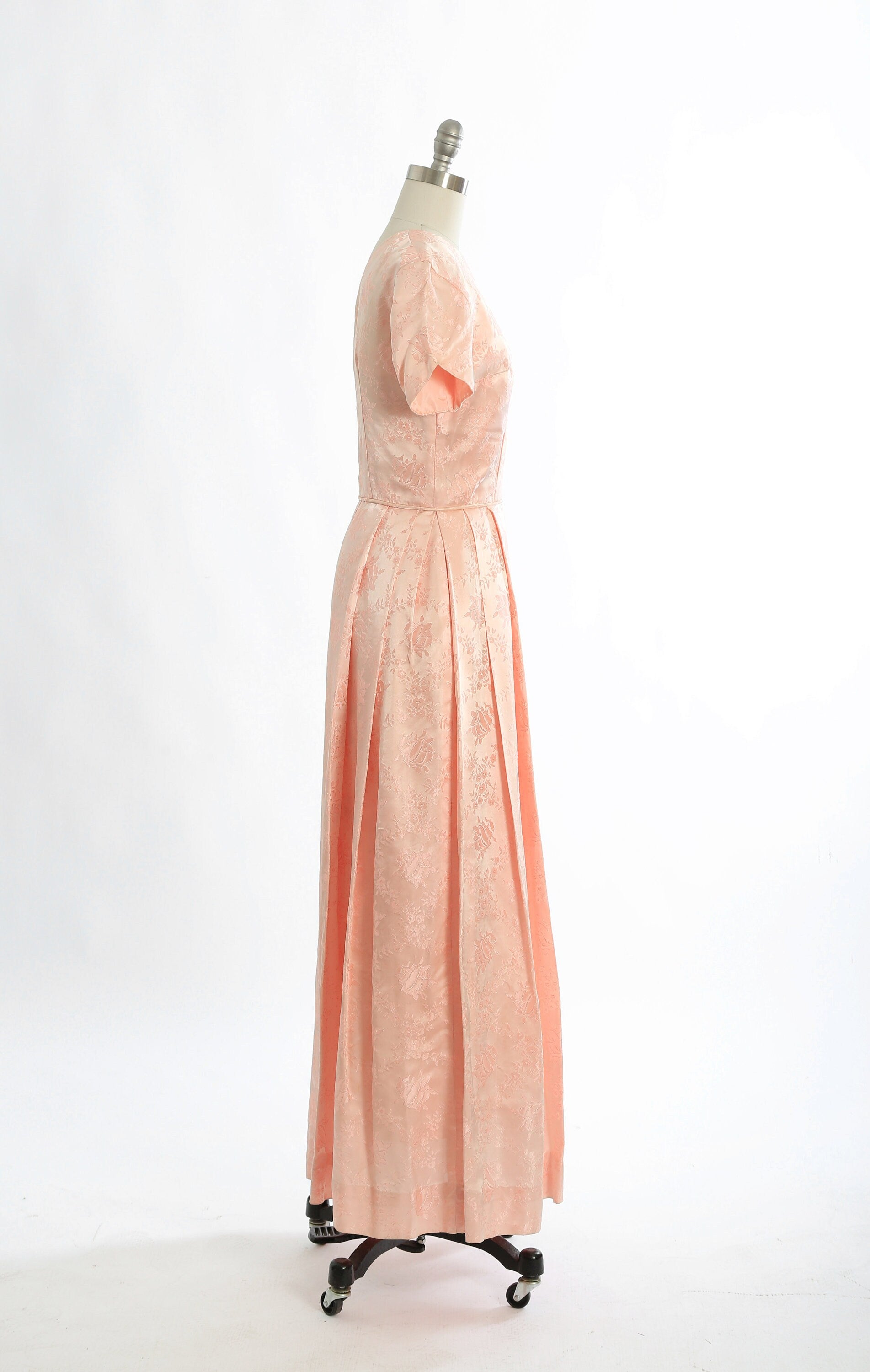 60s pink brocade rose dress | Vintage 1960s Floral Brocade maxi dress gown