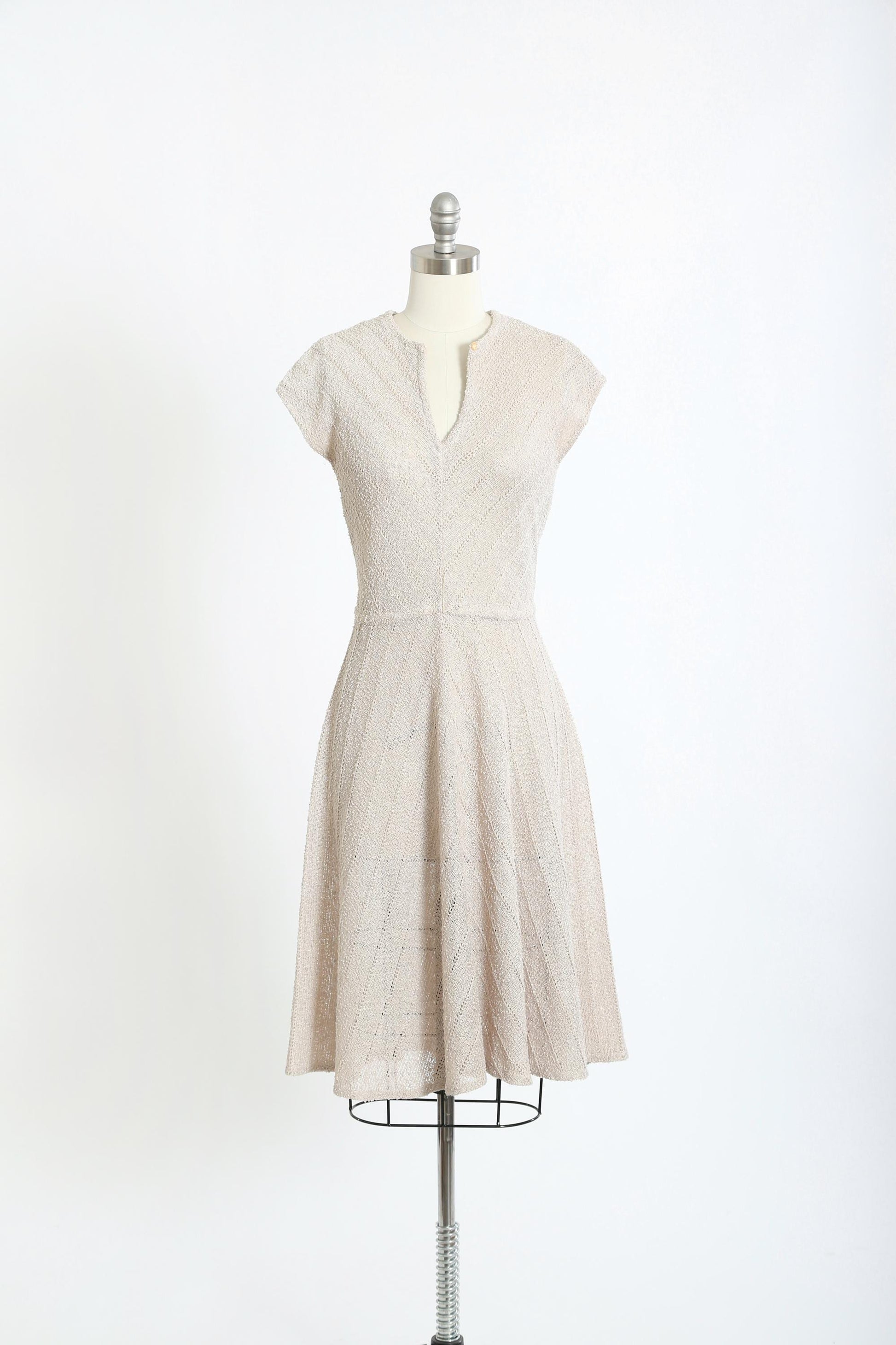 70s Gray knit dress | Vintage 1970s Crochet knit Dress