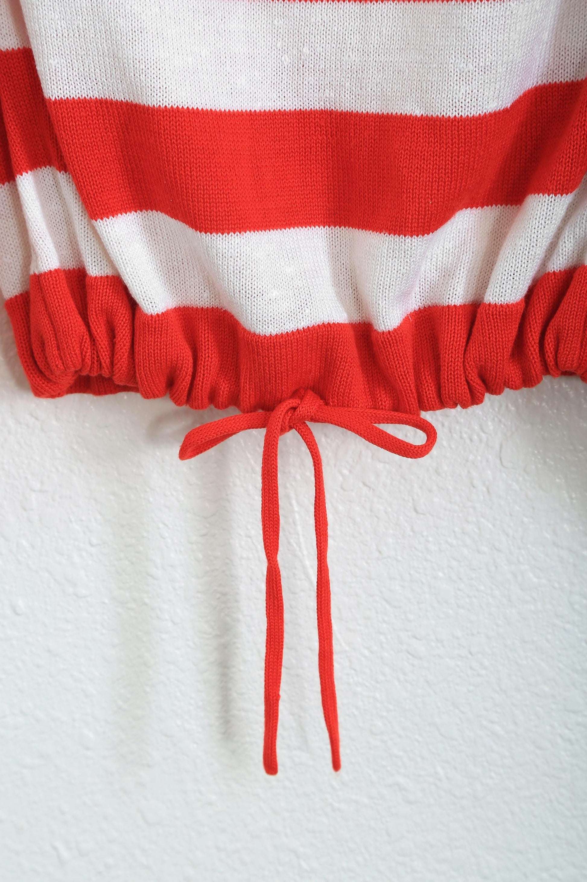 70s red striped knit draw string sweater