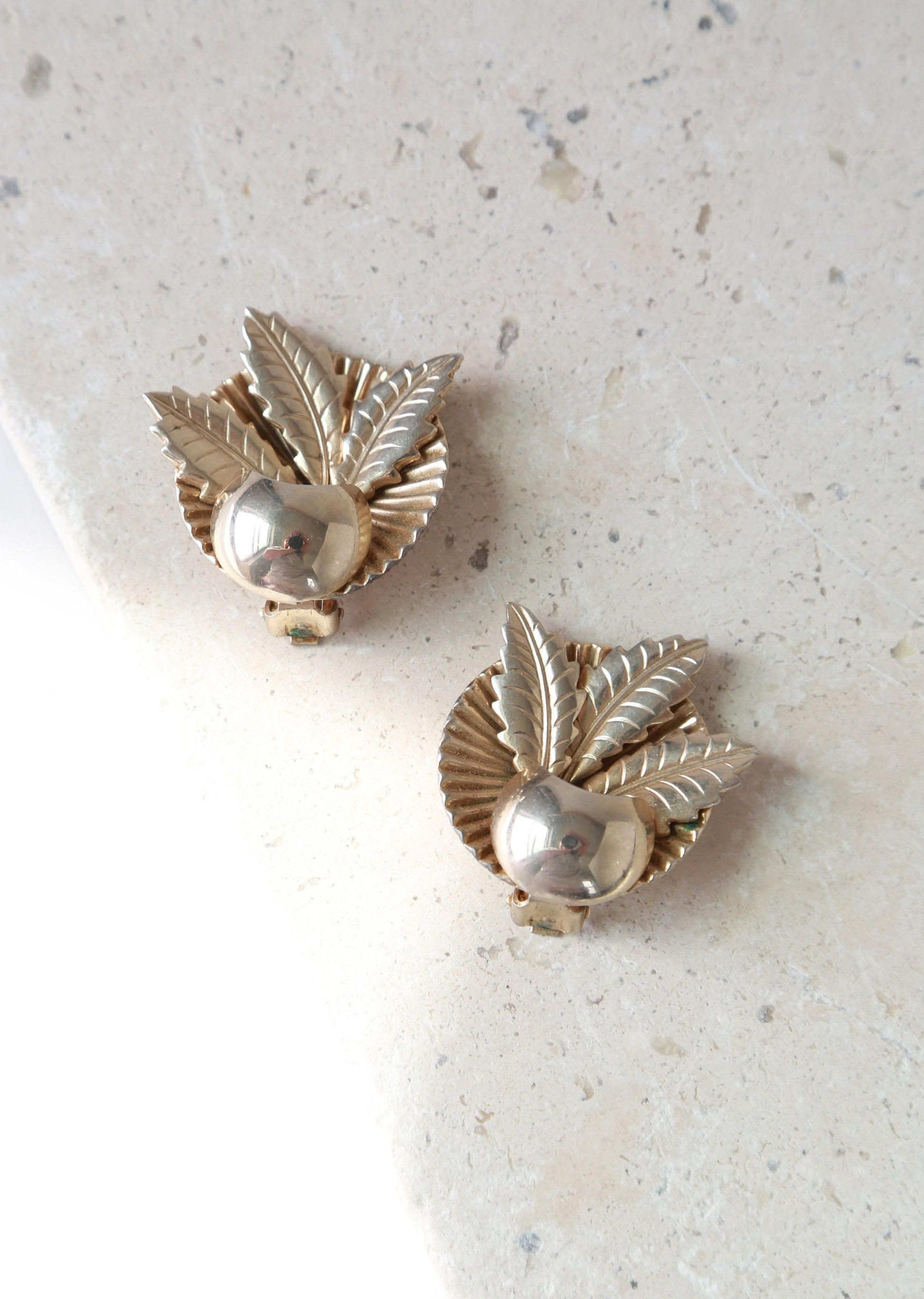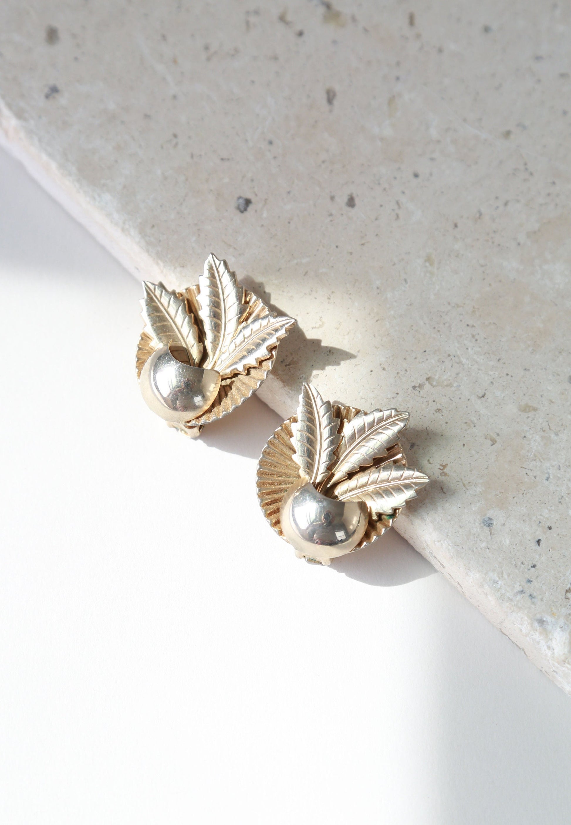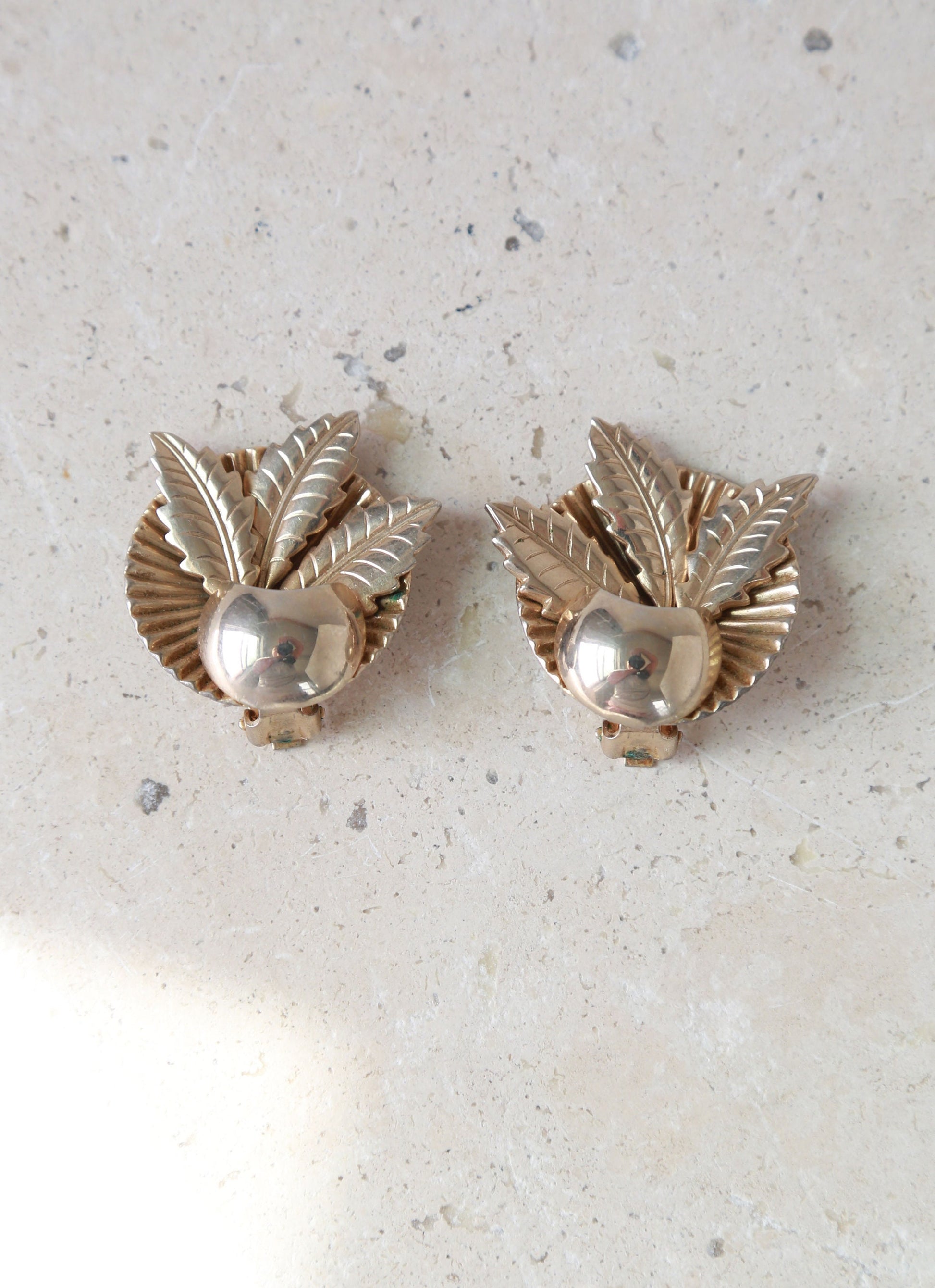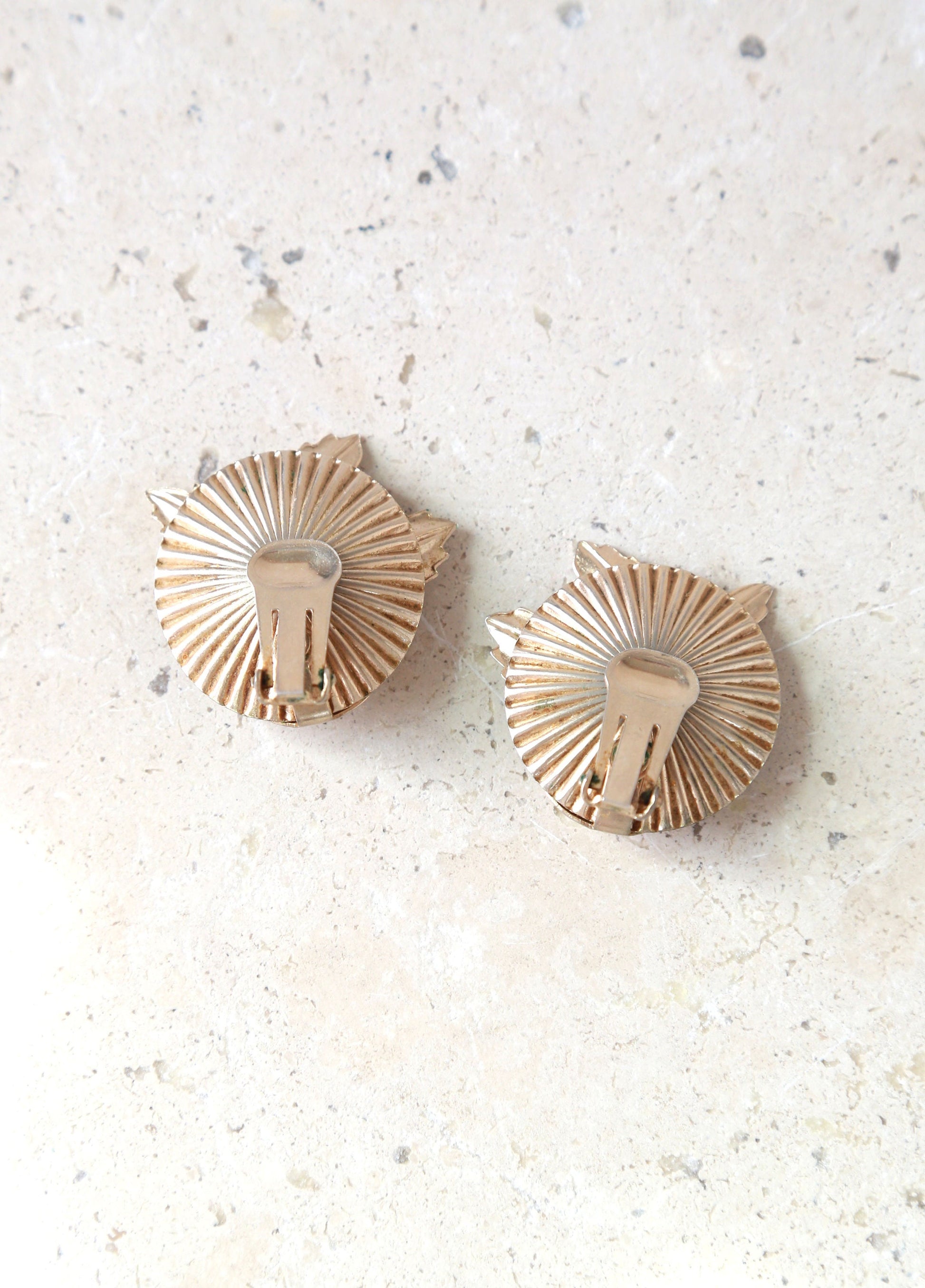 80s gold statement earrings | vintage 1980s gold clip on earrings | tropical earrings
