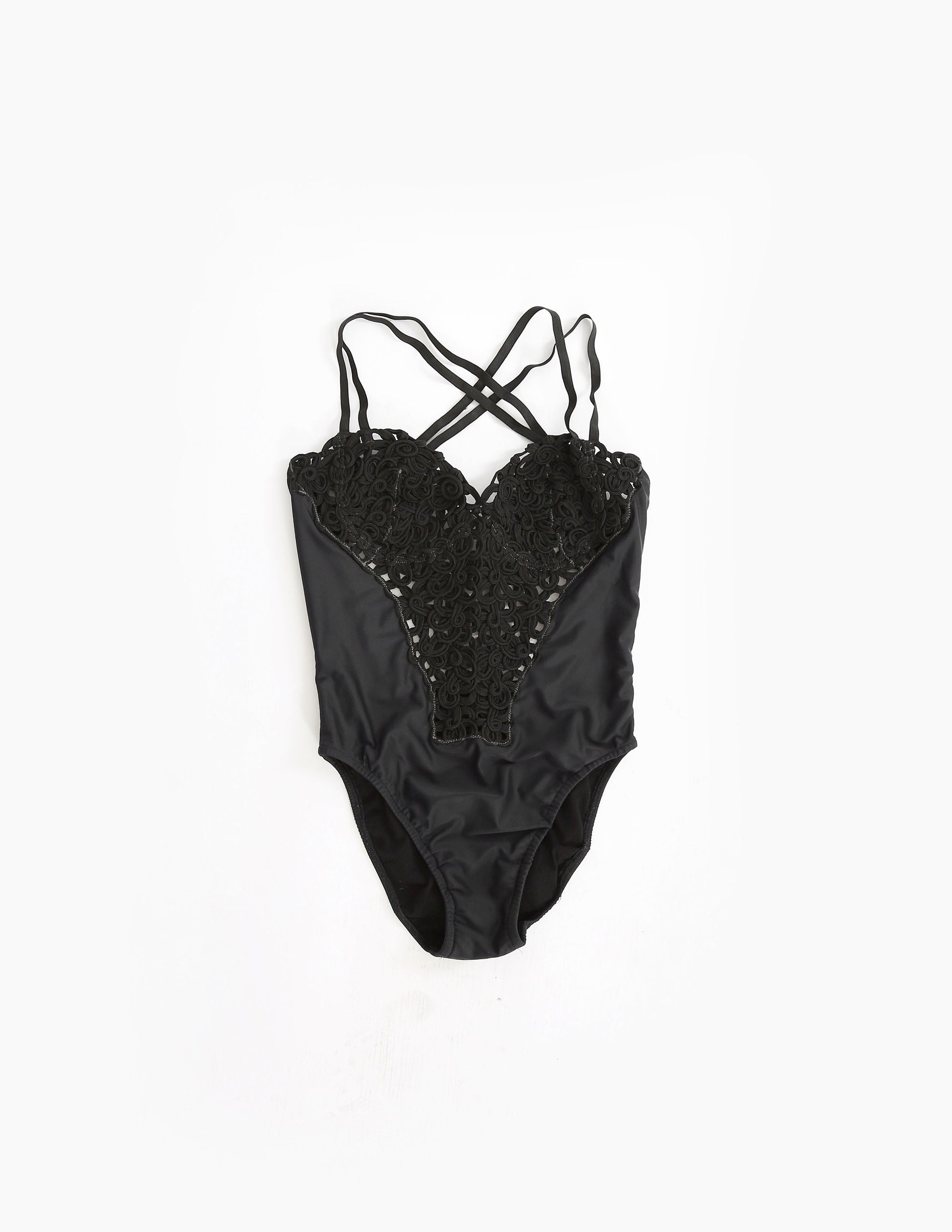 Killer Vintage 1990s sexy black one-piece swimsuit