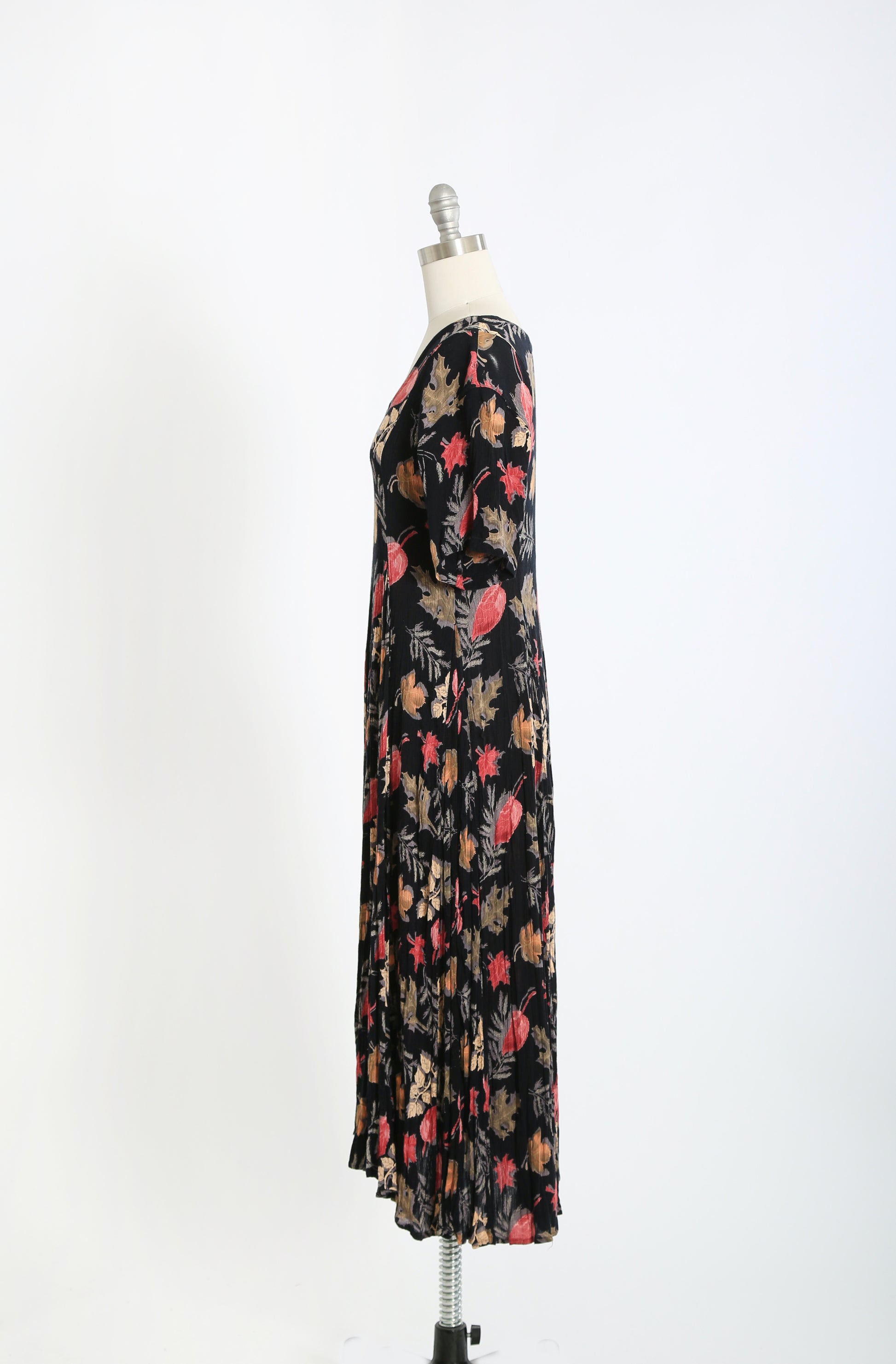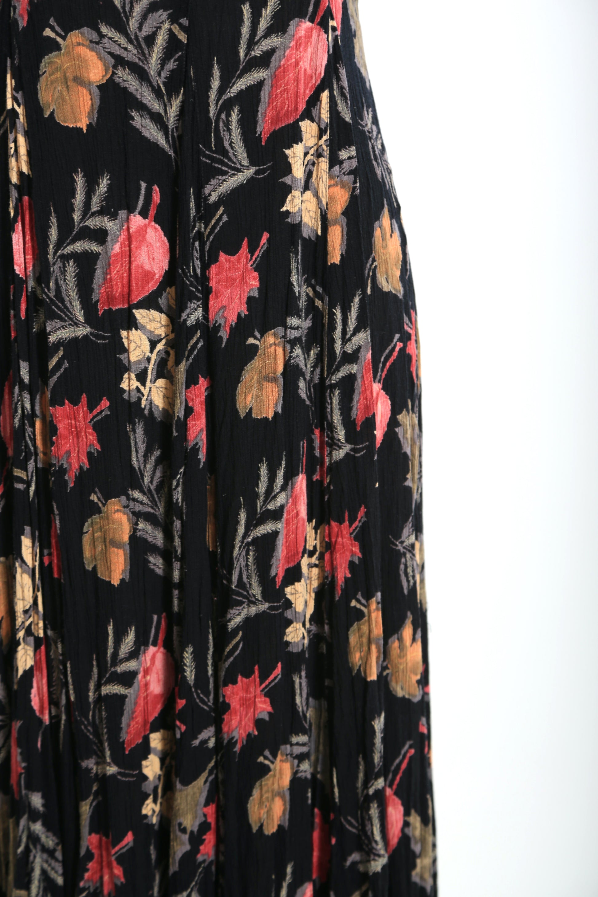 Sweet Vintage 1990s Black Falling Leaf Maxi dress
