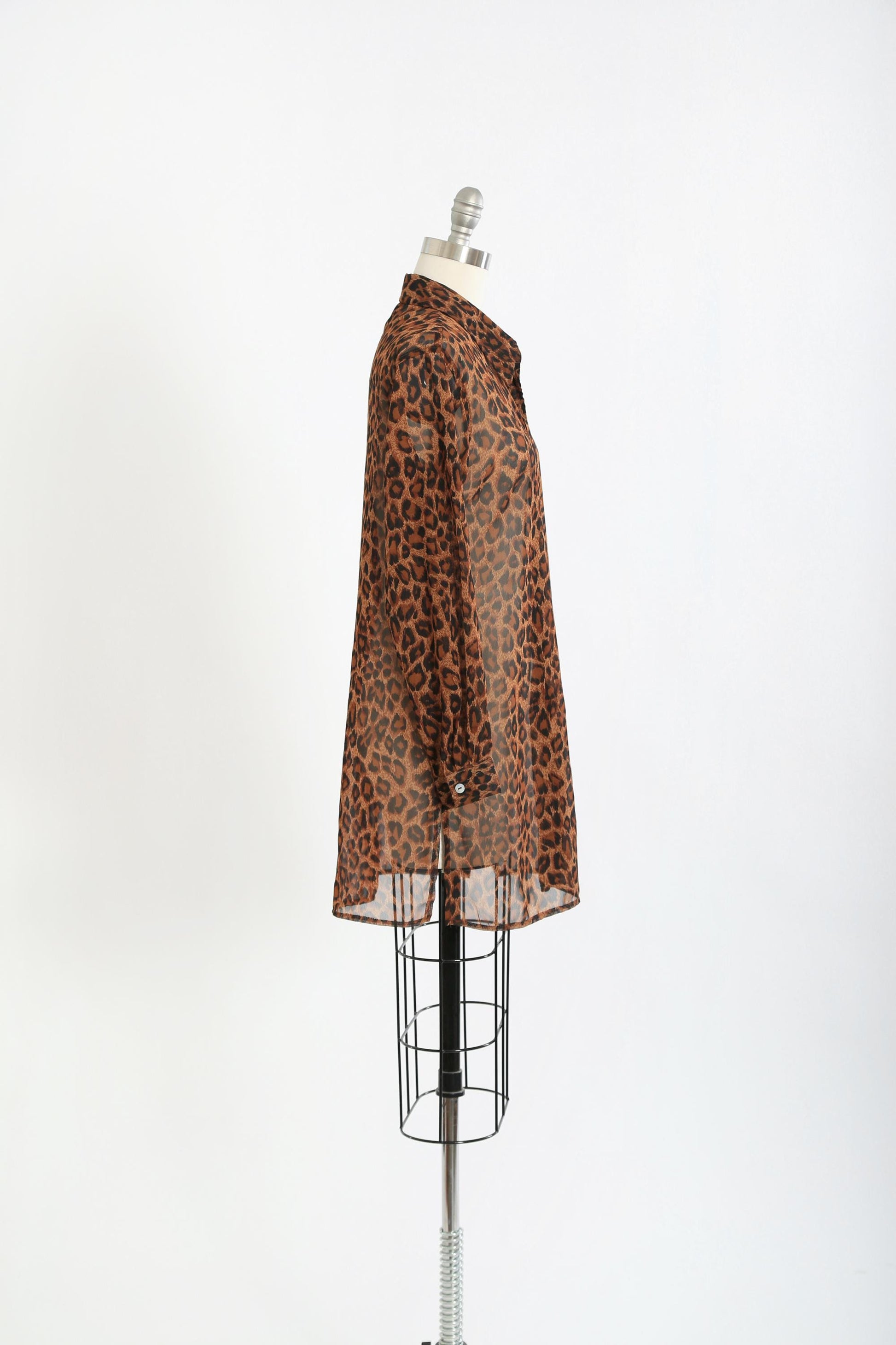 Semi sheer, mother of pearl shell buttons down, front long fit with side slits