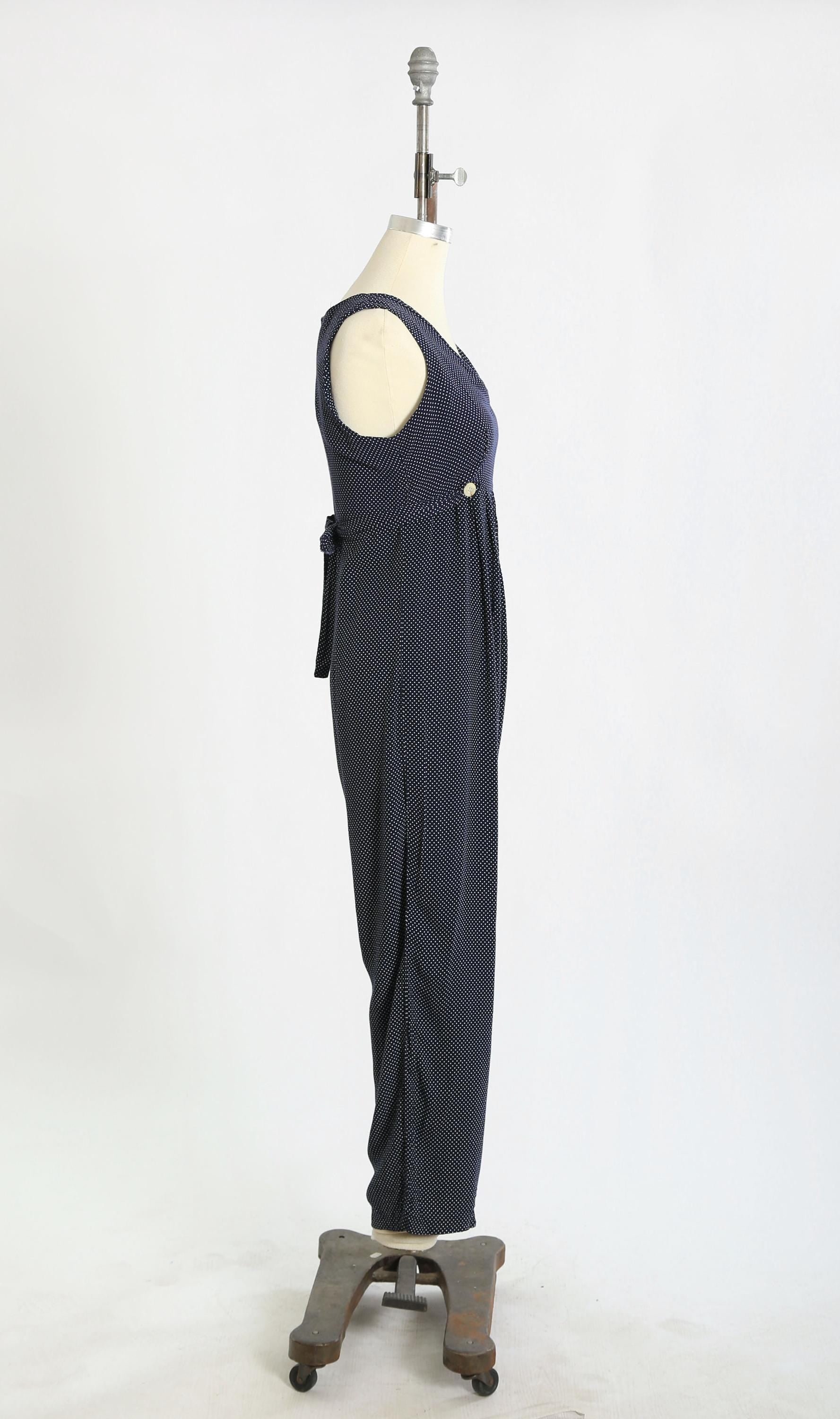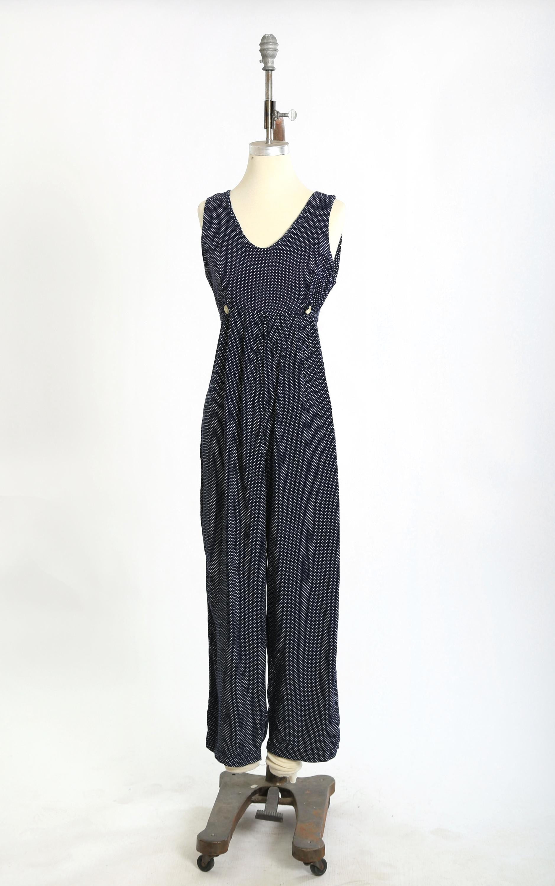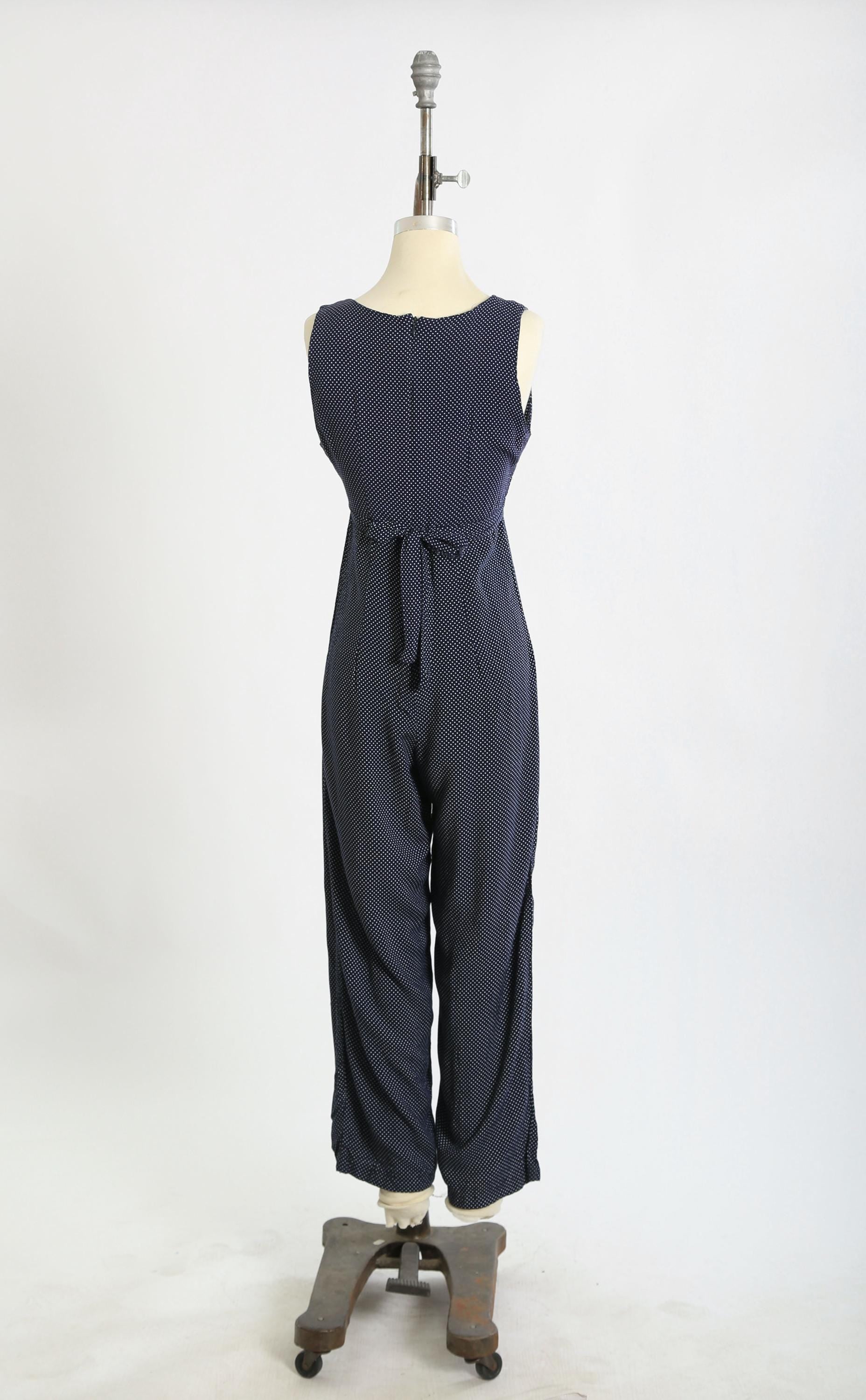 Vintage 1990s navy blue + white polka dot straight leg jumpsuit