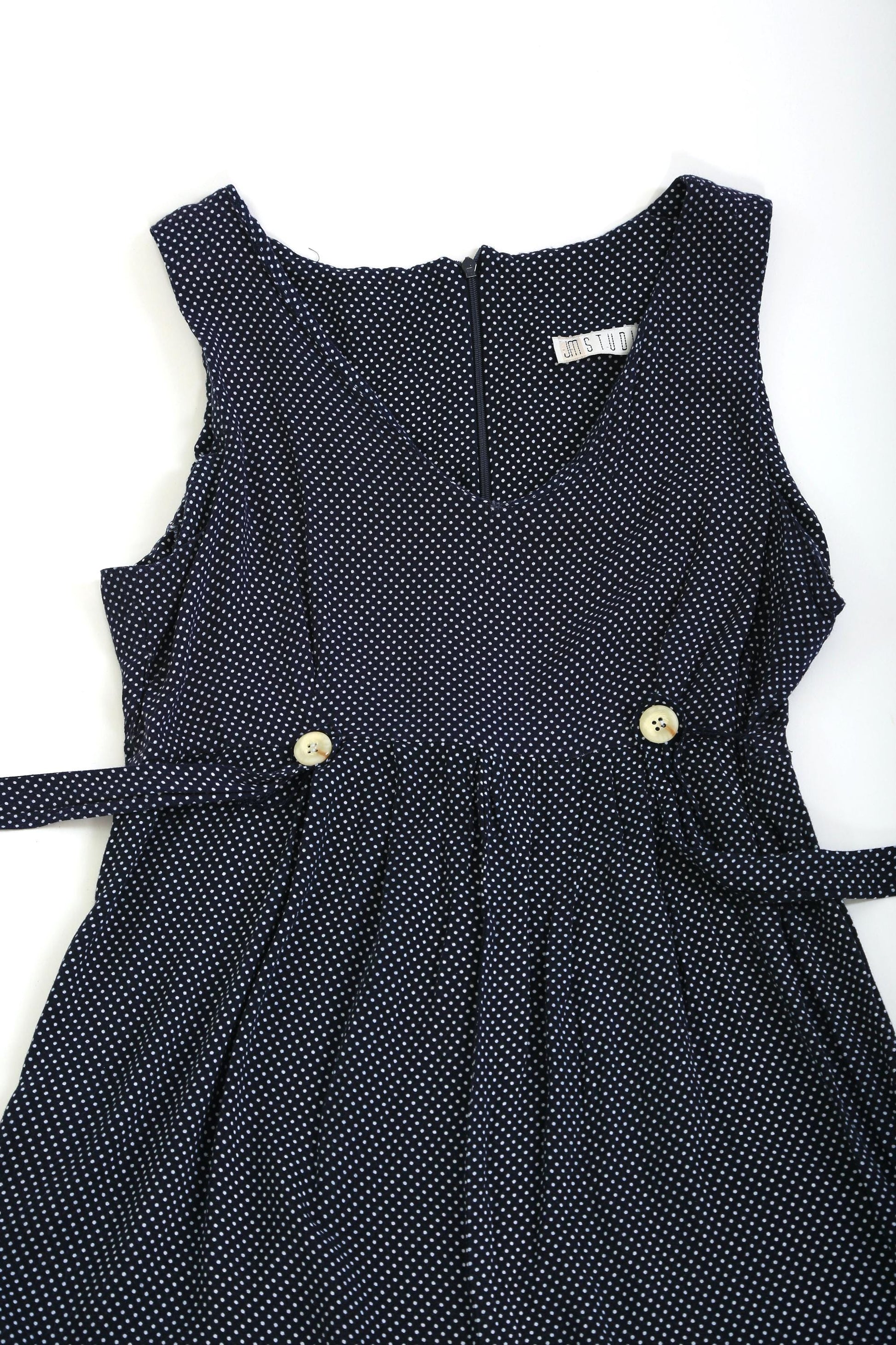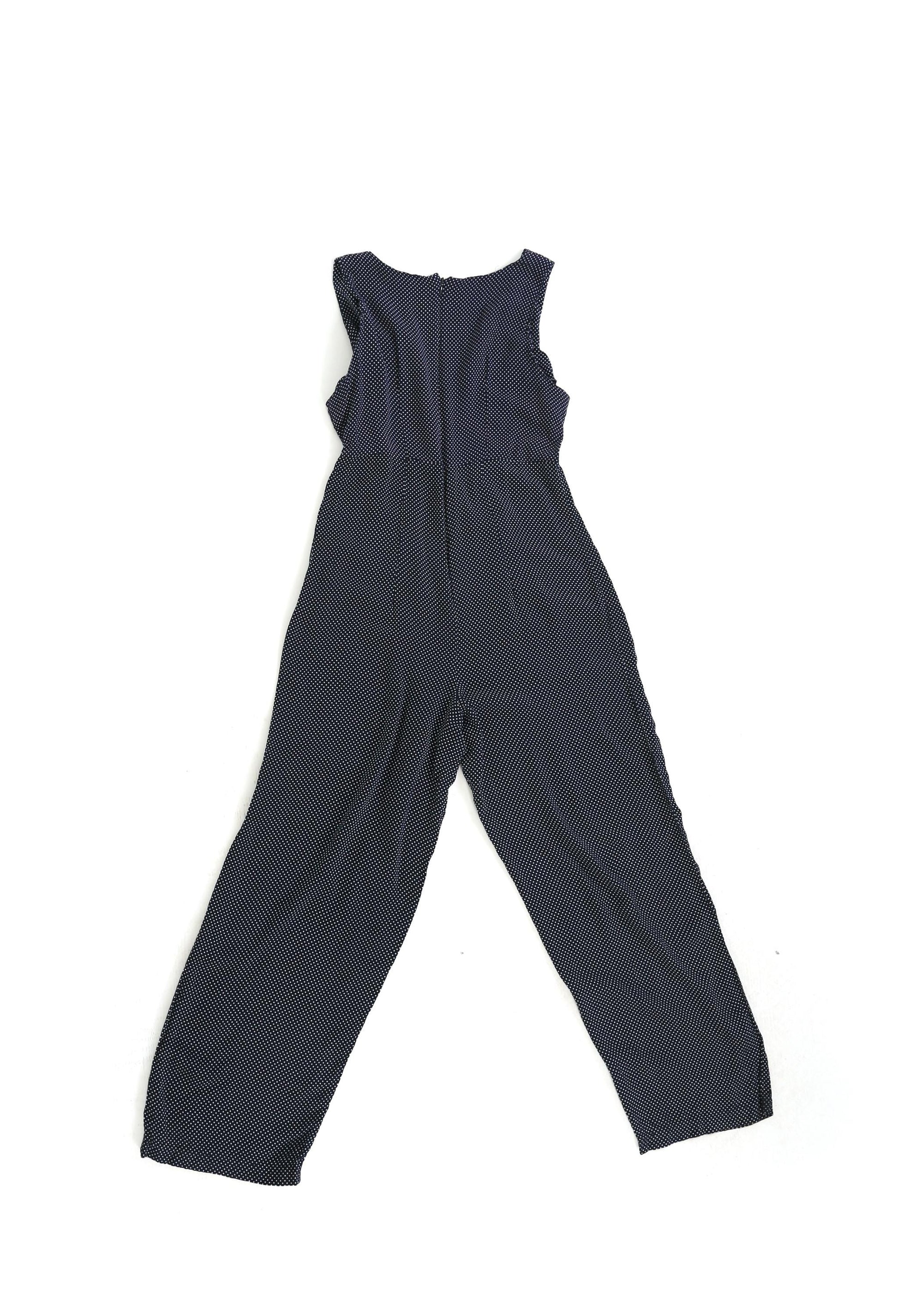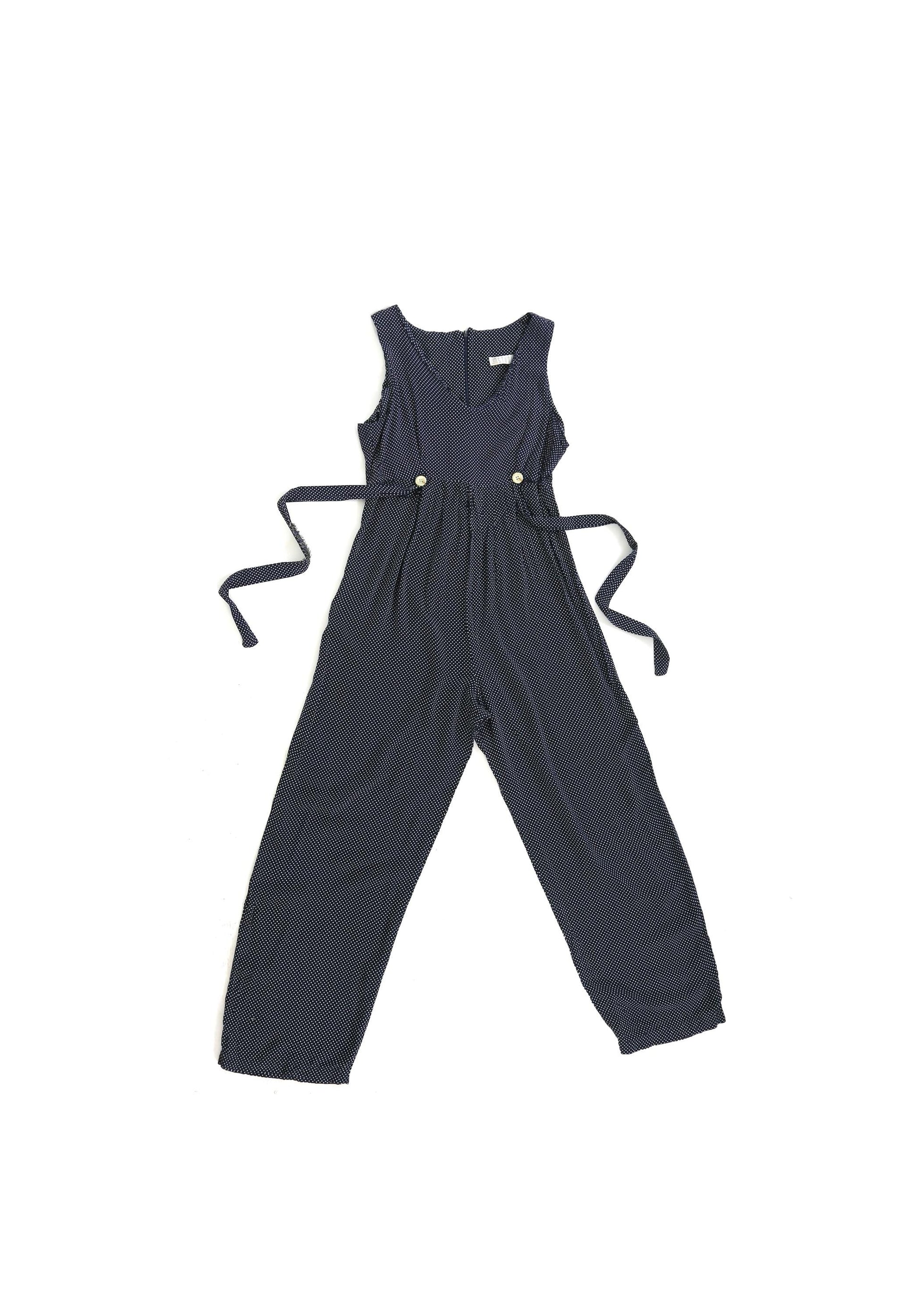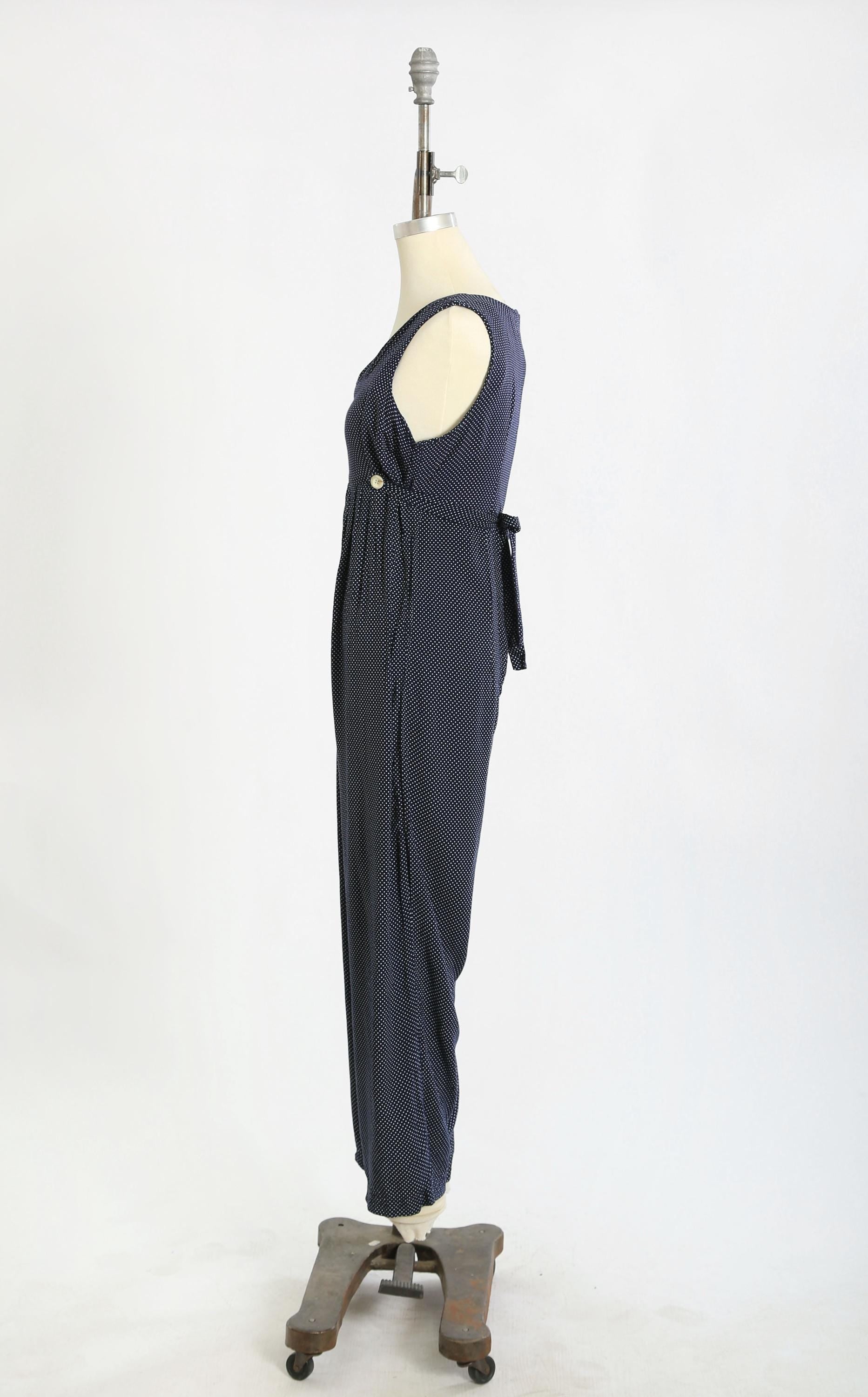 Vintage 1990s navy blue + white polka dot straight leg jumpsuit