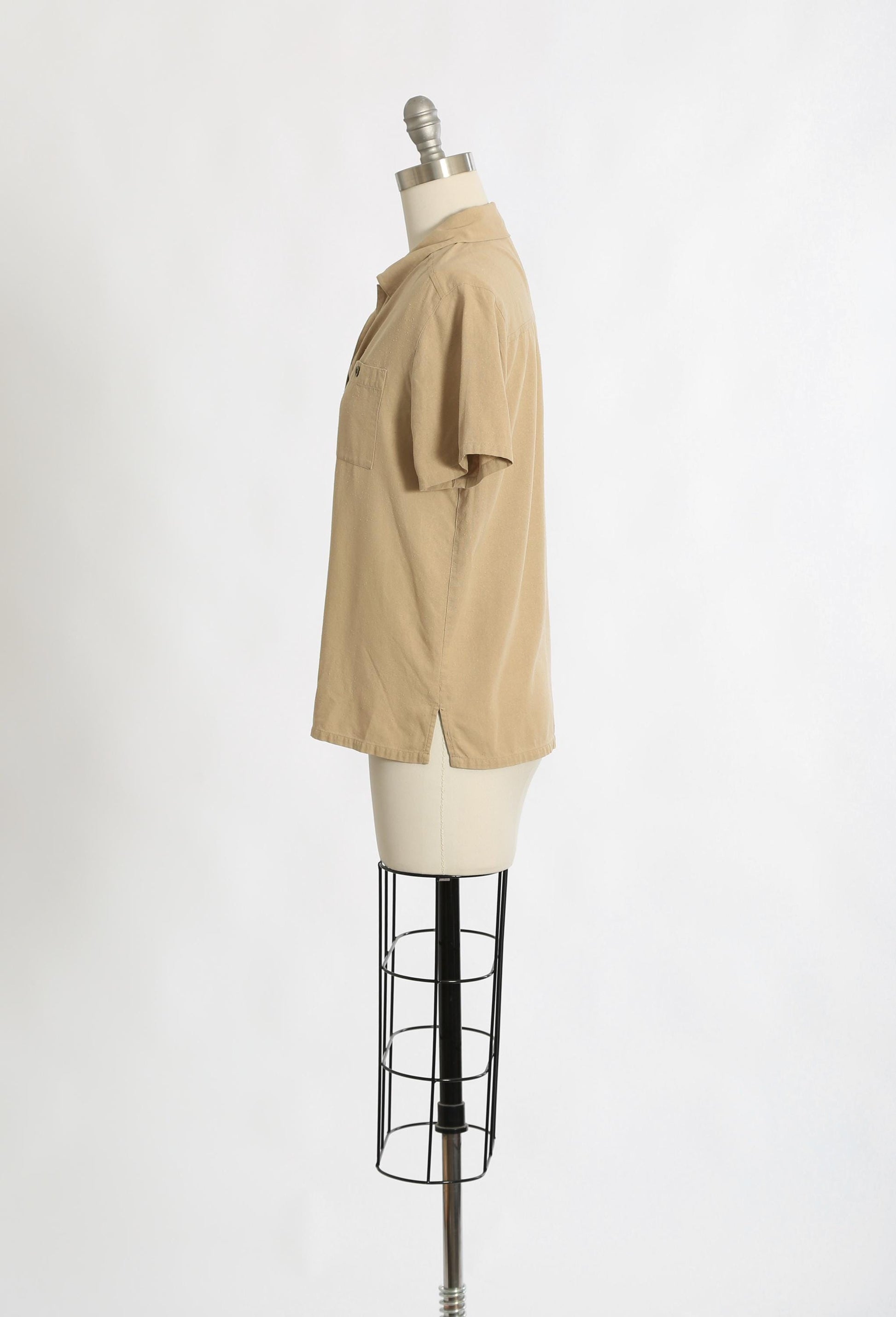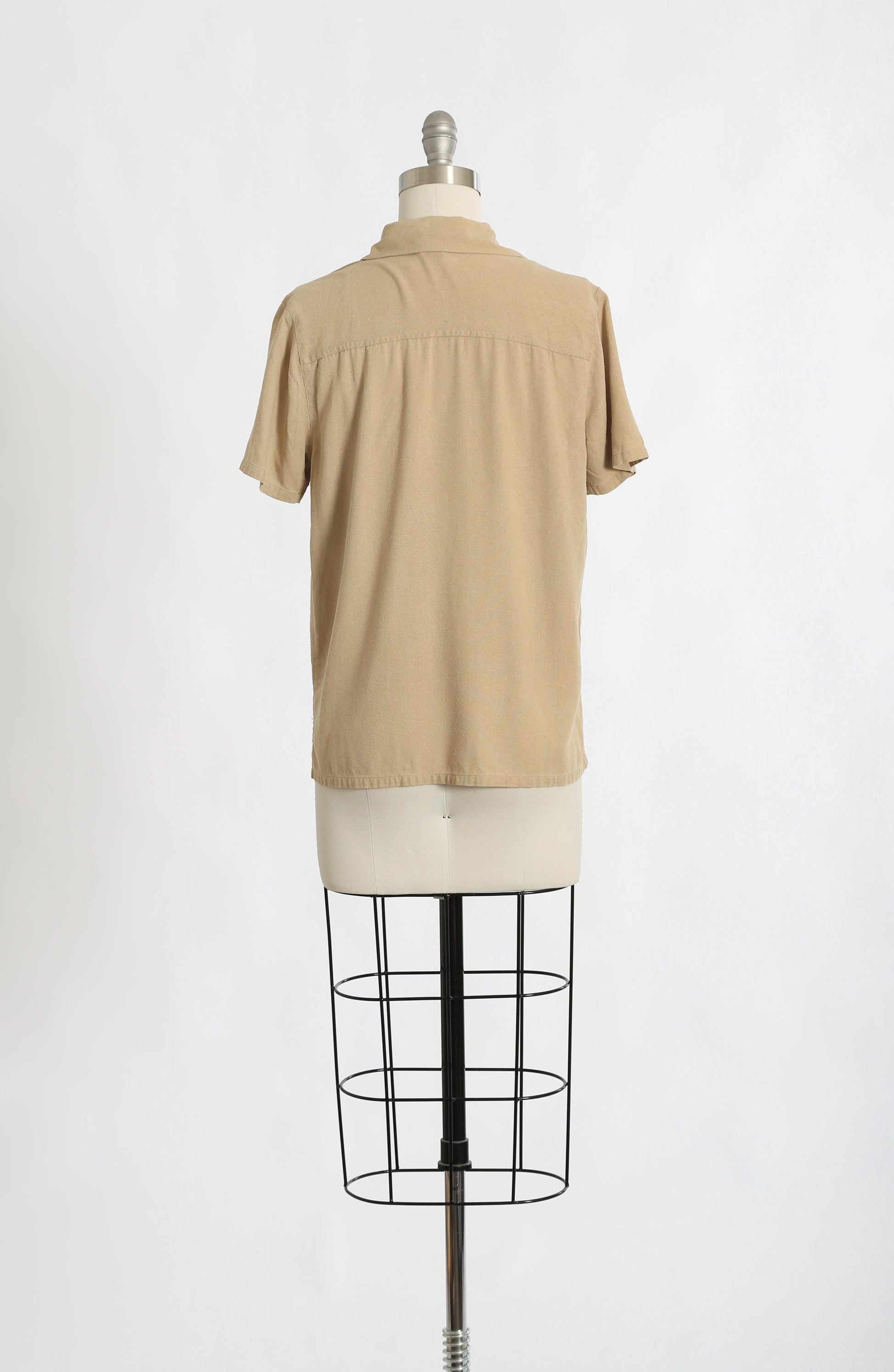 Vintage 1990s early Y2K Taupe 100% silk blouse