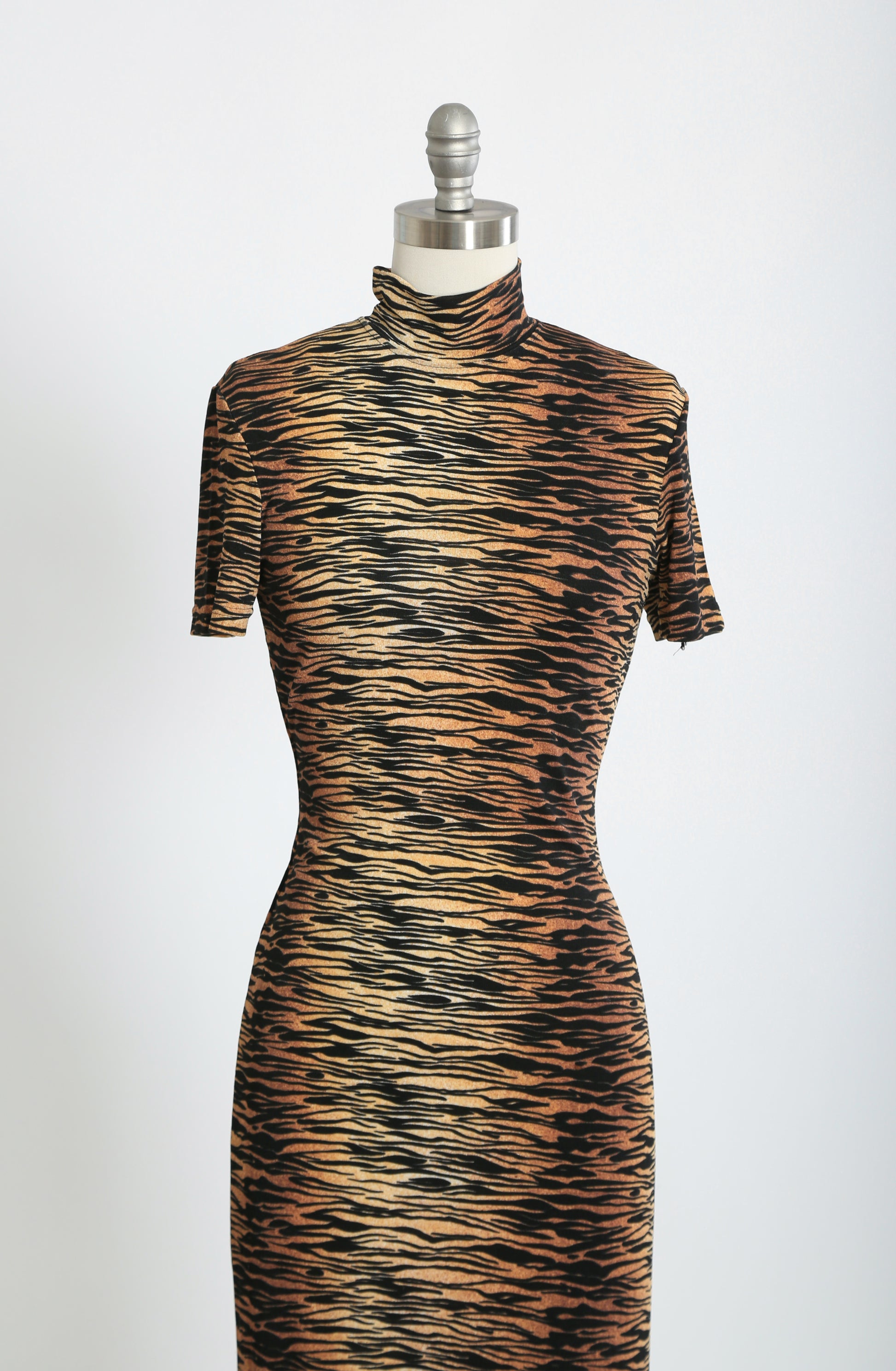 Sexy vintage 1990s Tiger striped bodycon maxi dress