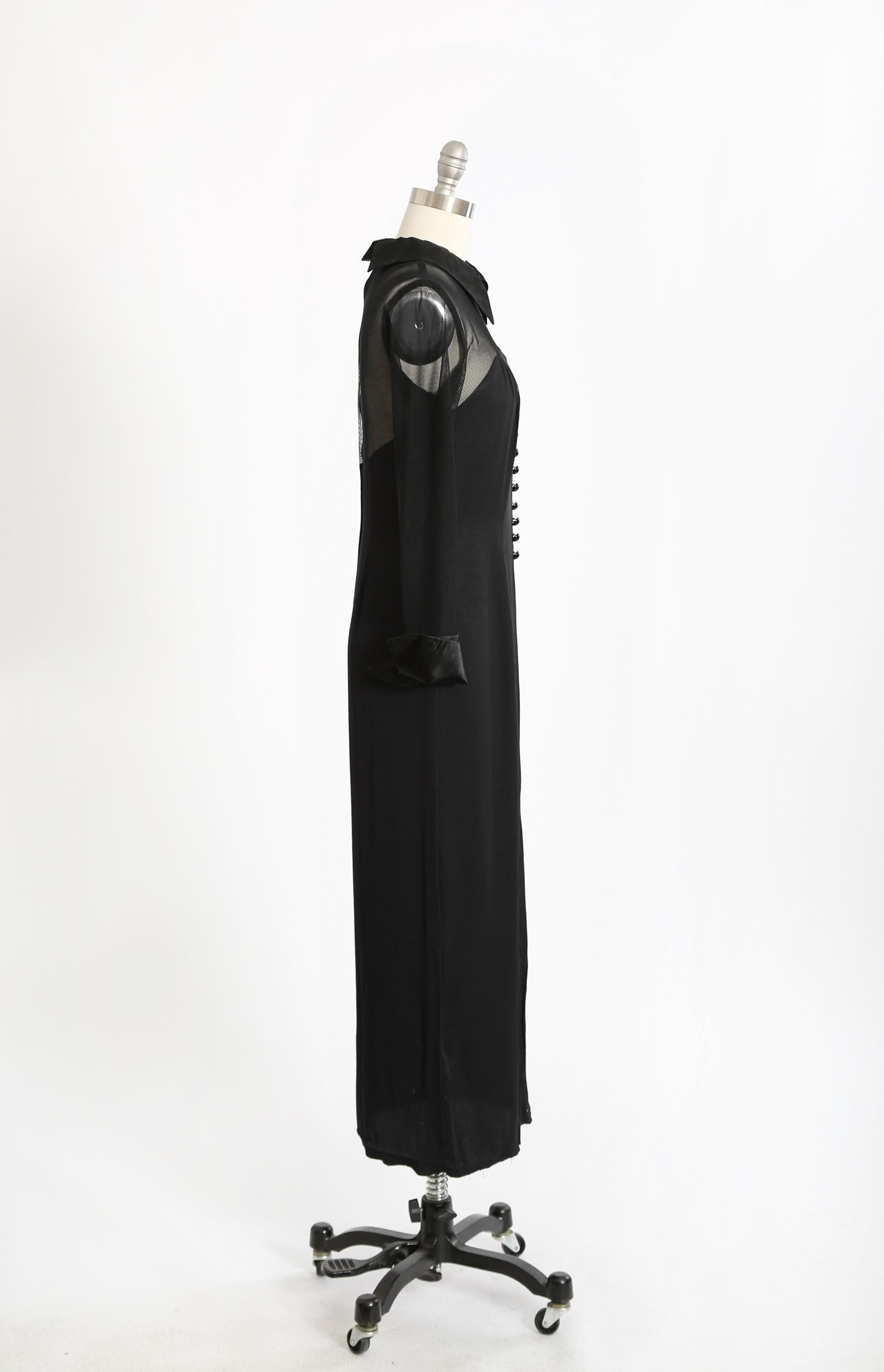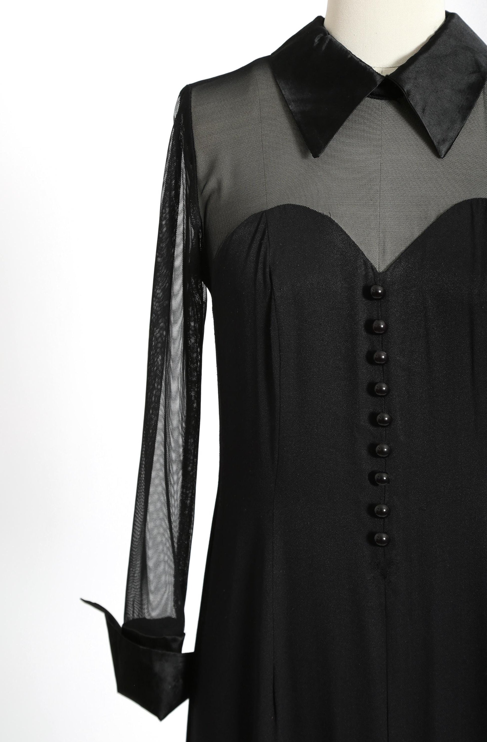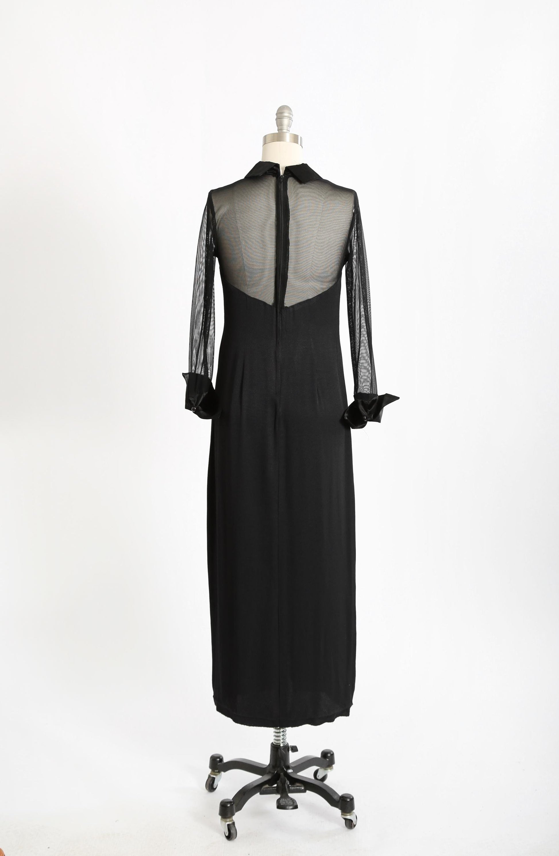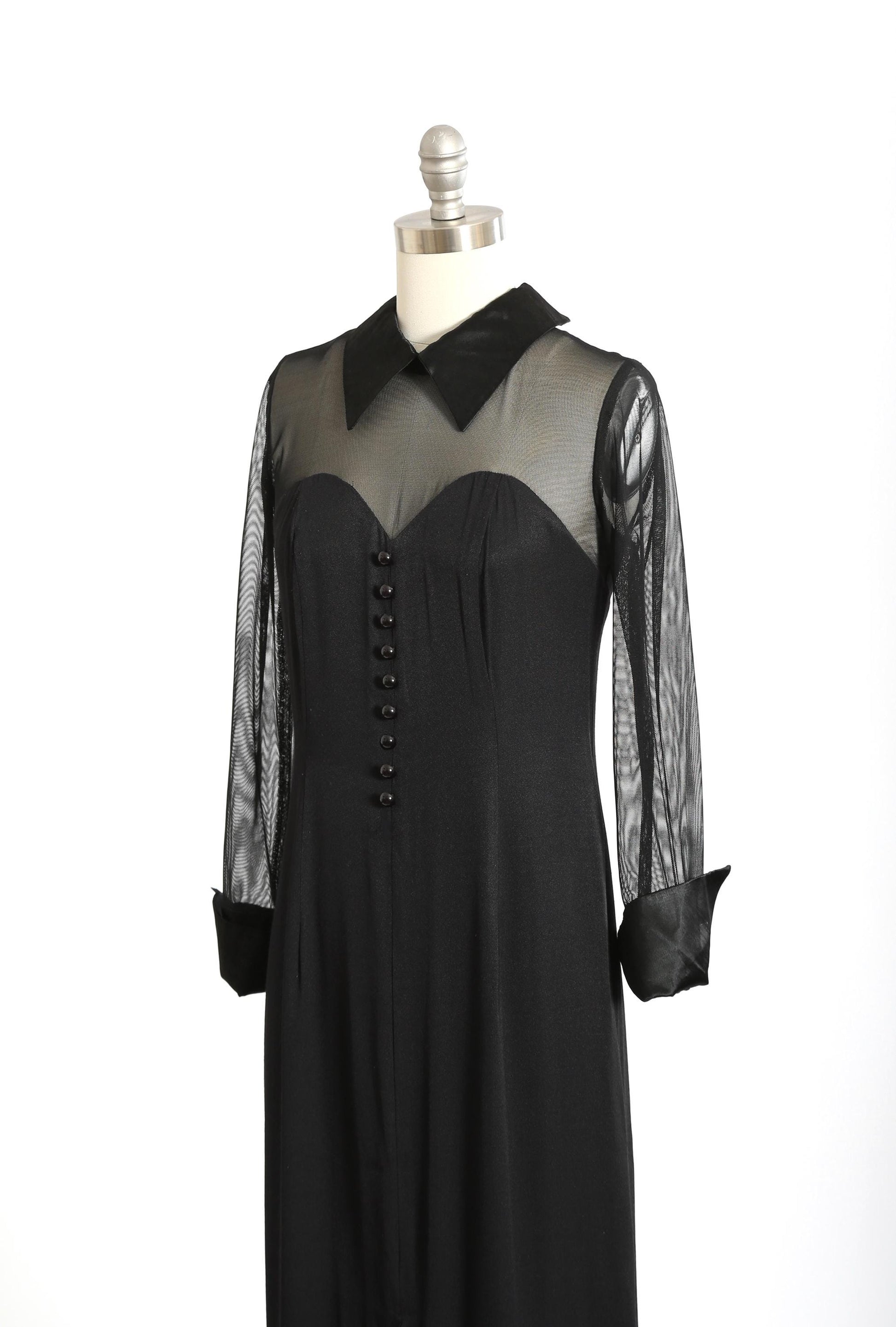 90s tuxedo maxi dress | Vintage 1990s black sheer tuxedo dress