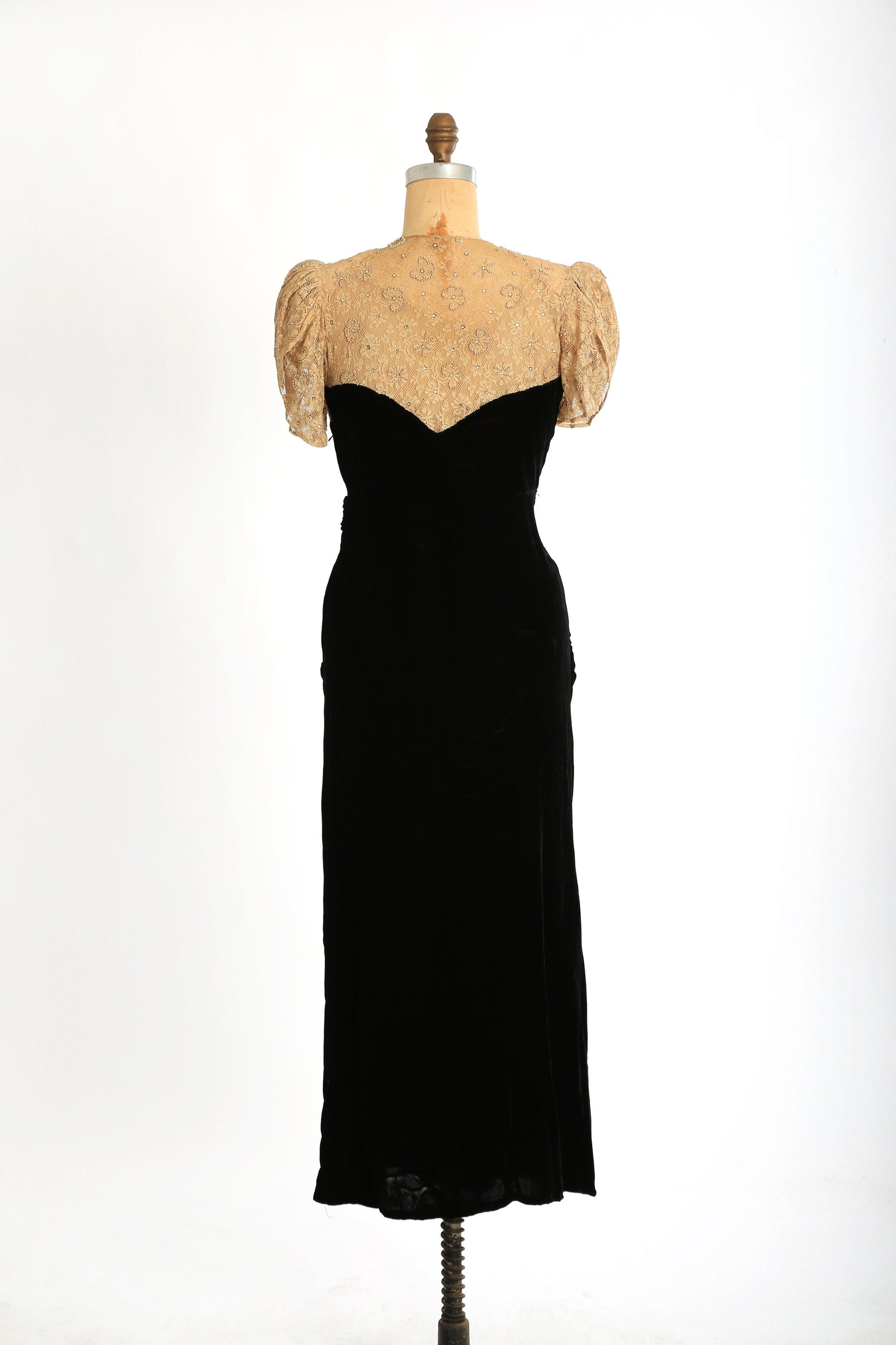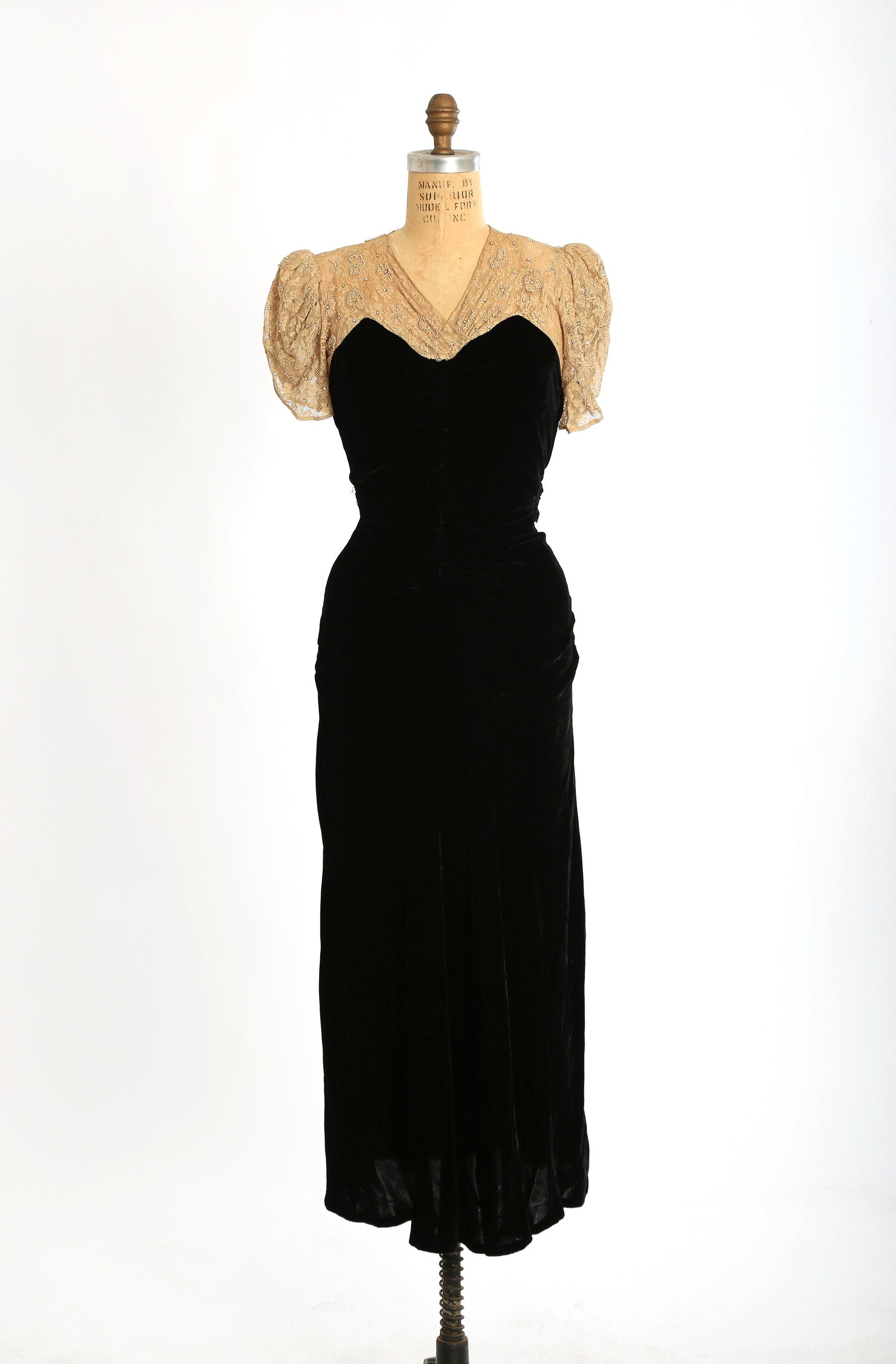 Stunning rare Antique Vintage 1930s black velvet lace dress