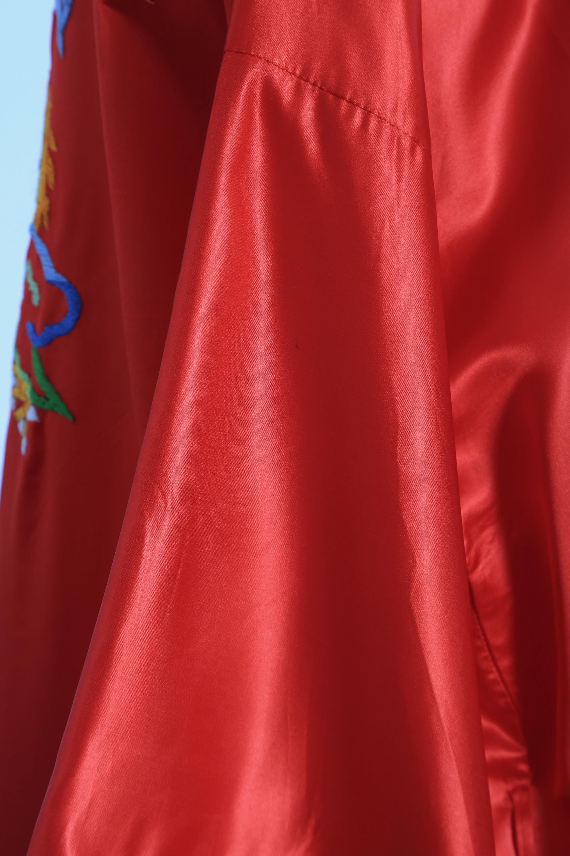 Golden Bee silk robe | Vintage Chinese hand embroidered Red purse silk dragon robe