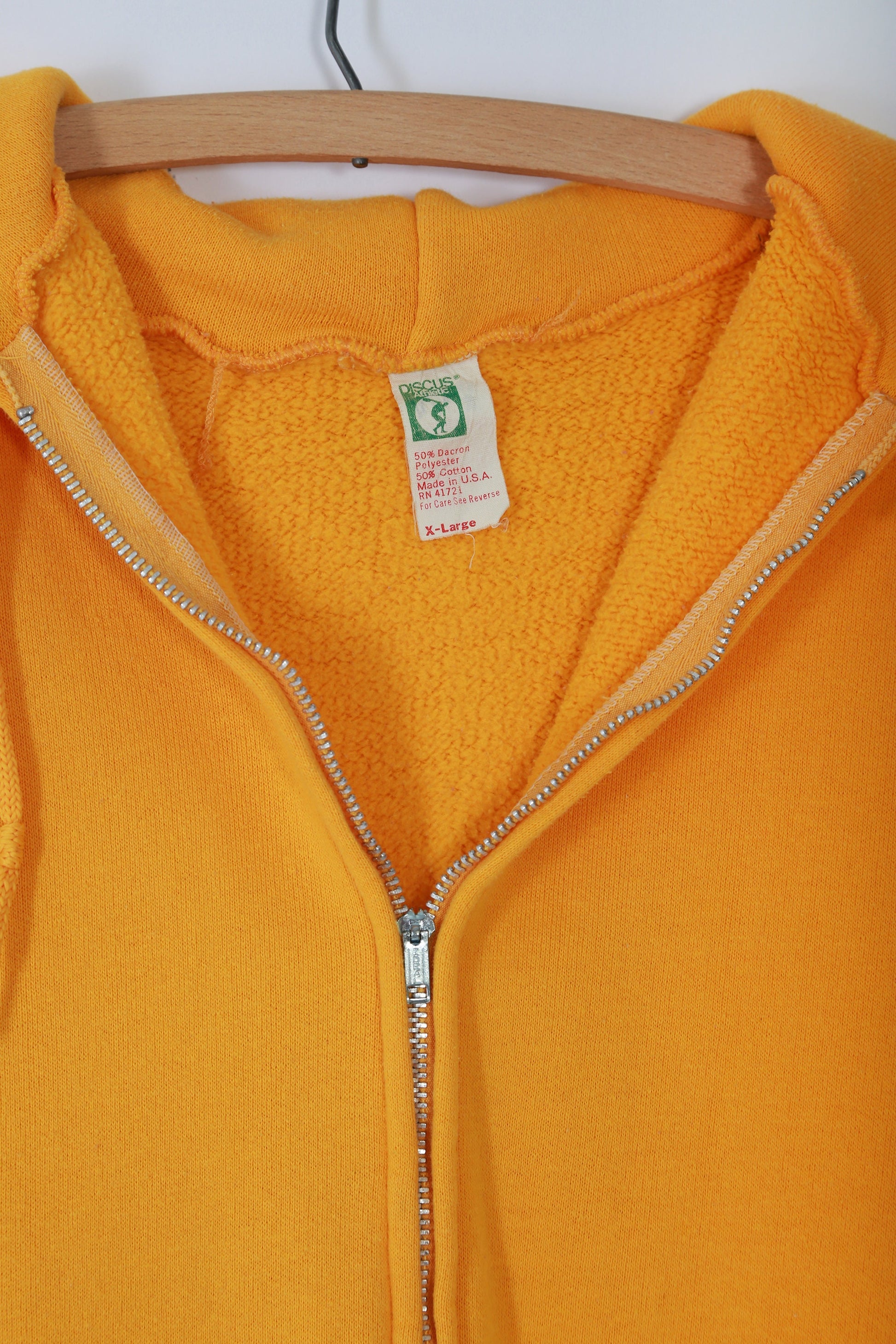 vintage 1970s bright yellow 50/50 blend zip hoodie