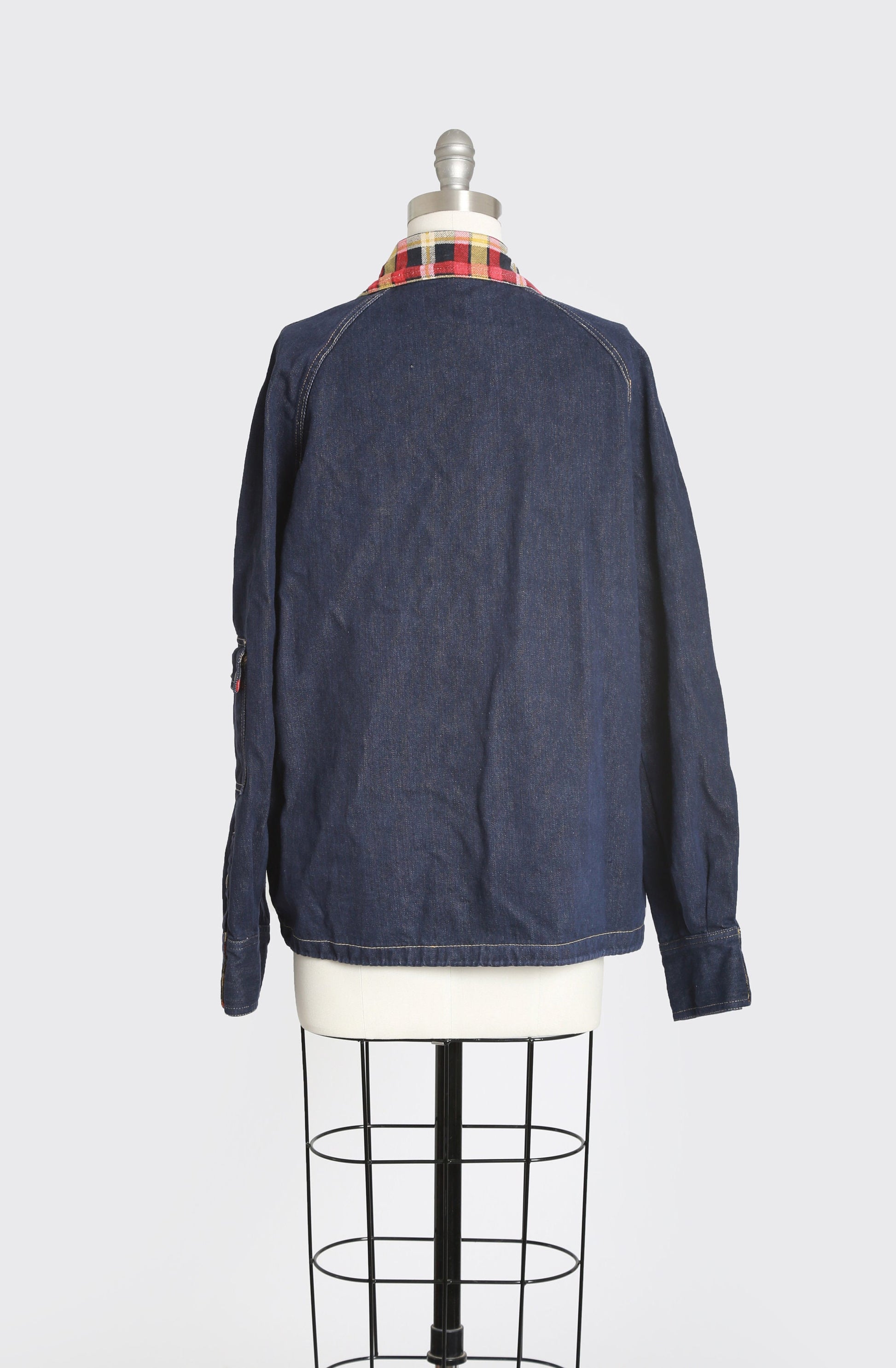 4 outer pockets with plaid flannel collar + pocket on sleeve
