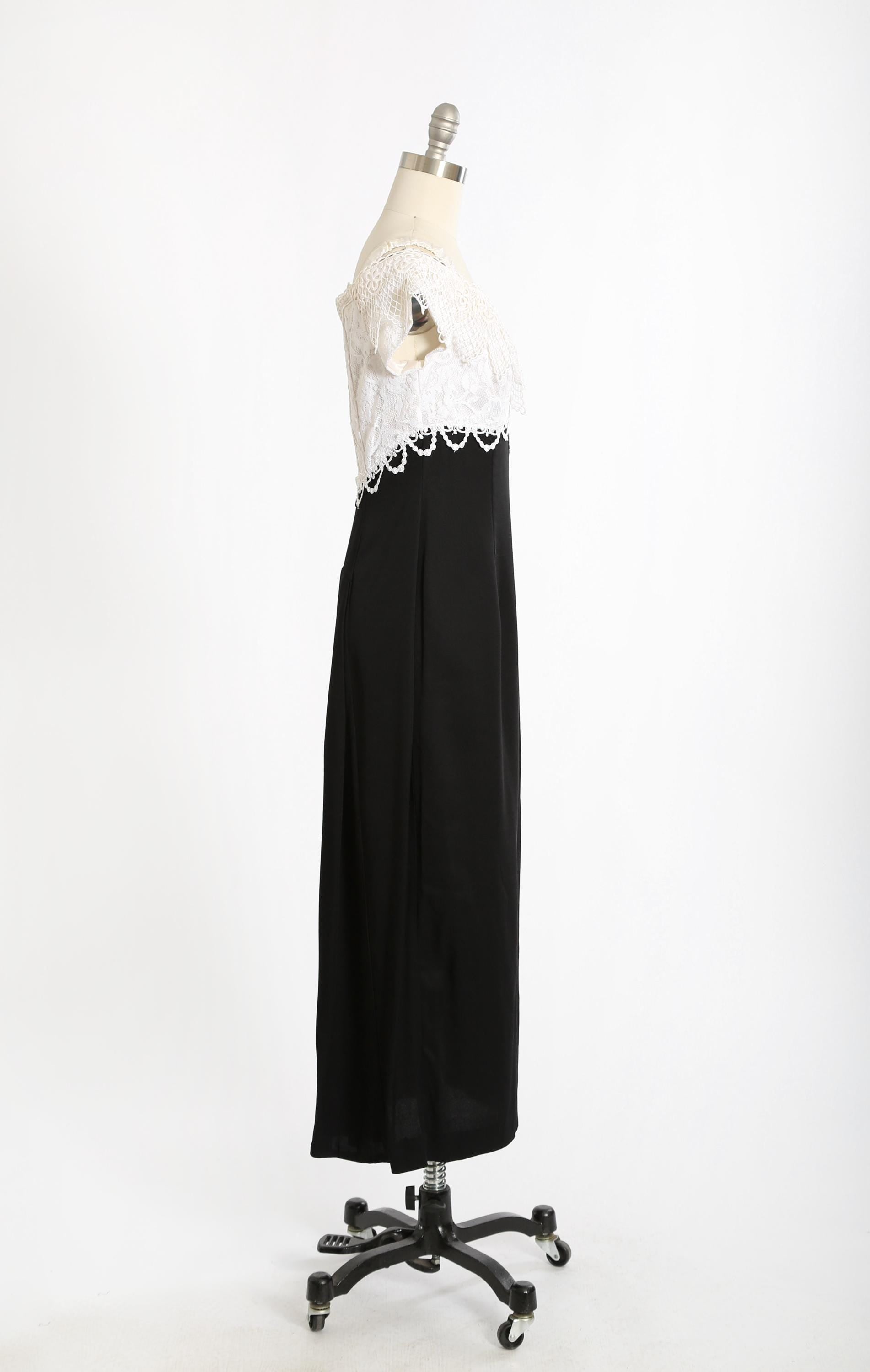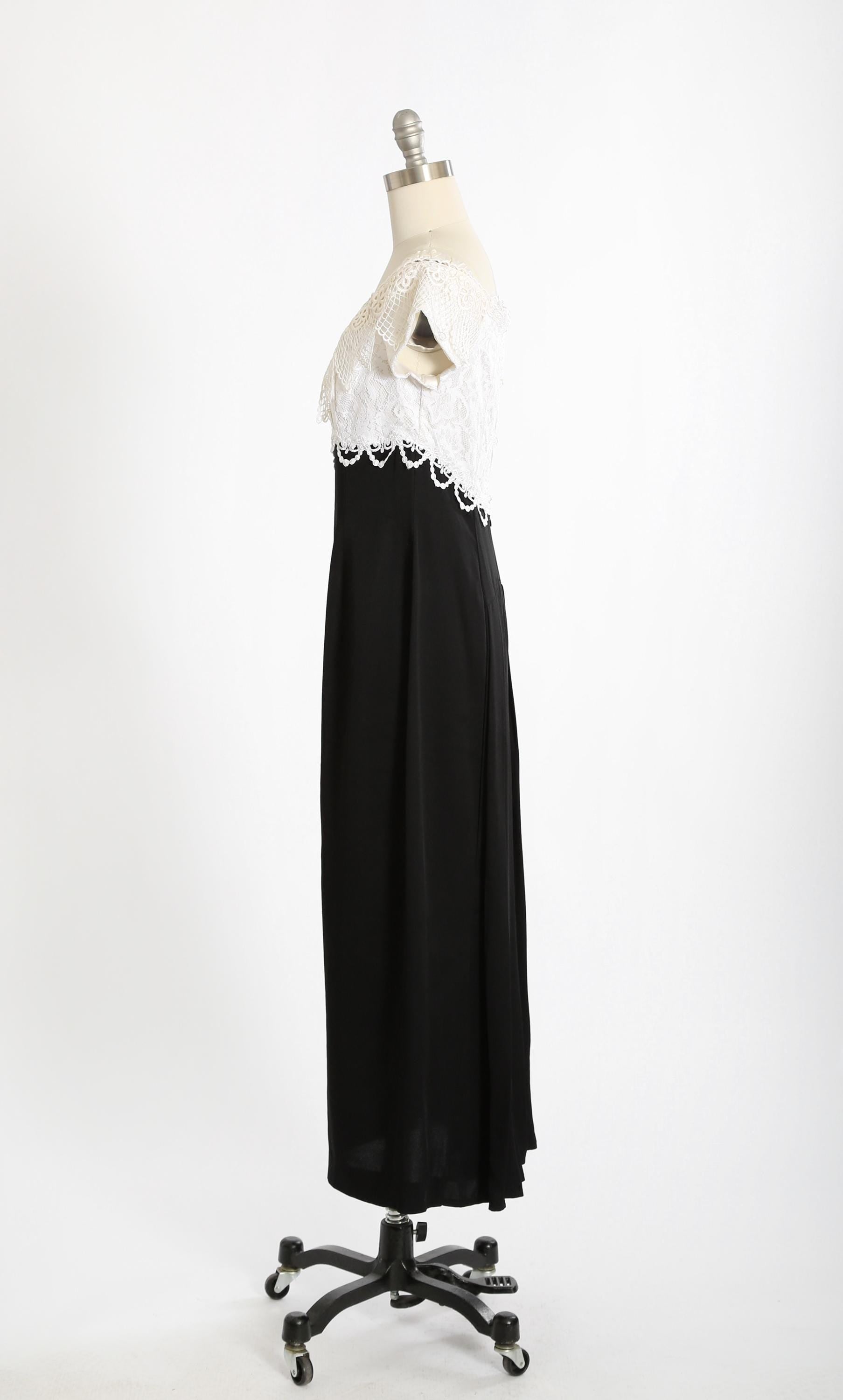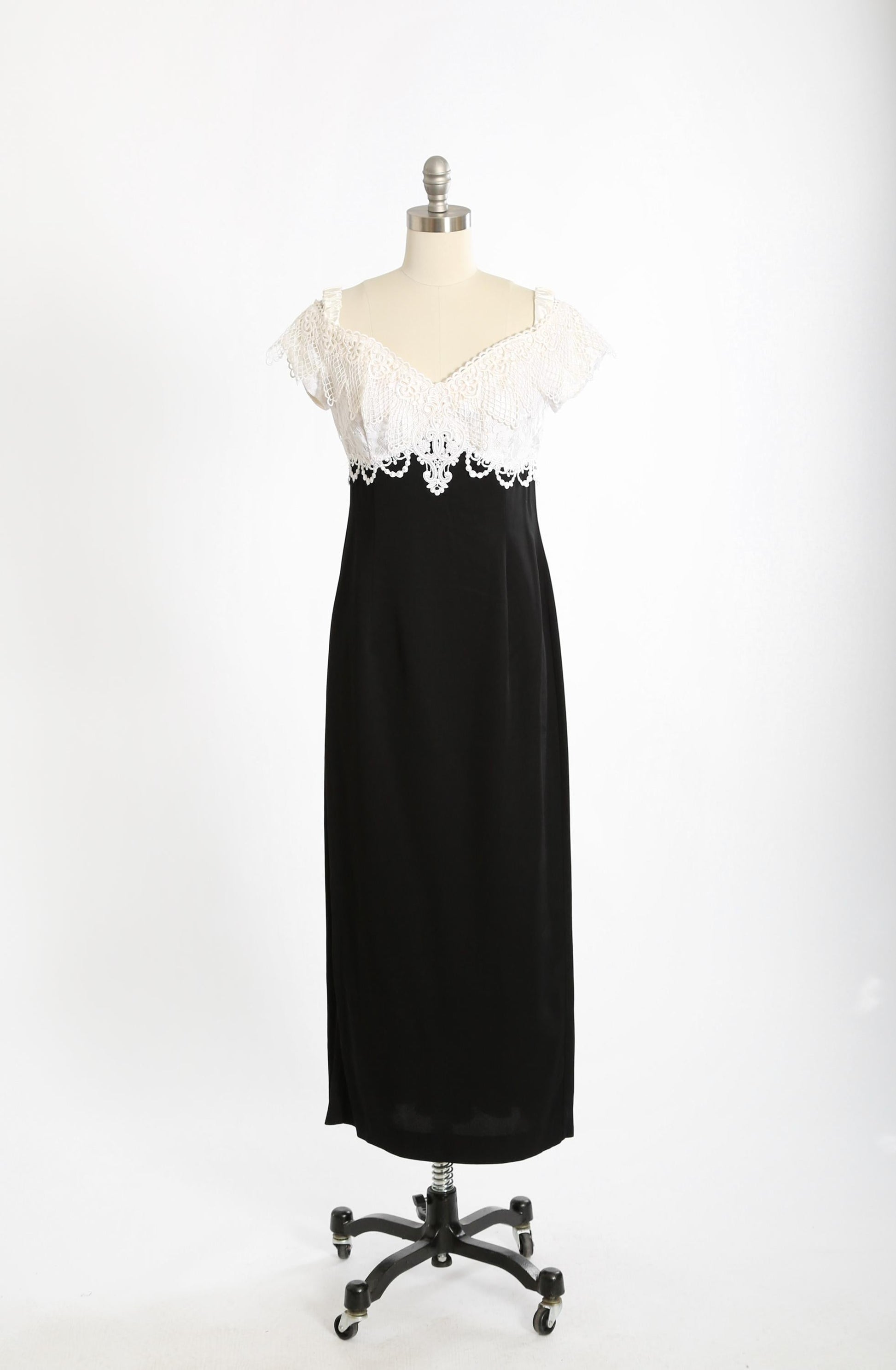 Jessica McClintock Bridal black + white floral embroidered lace Dress