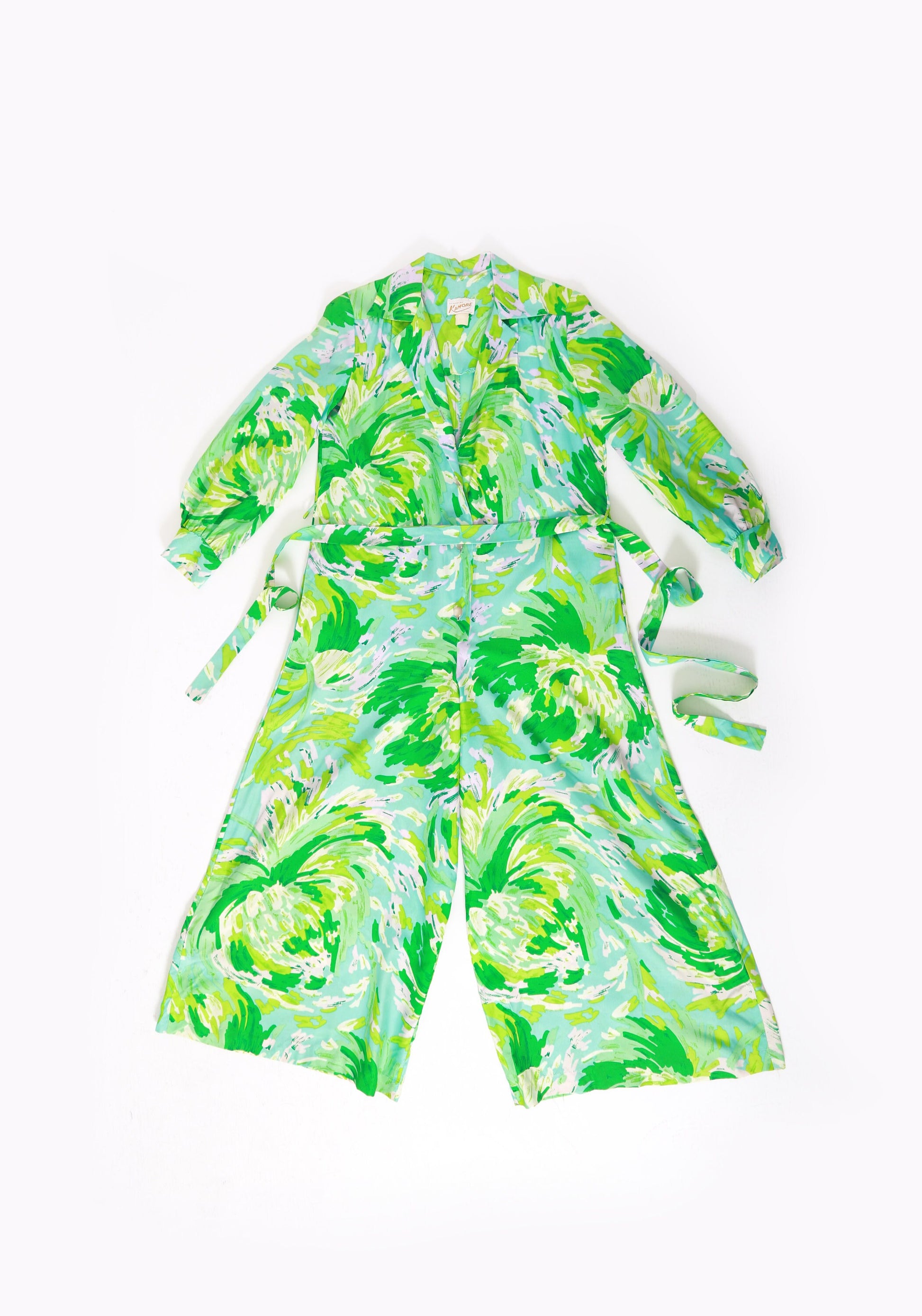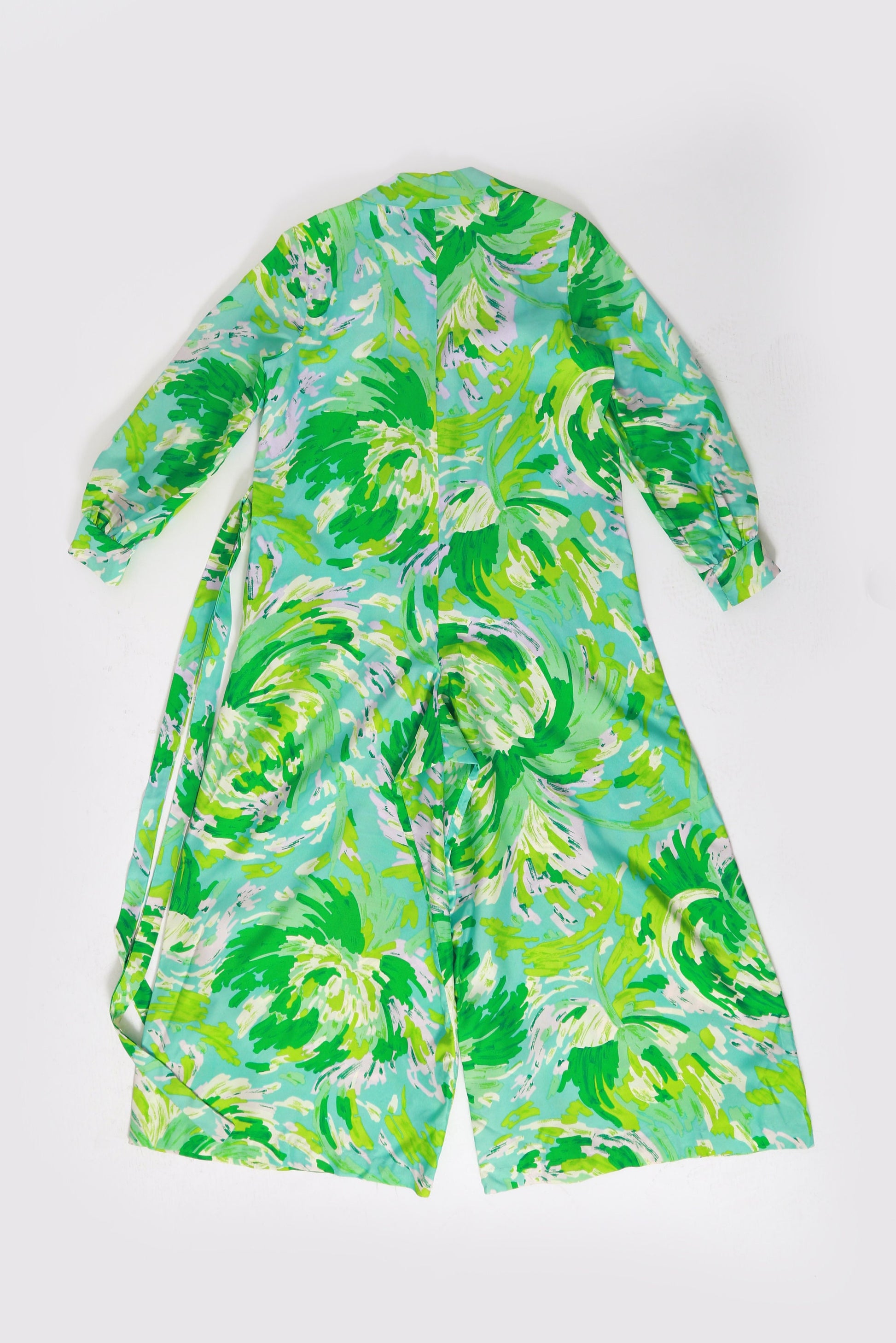 Kamore abstract jumpsuit | Vintage 60s green Jumpsuit | 1960s huge Palazzo jumpsuit