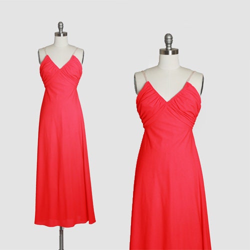 Vintage 1970s Lili Diamond fantastic neon salmon pink maxi dress