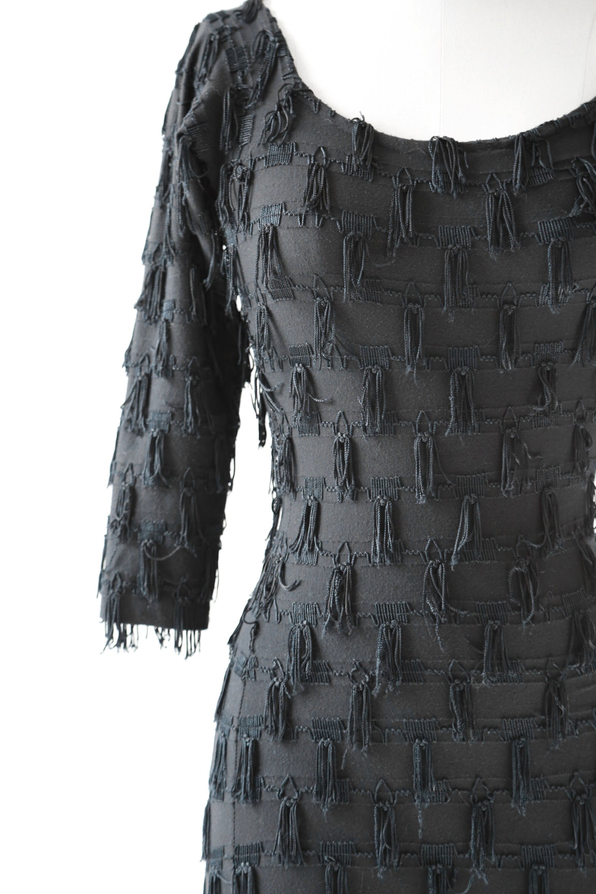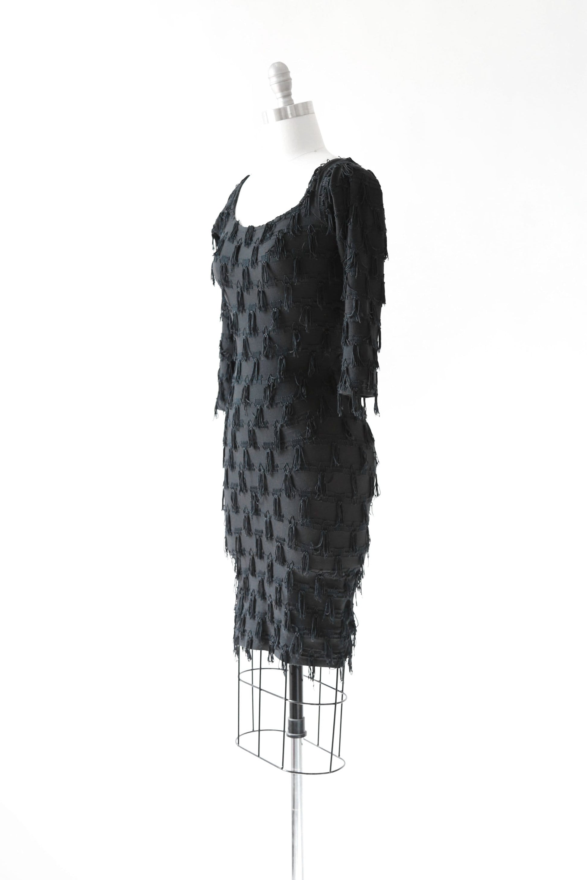 Modet fringe dress | Vintage 80s black fringe bodycon mini dress S