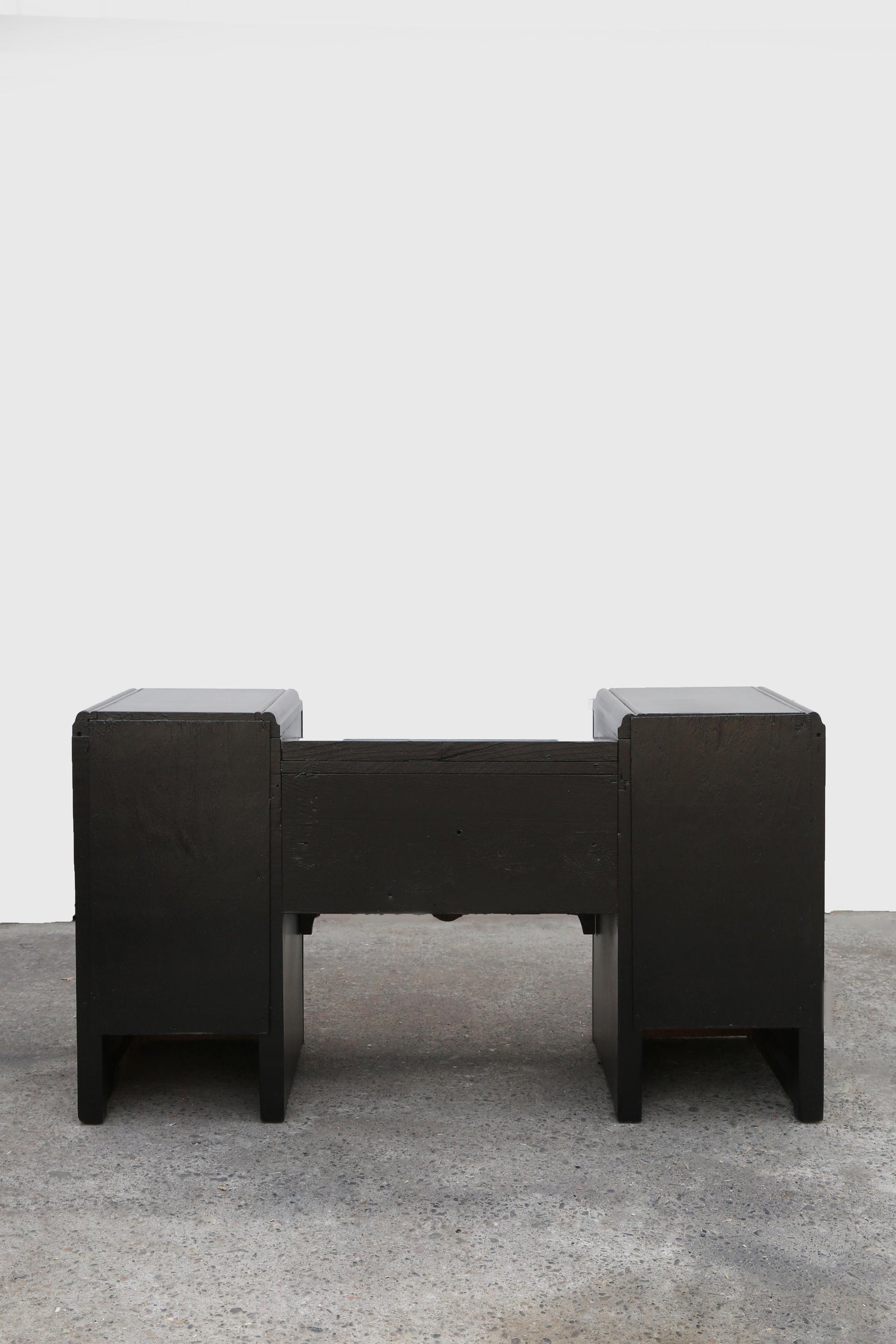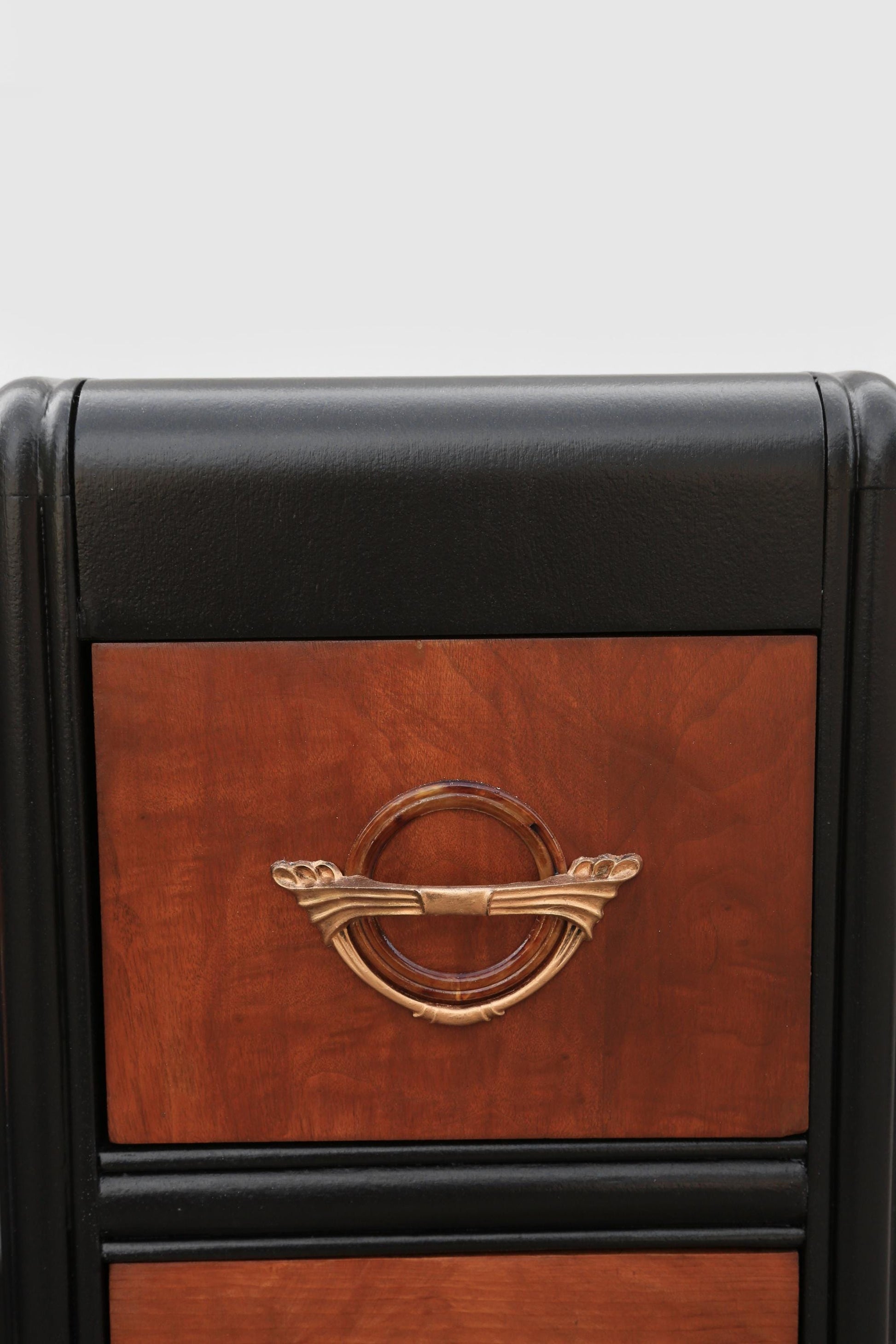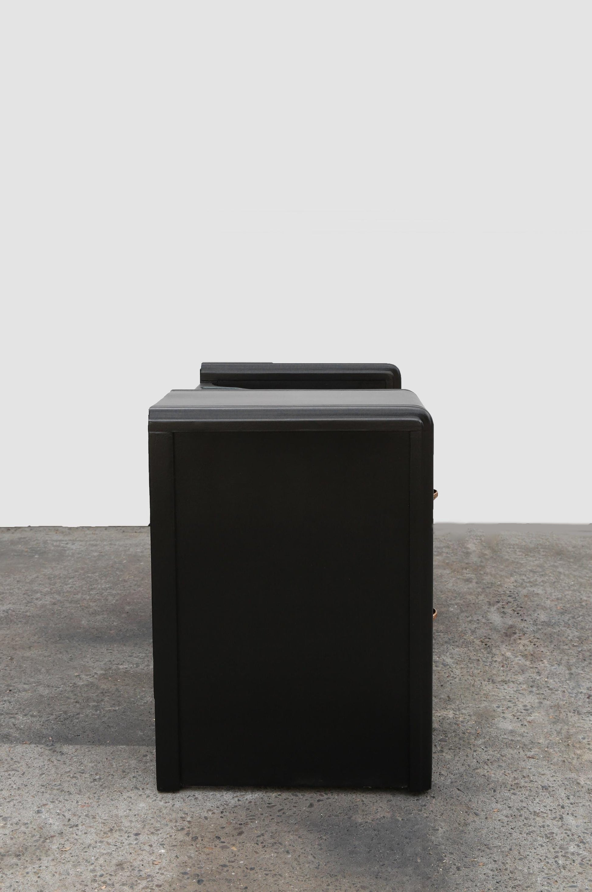 Great condition, completely refinished and painted in a black satin with satined wood drawers.