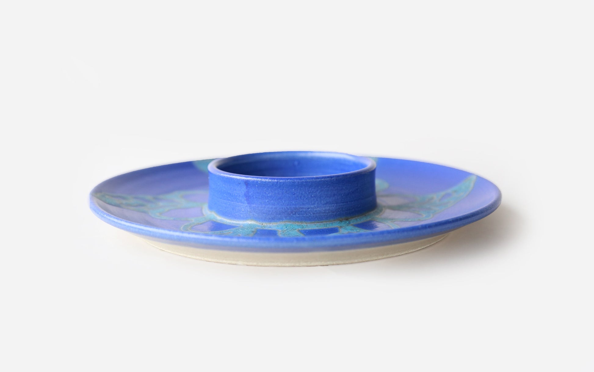 Studio Art stoneware chip dip dish | Vintage stoneware abstract blue serving plate