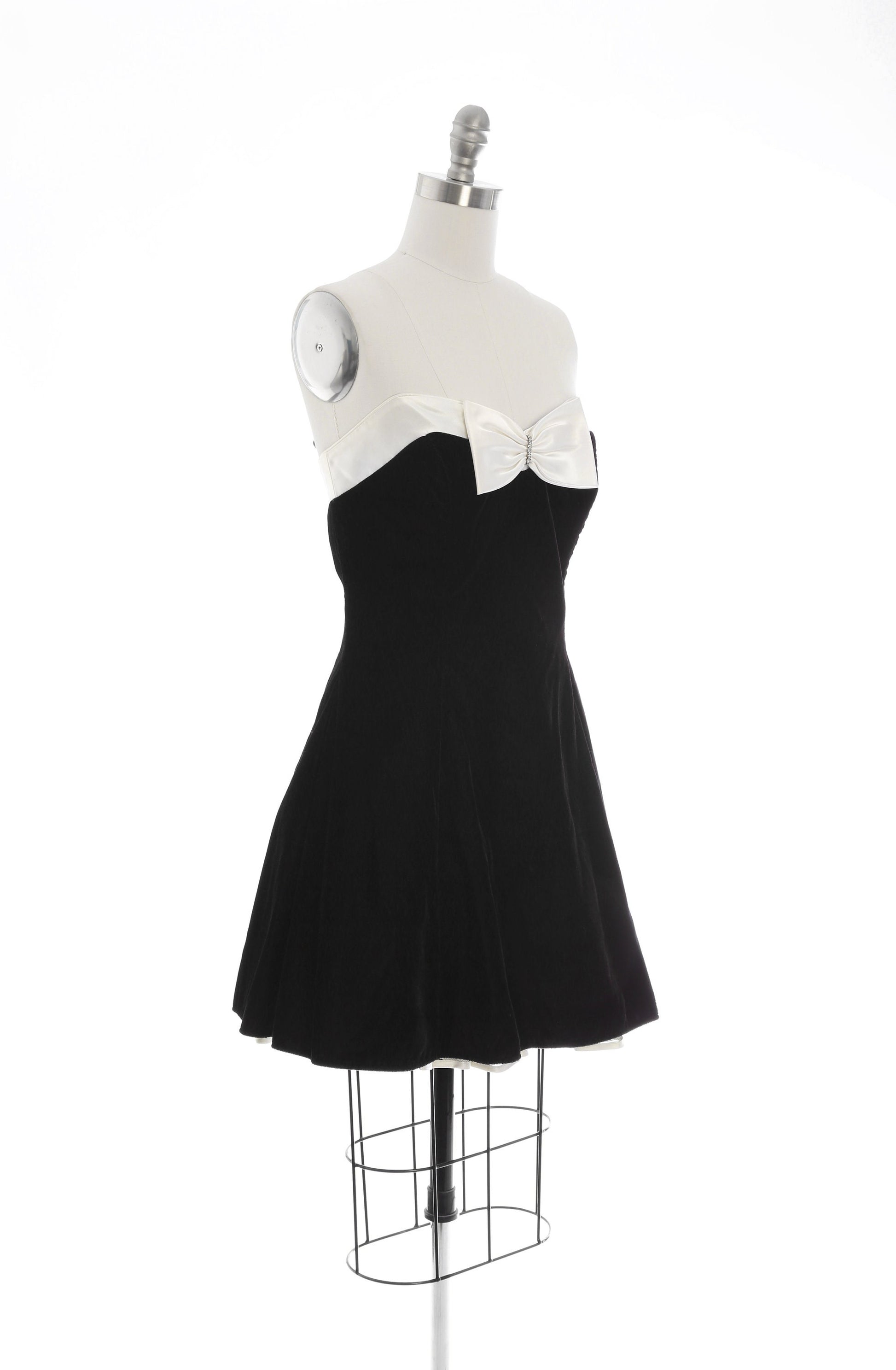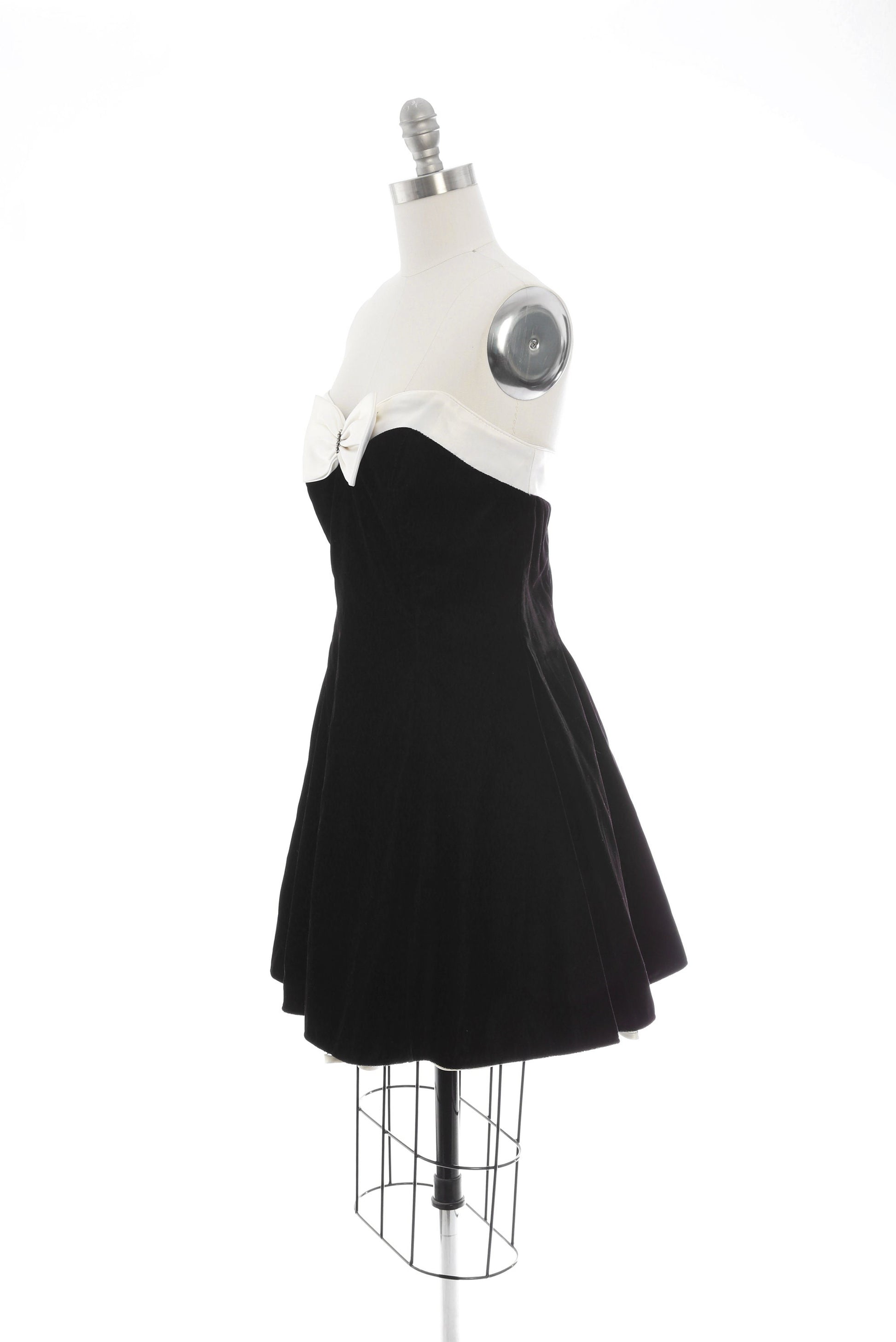Tuxedo mini dress | Vintage 80s black velvet tuxedo dress | Jeweled bow party dress
