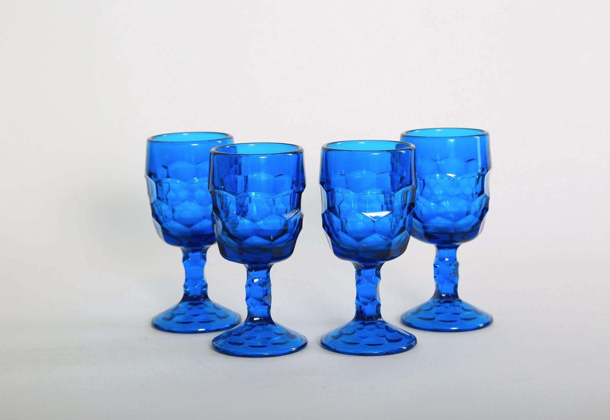Vintage Mid Century Modern 1960s early 1970s Viking blue Honeycomb Georgian cordial wine glasses set of 4