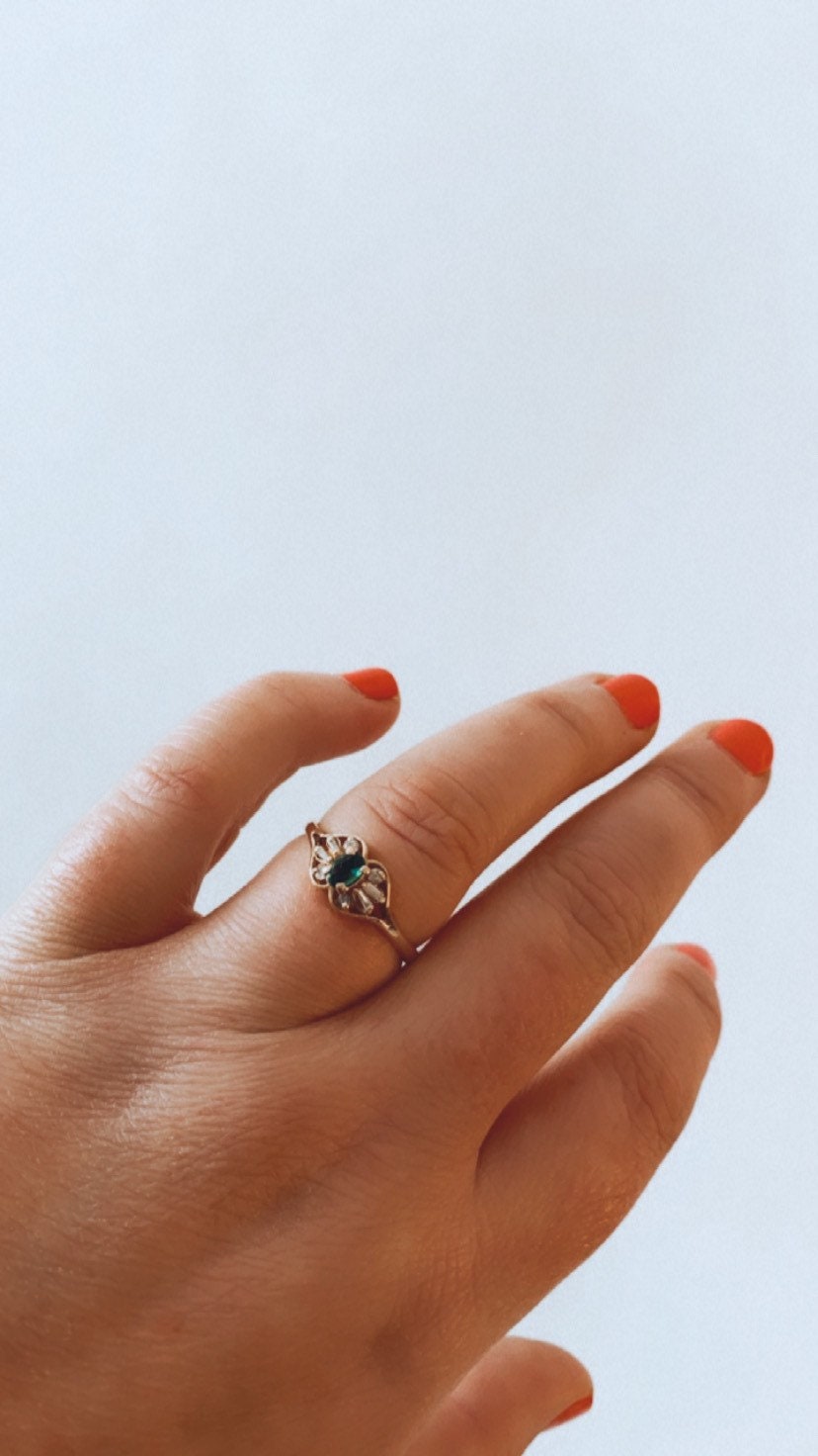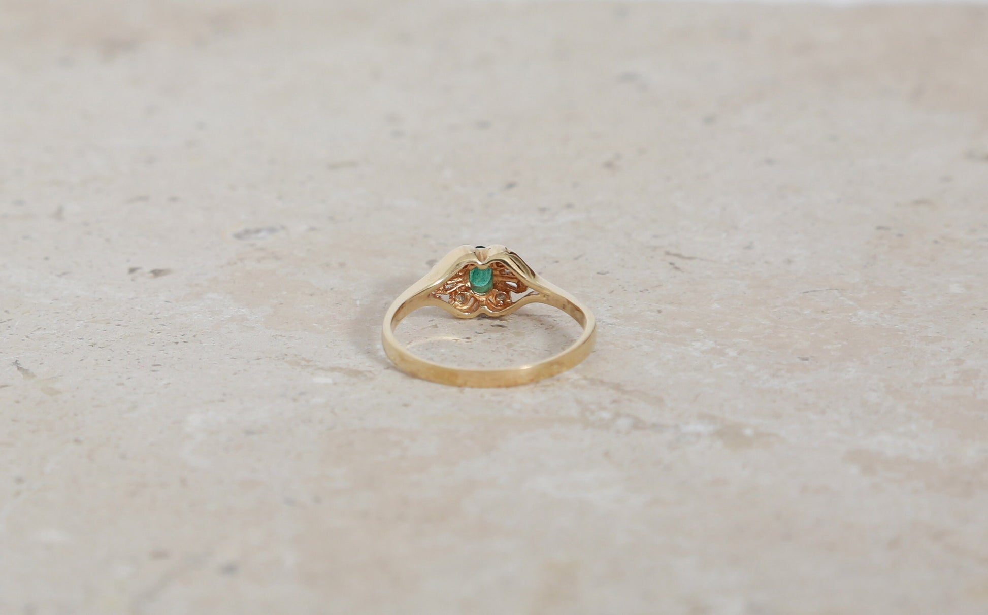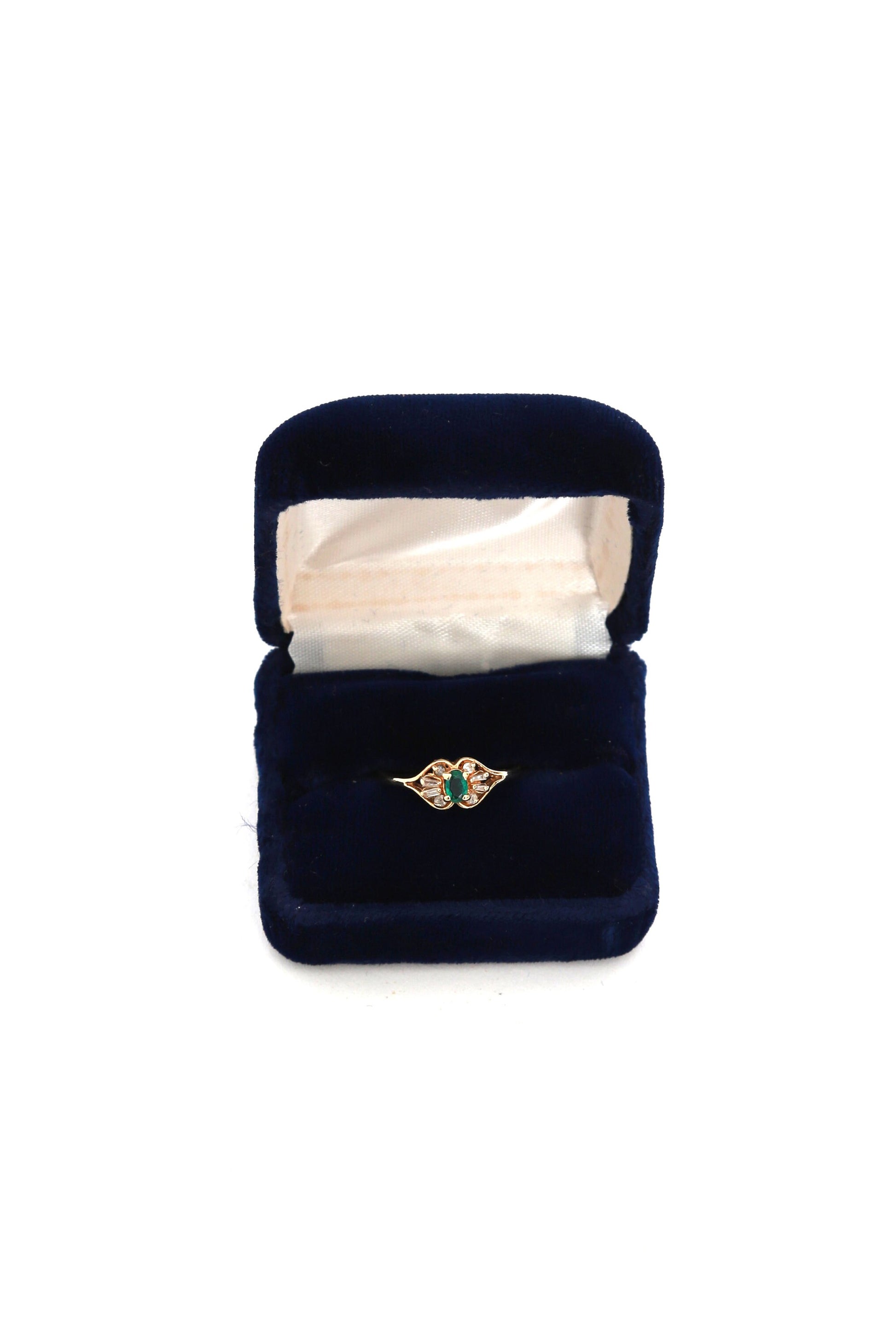 Vintage 14K Gold baguette diamond oval Emerald ring