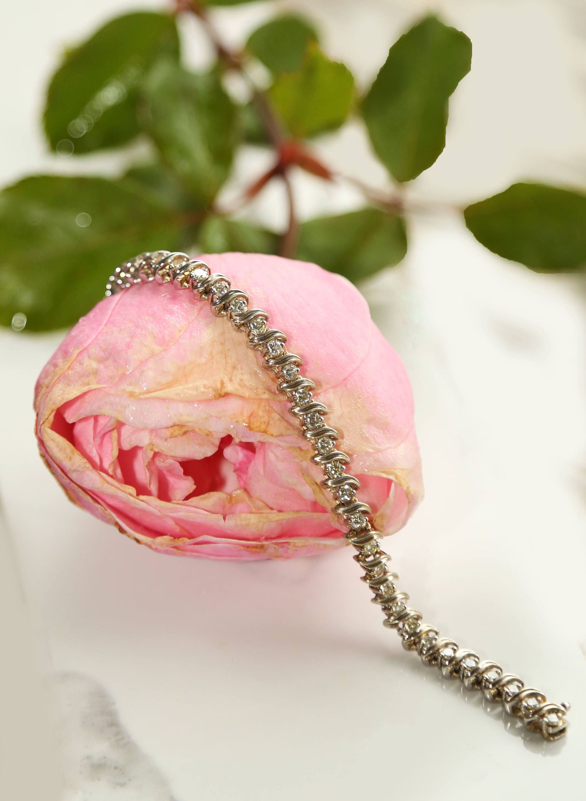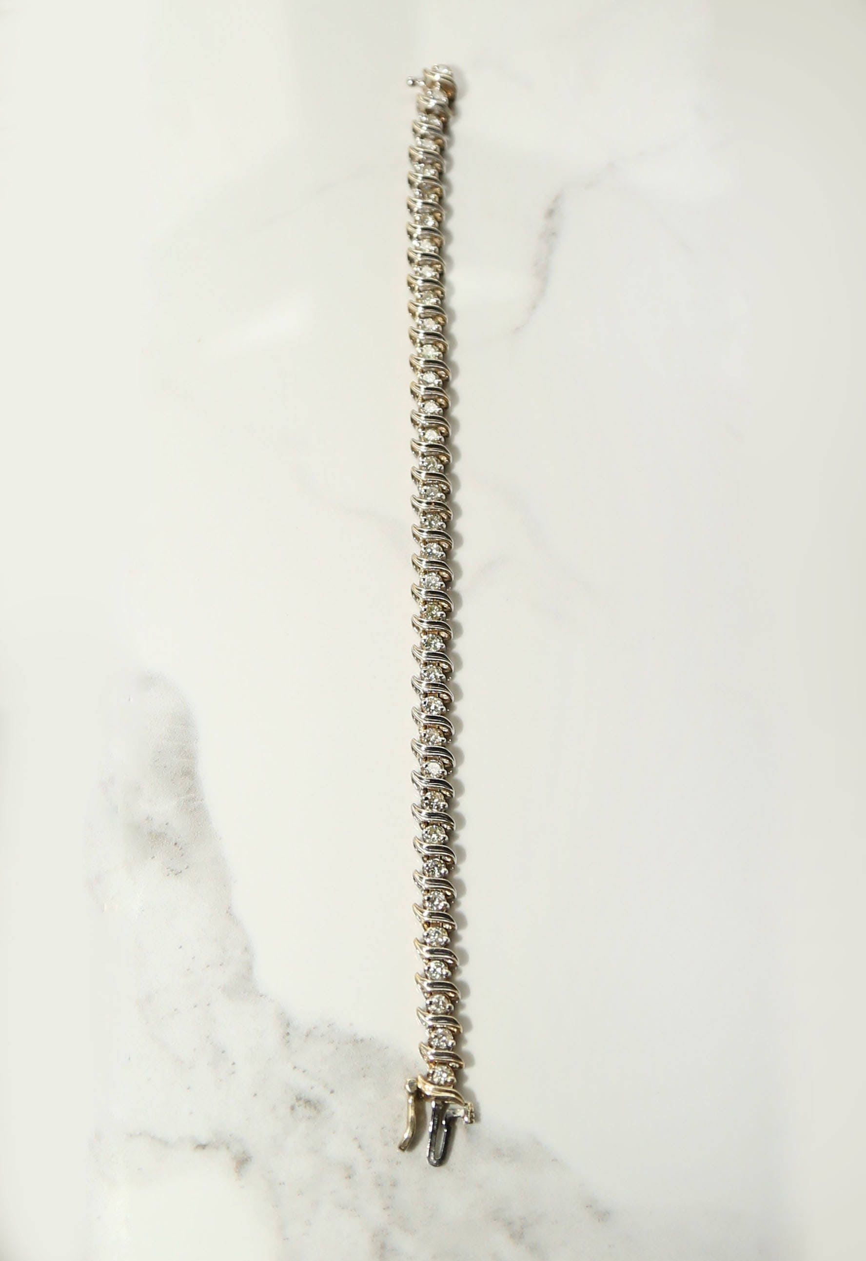 Stunning vintage 1960's 14k yellow and white gold S link Diamond bracelet.