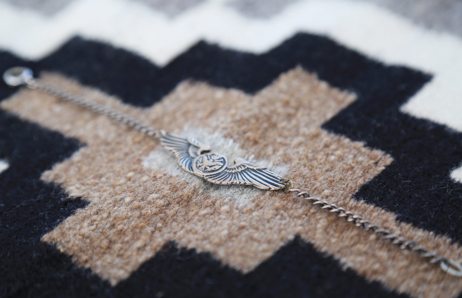 Vintage 1940s WWII US Army Air Force Air Crew Sterling Silver flight wings bracelet