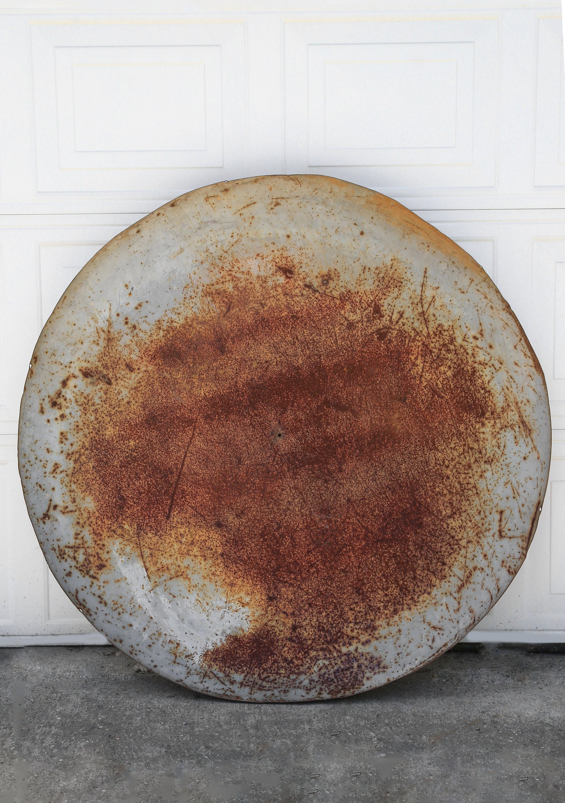 Prefect patina aged with signs of wear, rust and a hole in middle and around rim edge from where it was hung