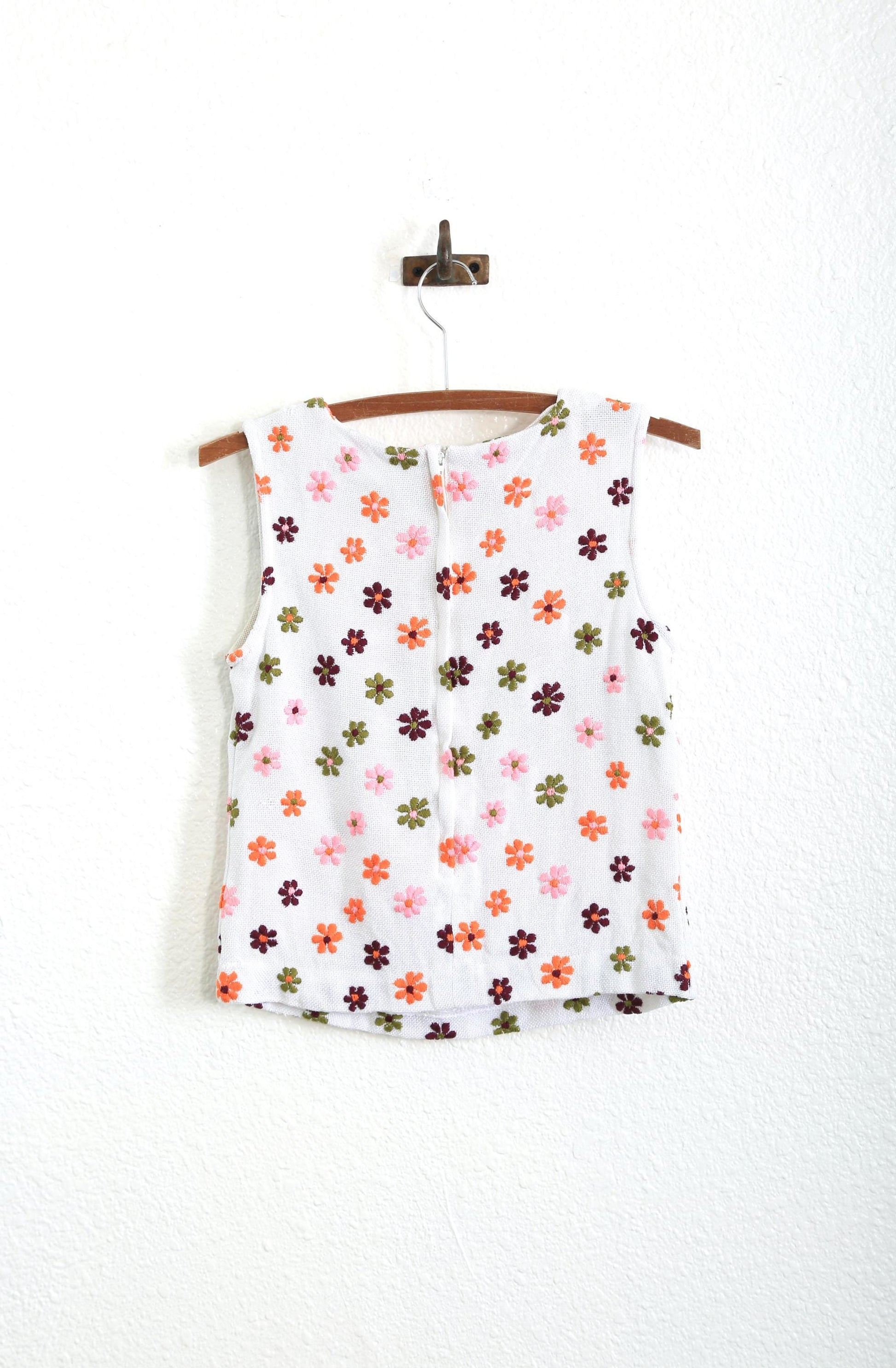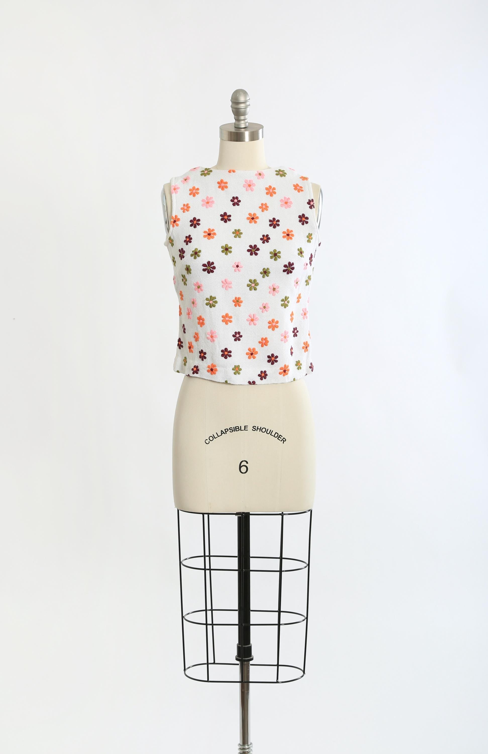 Vintage 1960s embroidered floral Daisy woven tank top
