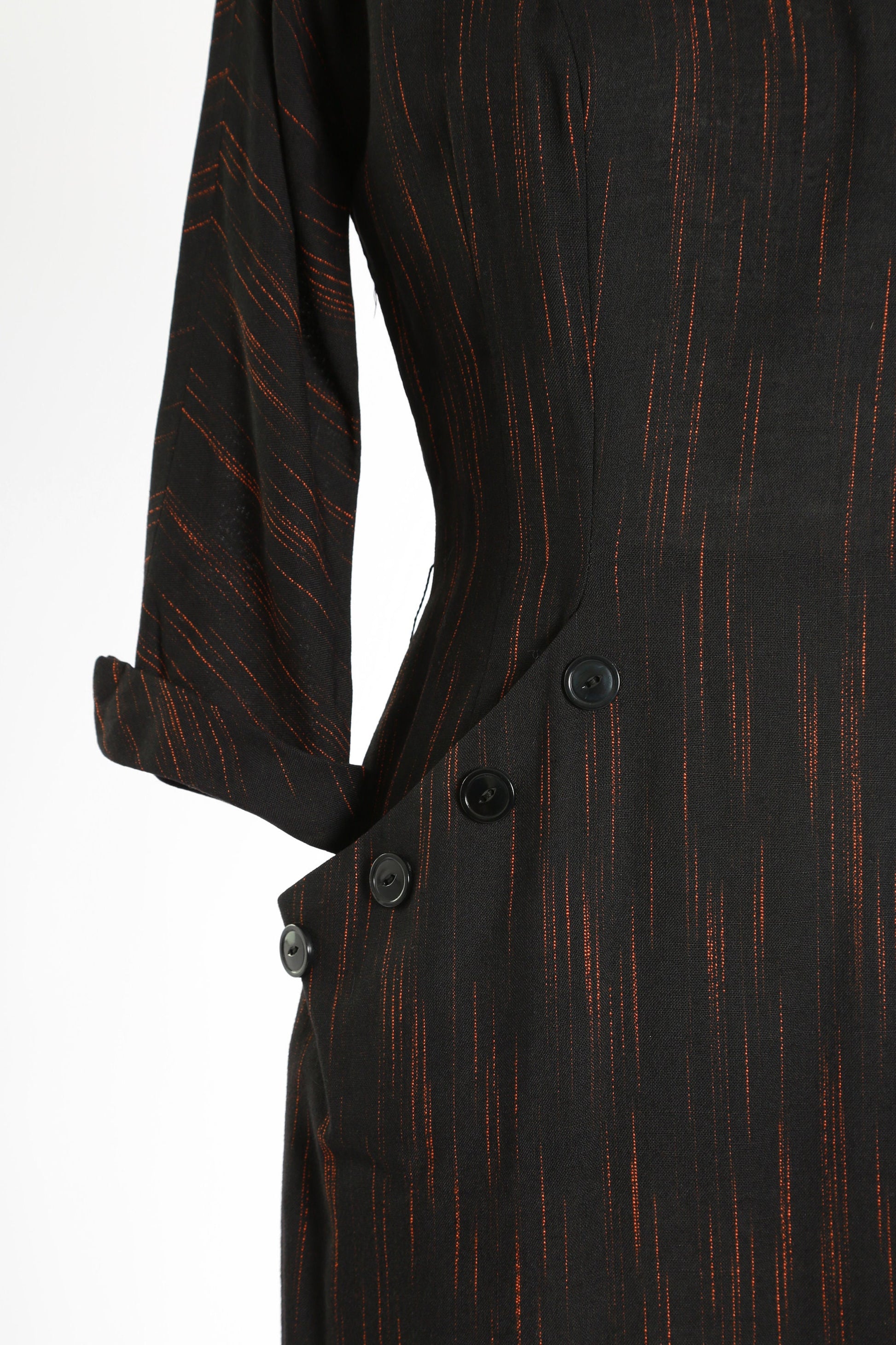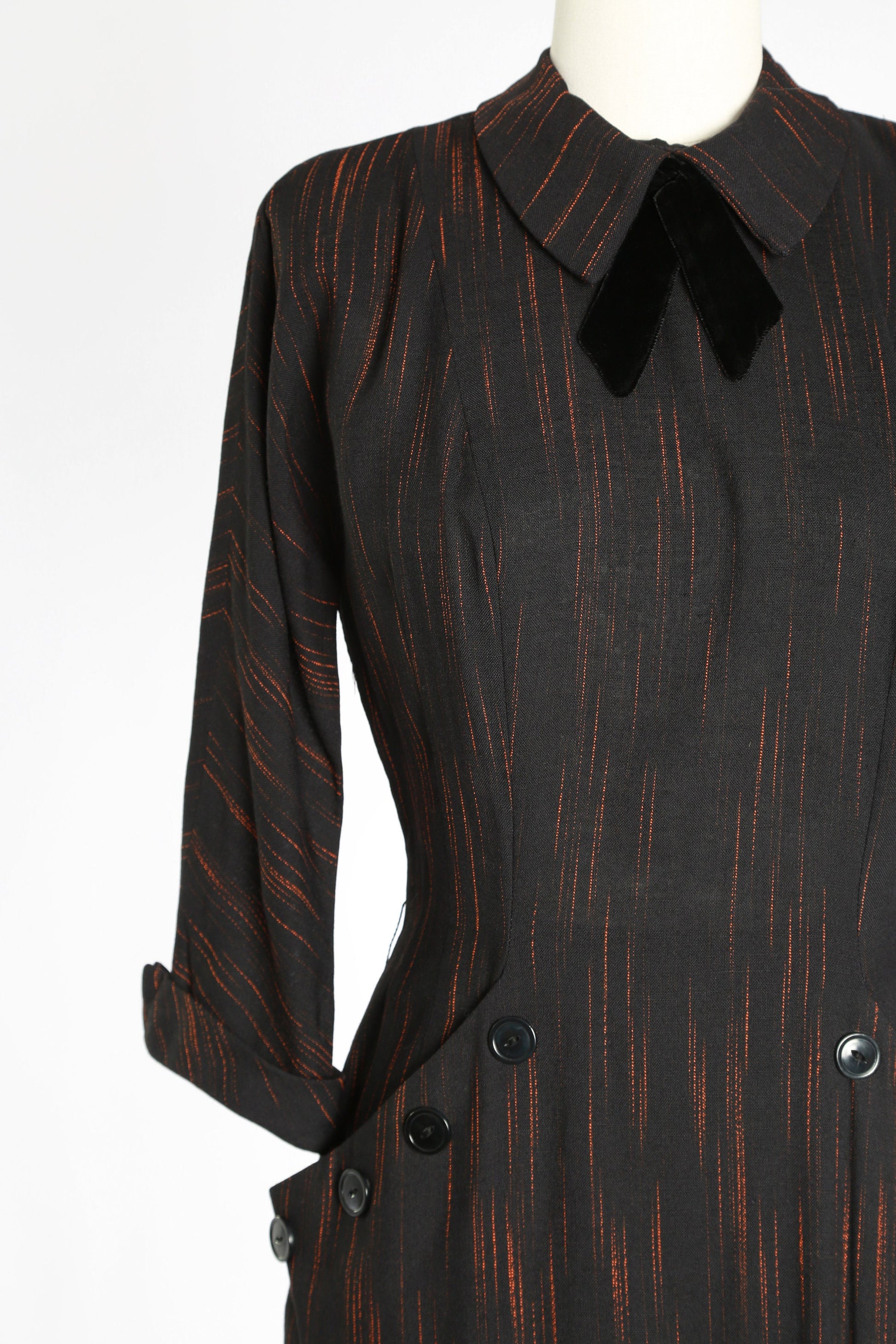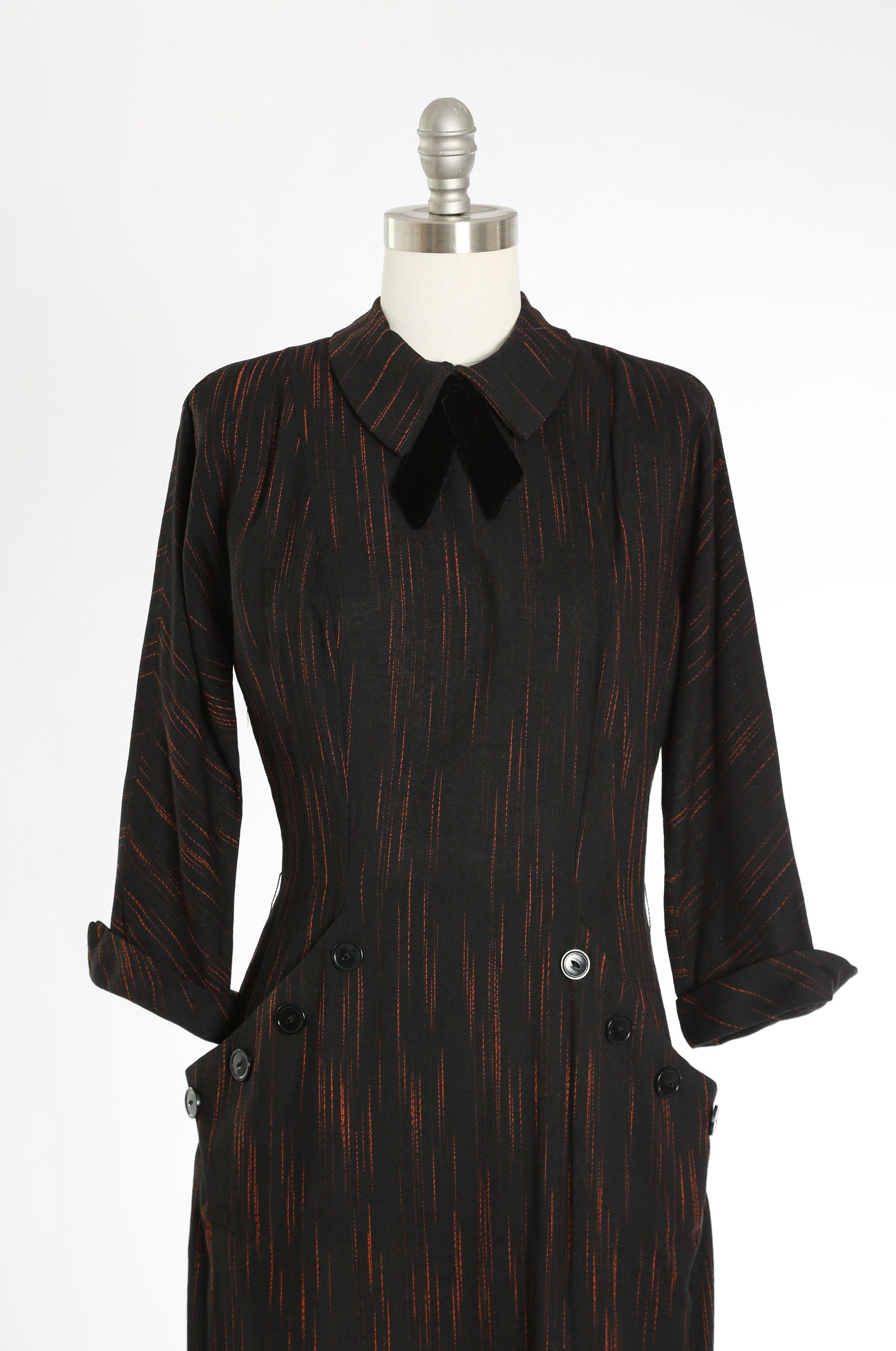 Vintage 40s 50s black & orange embroidered ascot bow dress