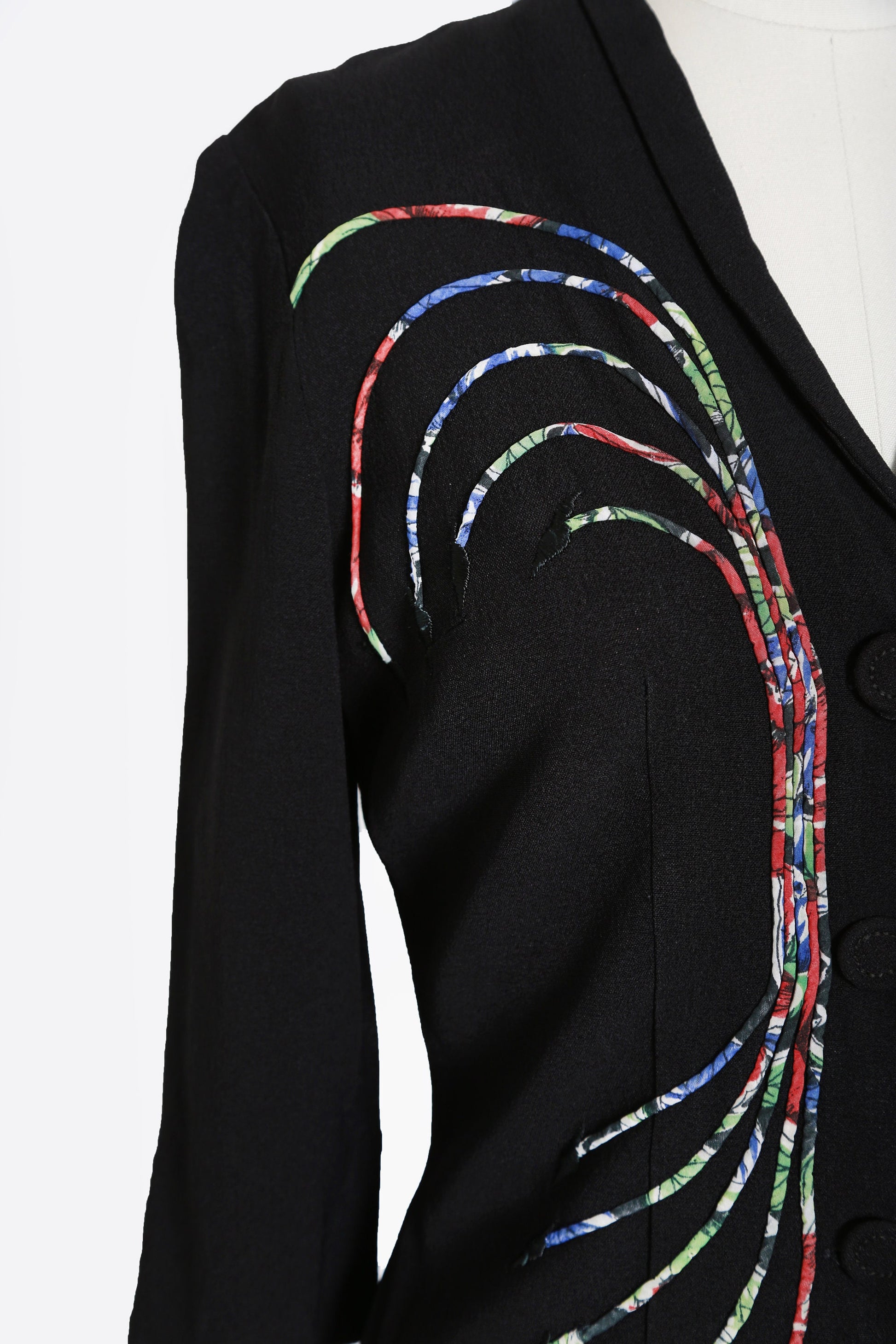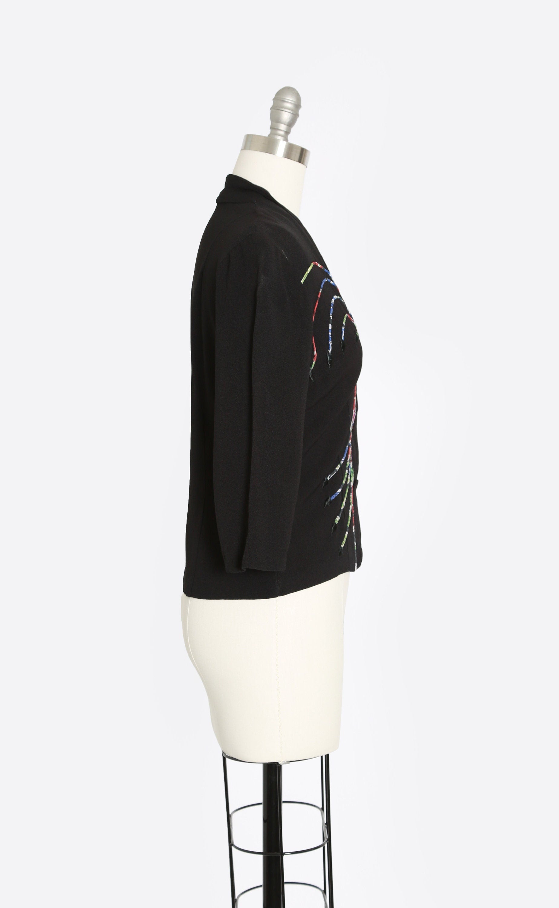 Vintage 40s rayon crepe embroidered rainbow arrow blouse