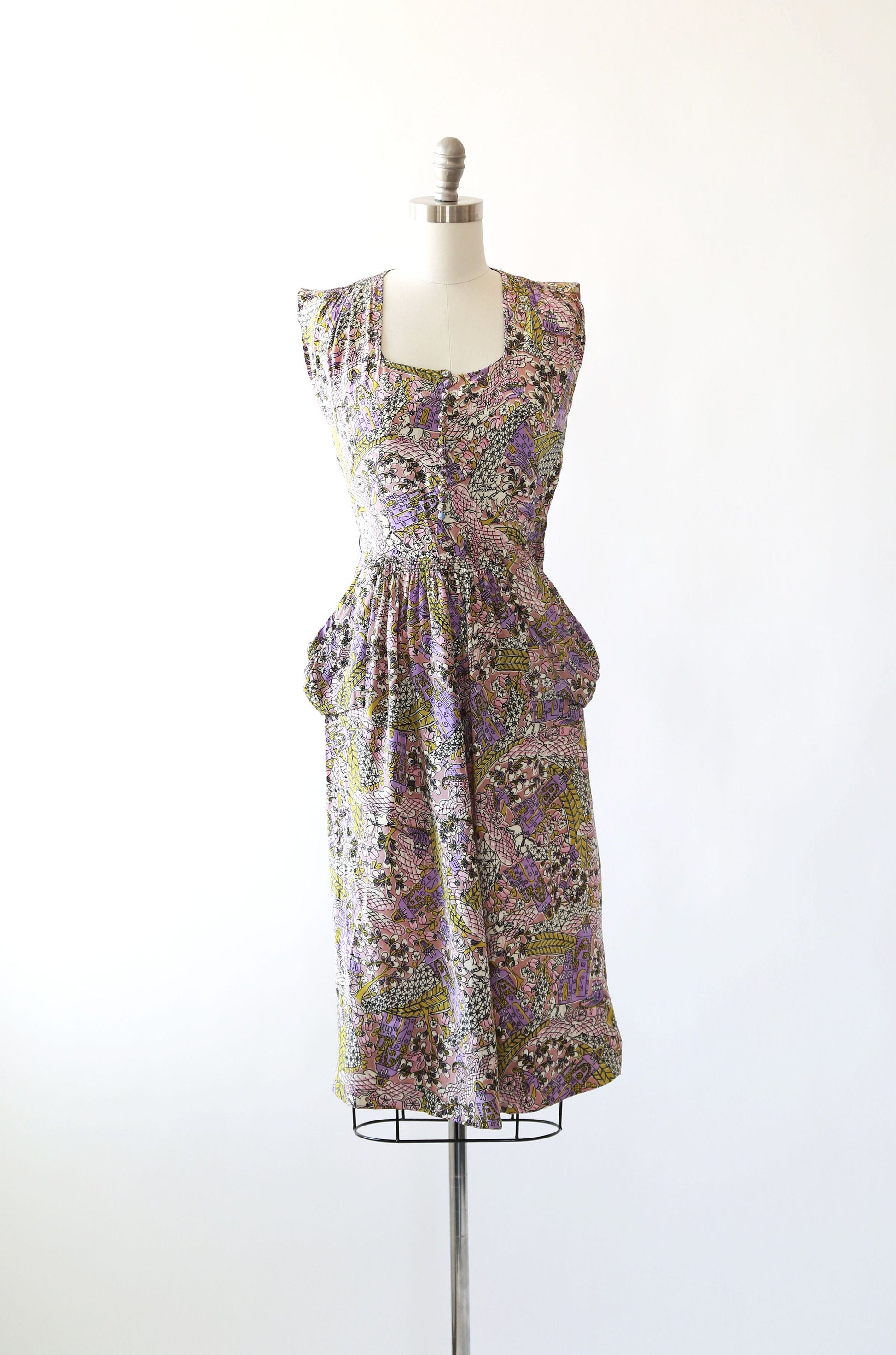 Vintage 40s silk dress | 1940s novelty print silk dress