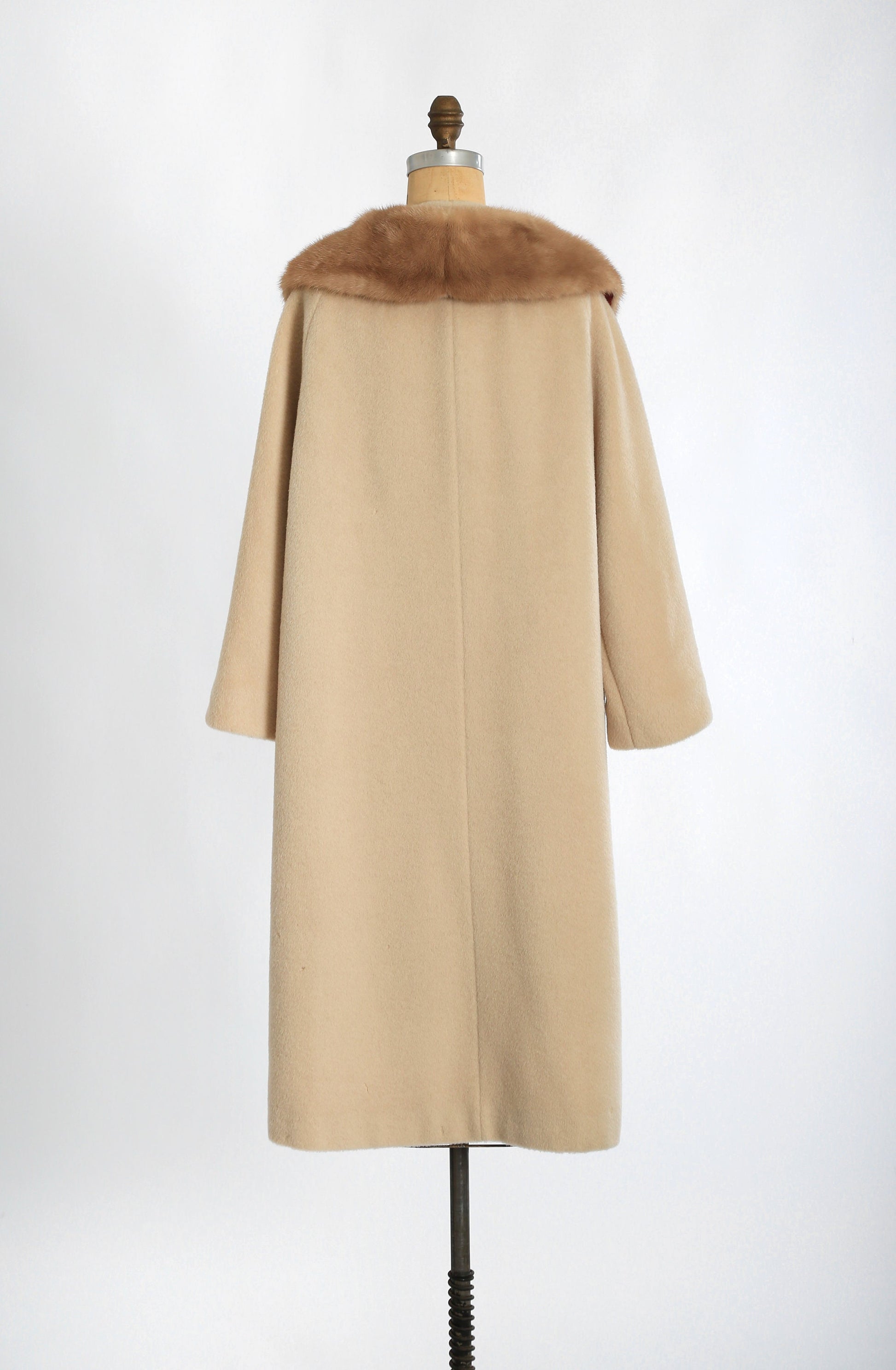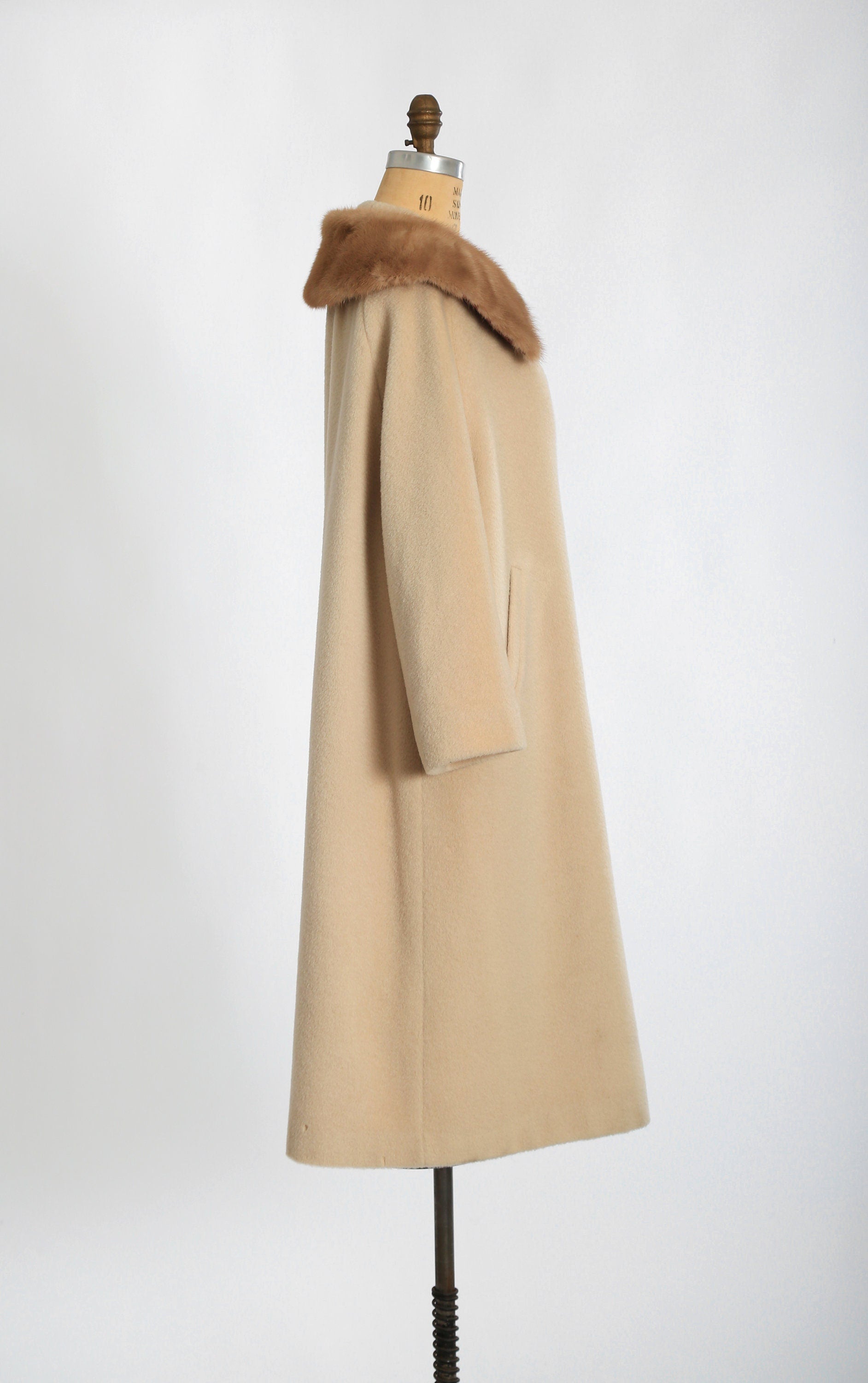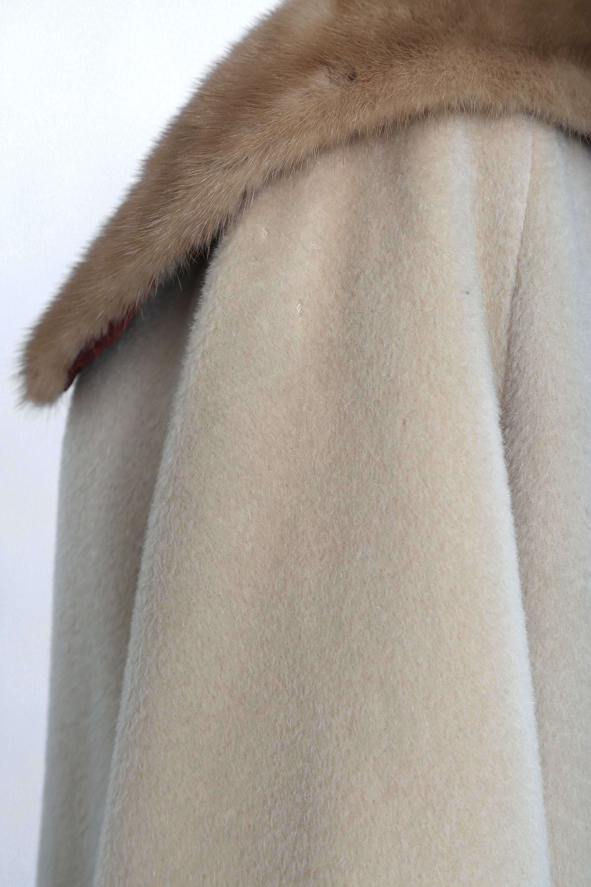 Vintage 50s 60s beige mohair wool coat mink fur collar