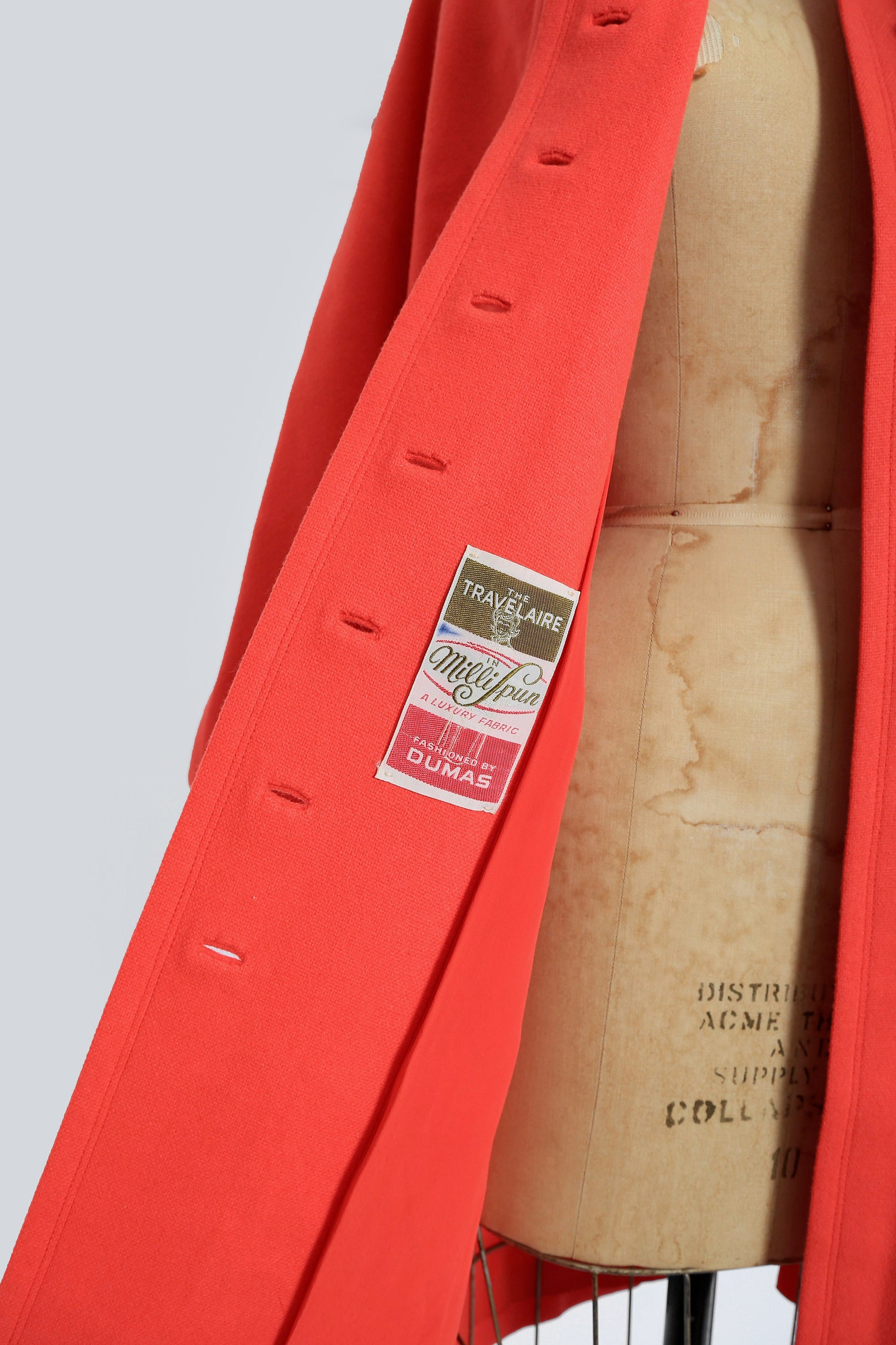 Label: Travelaire in MilliSpun A luxury fabric fashioned by Dumas union made in USA